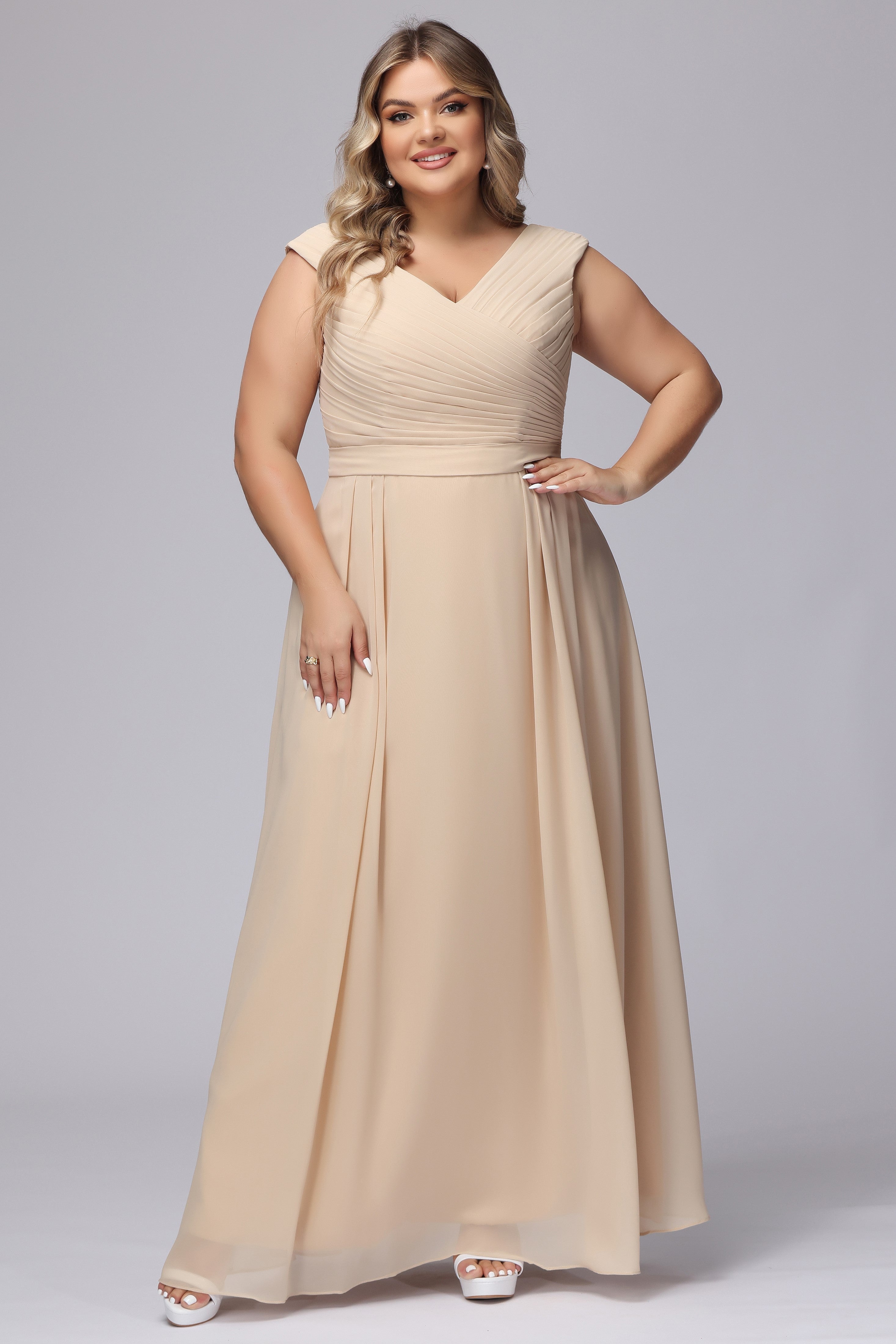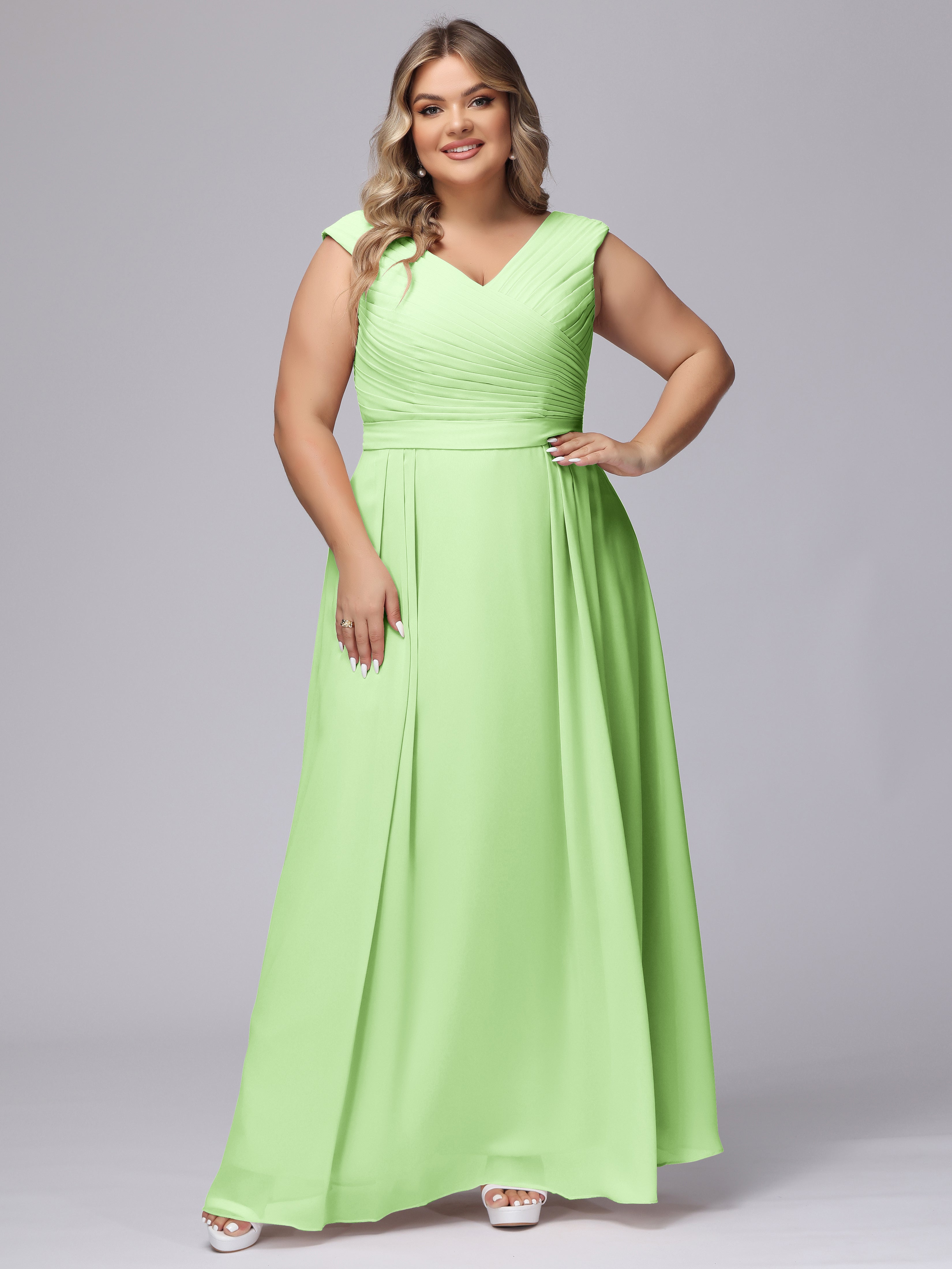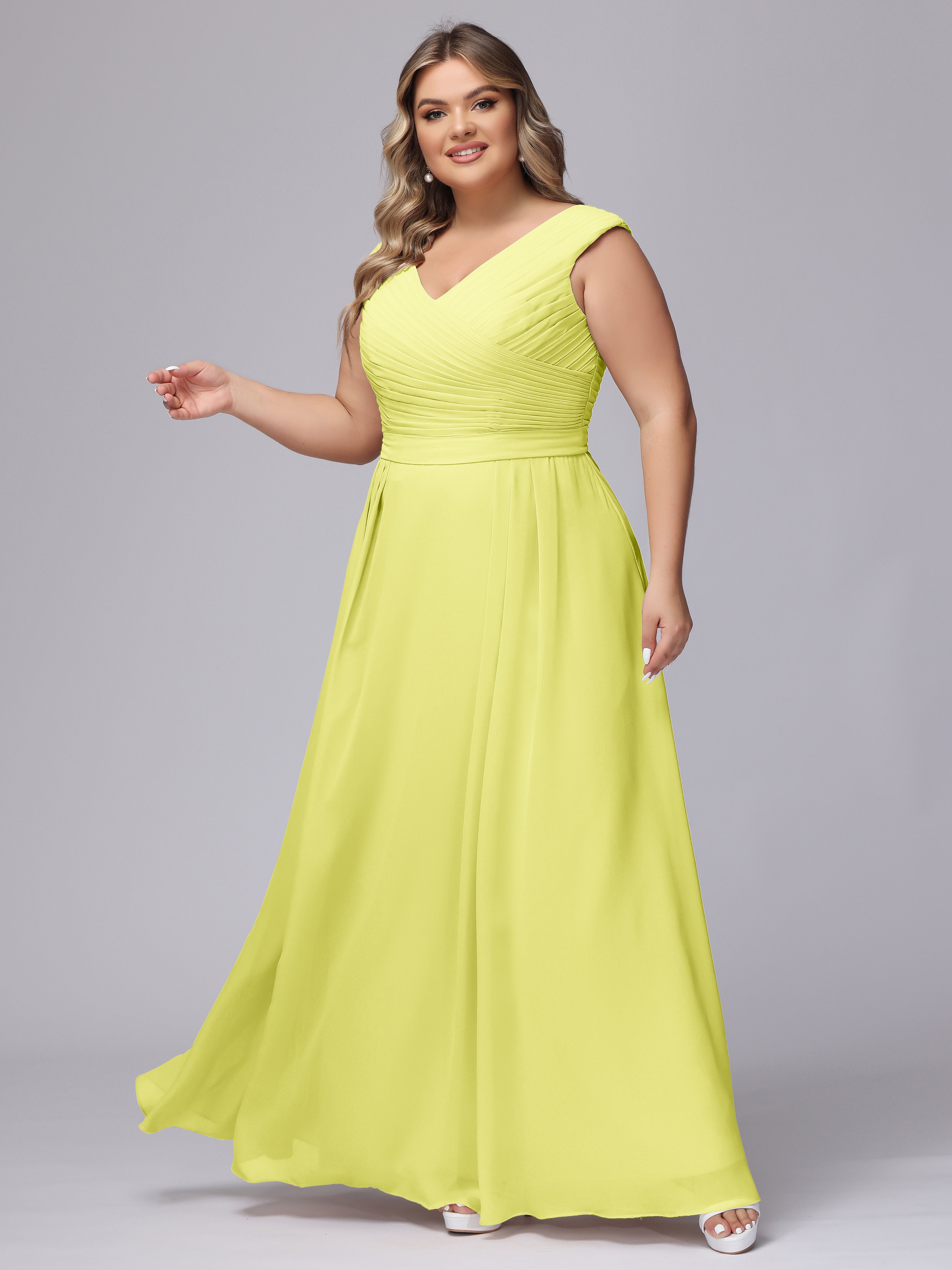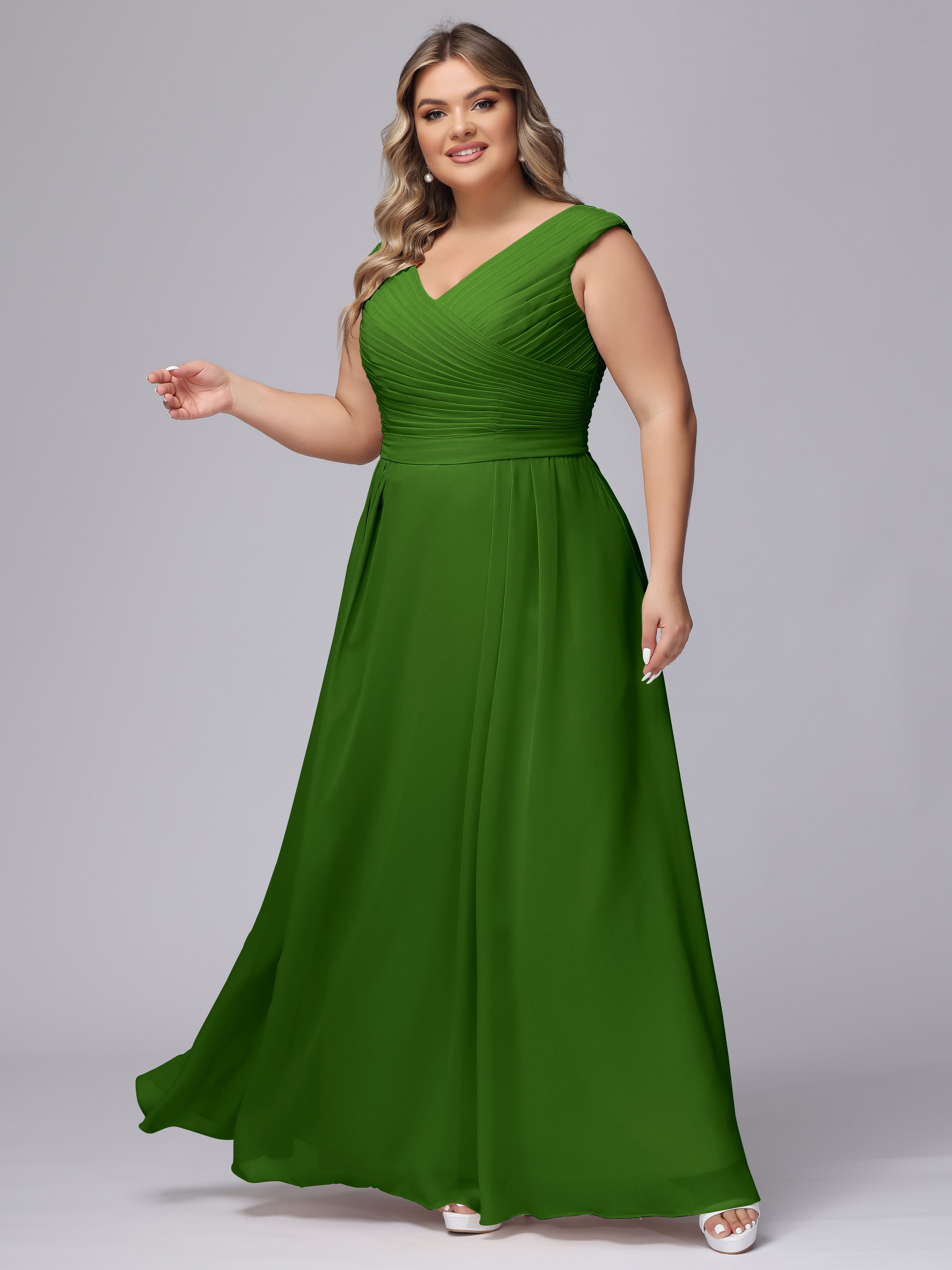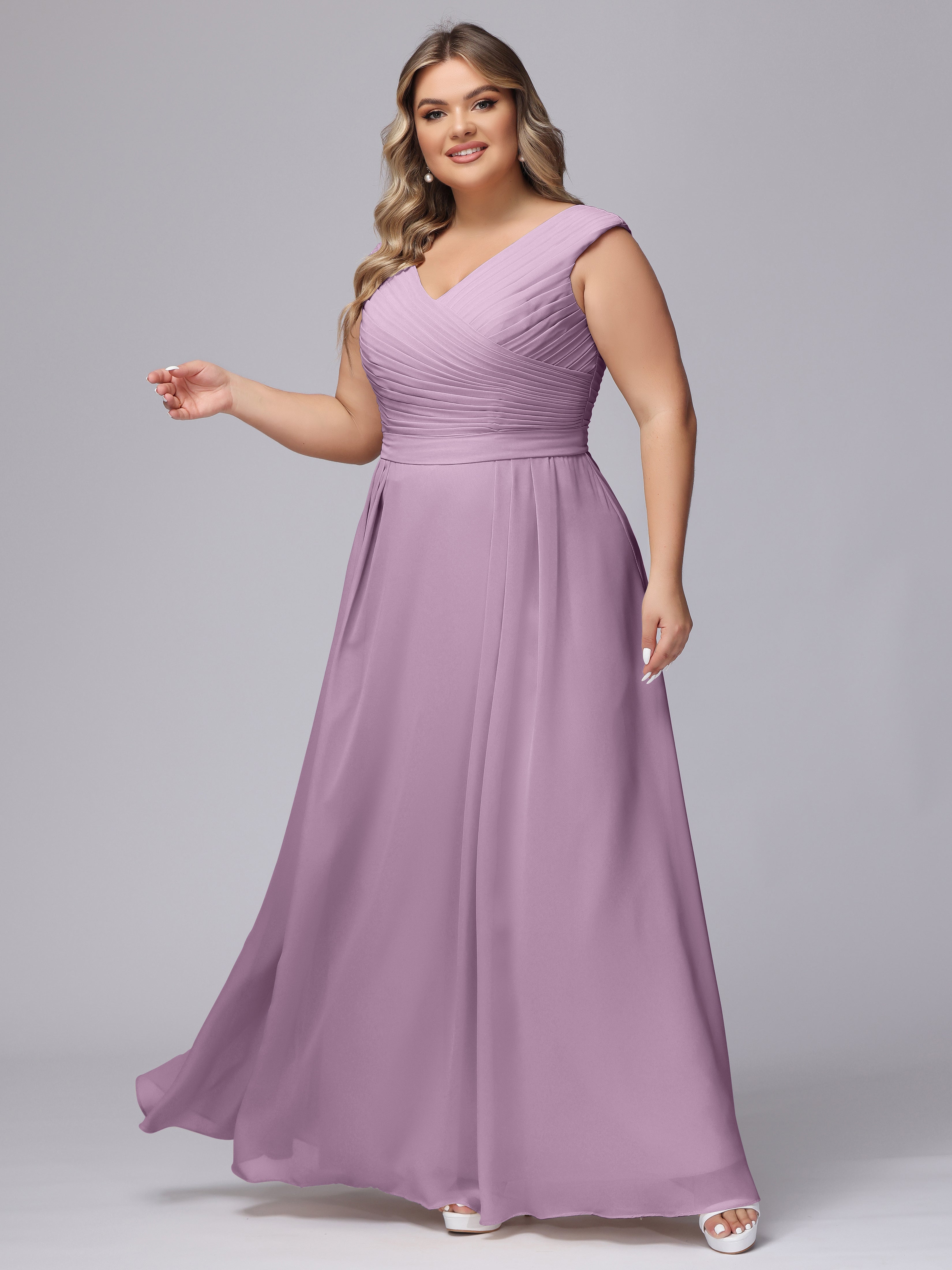 V-Back Plus Size Chiffon Bridesmaid Dress