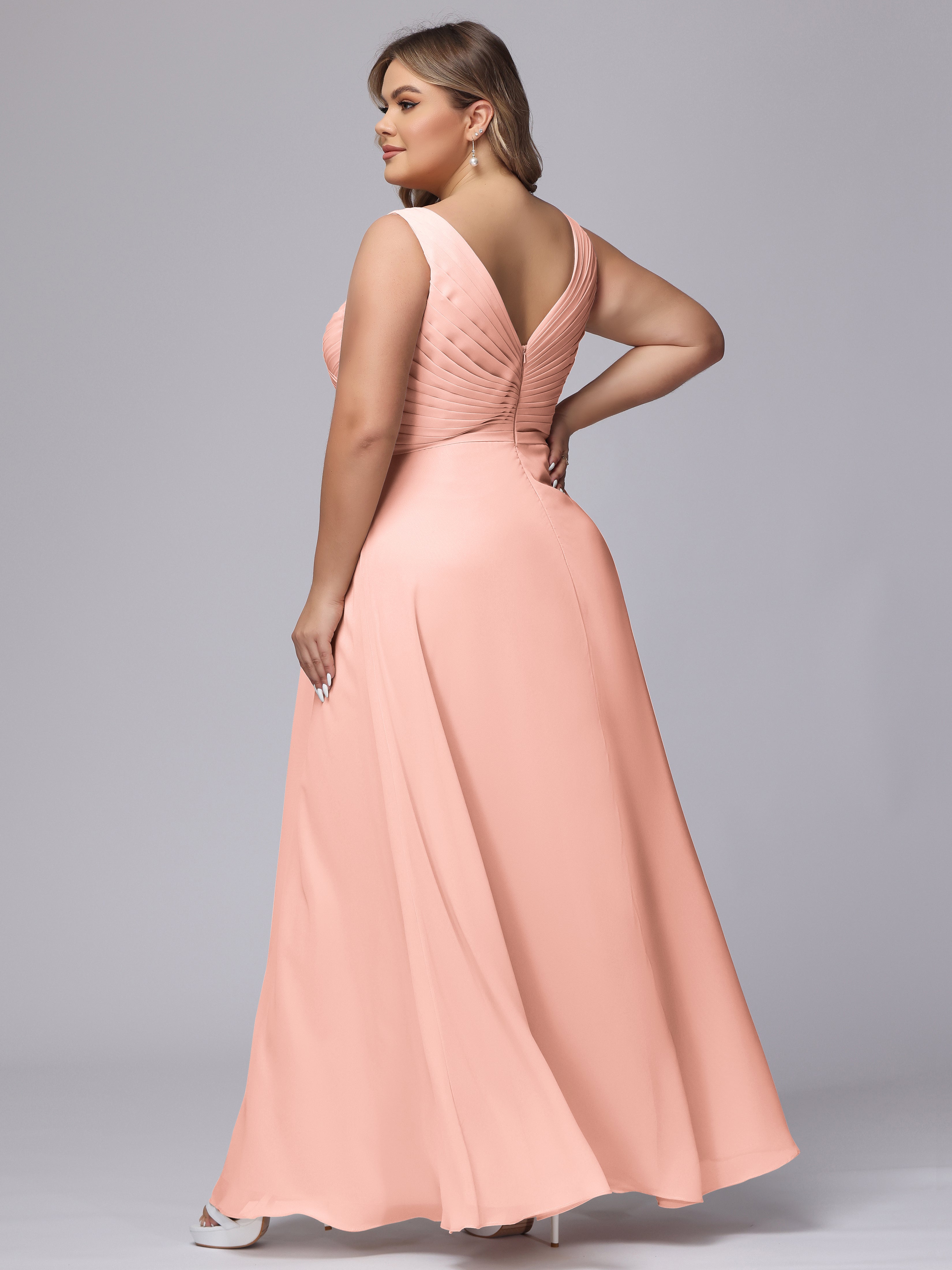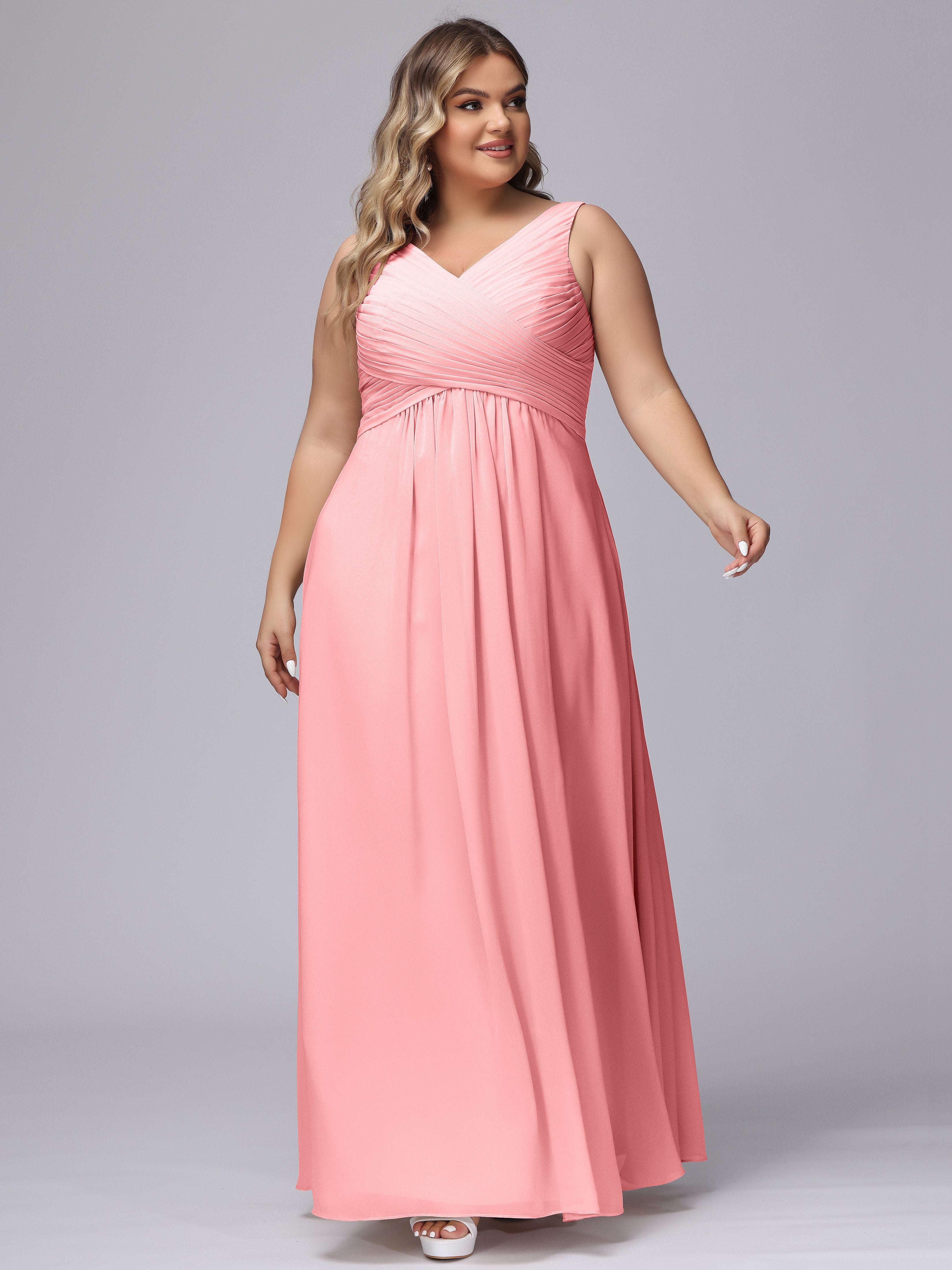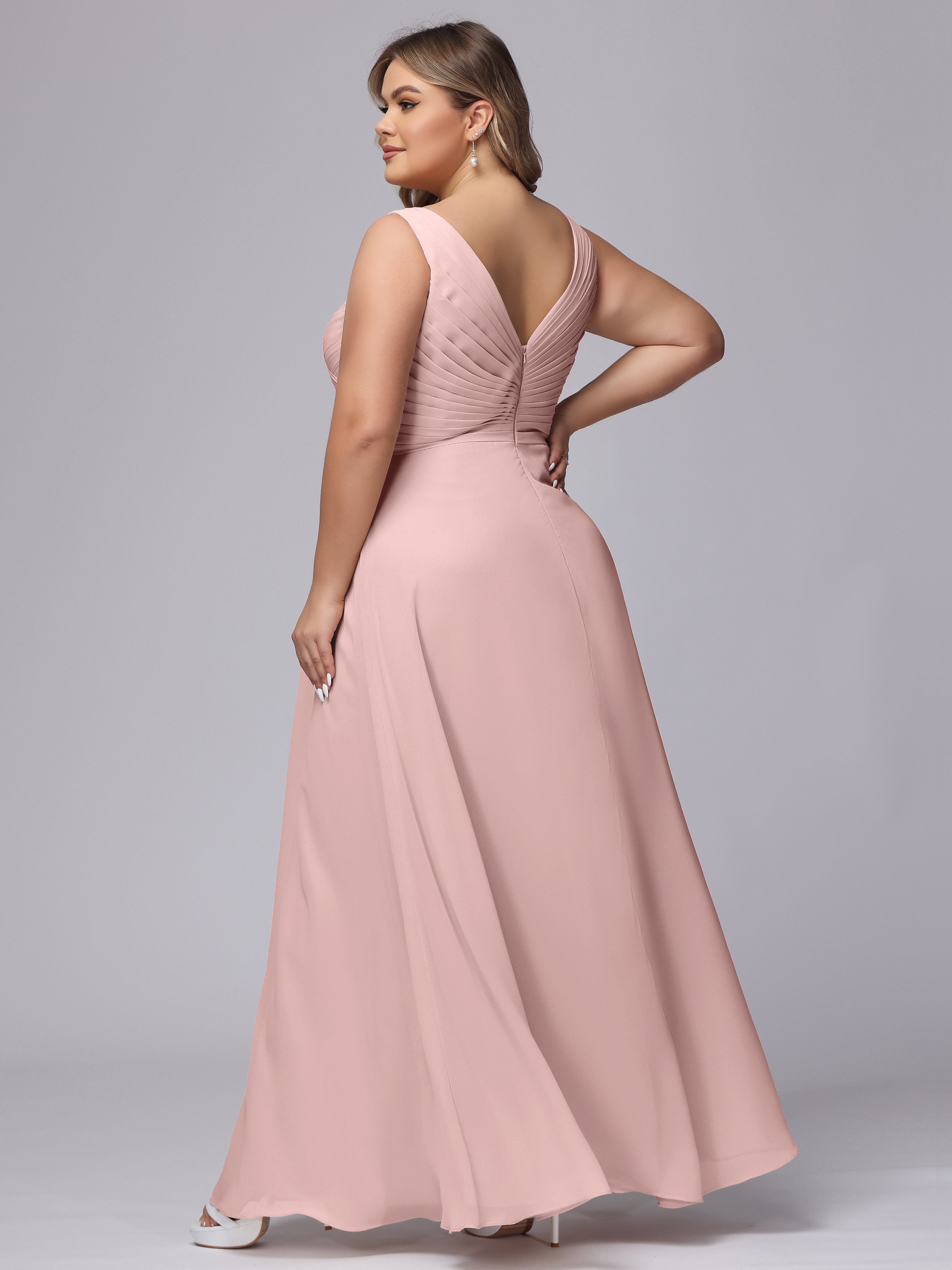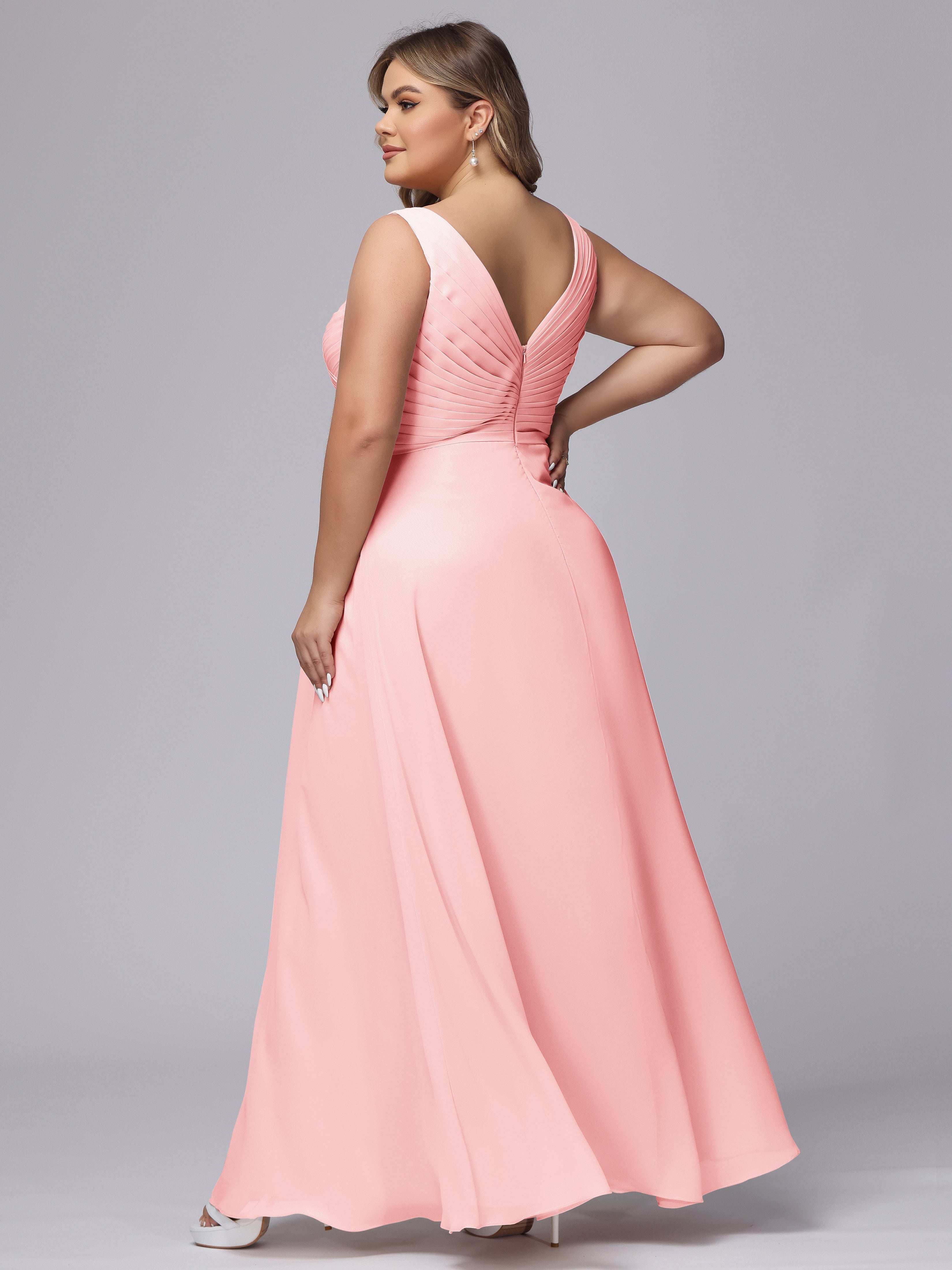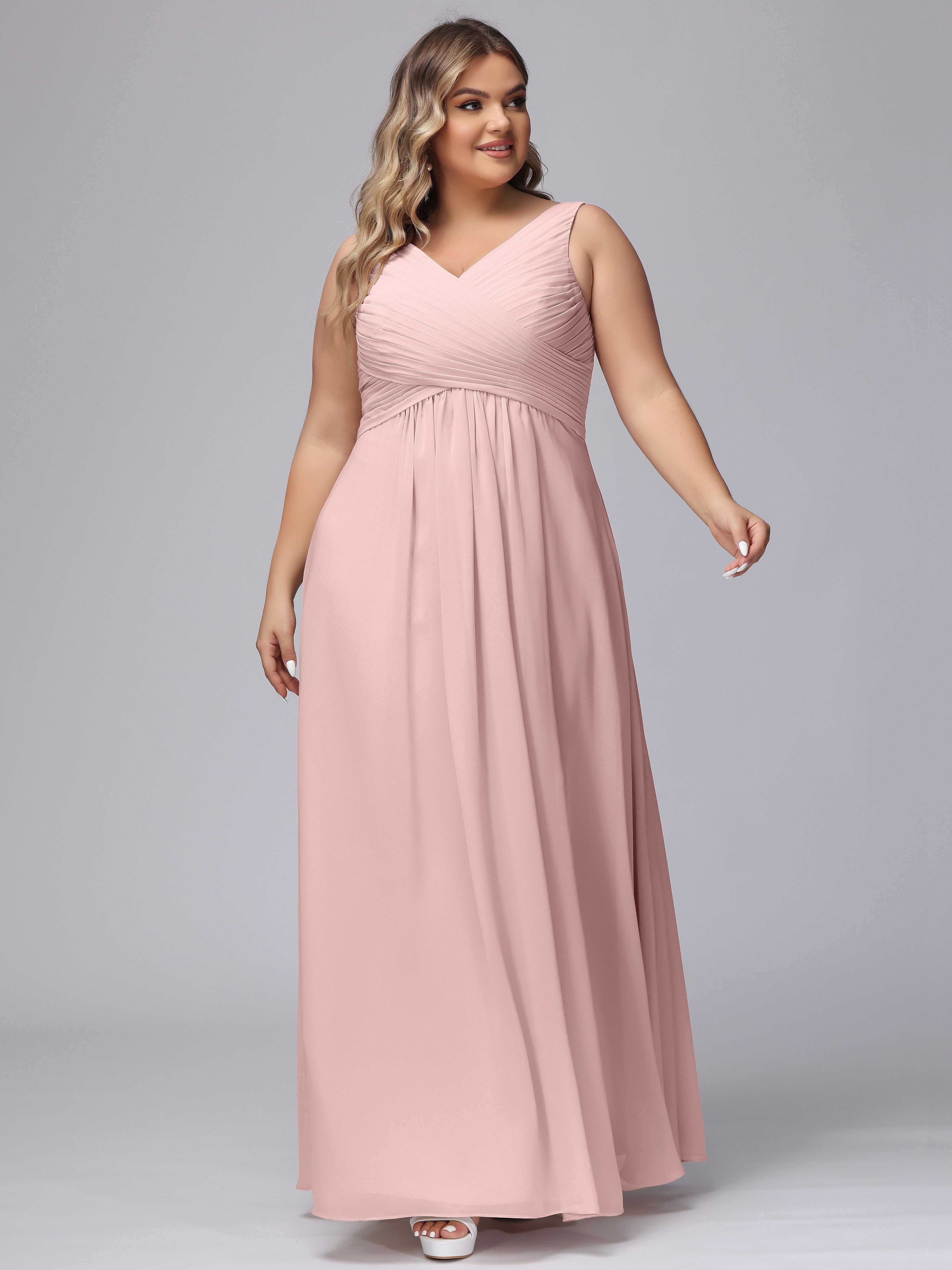 A-line Sleeveless V-back Chiffon Plus Size Bridesmaid Dress