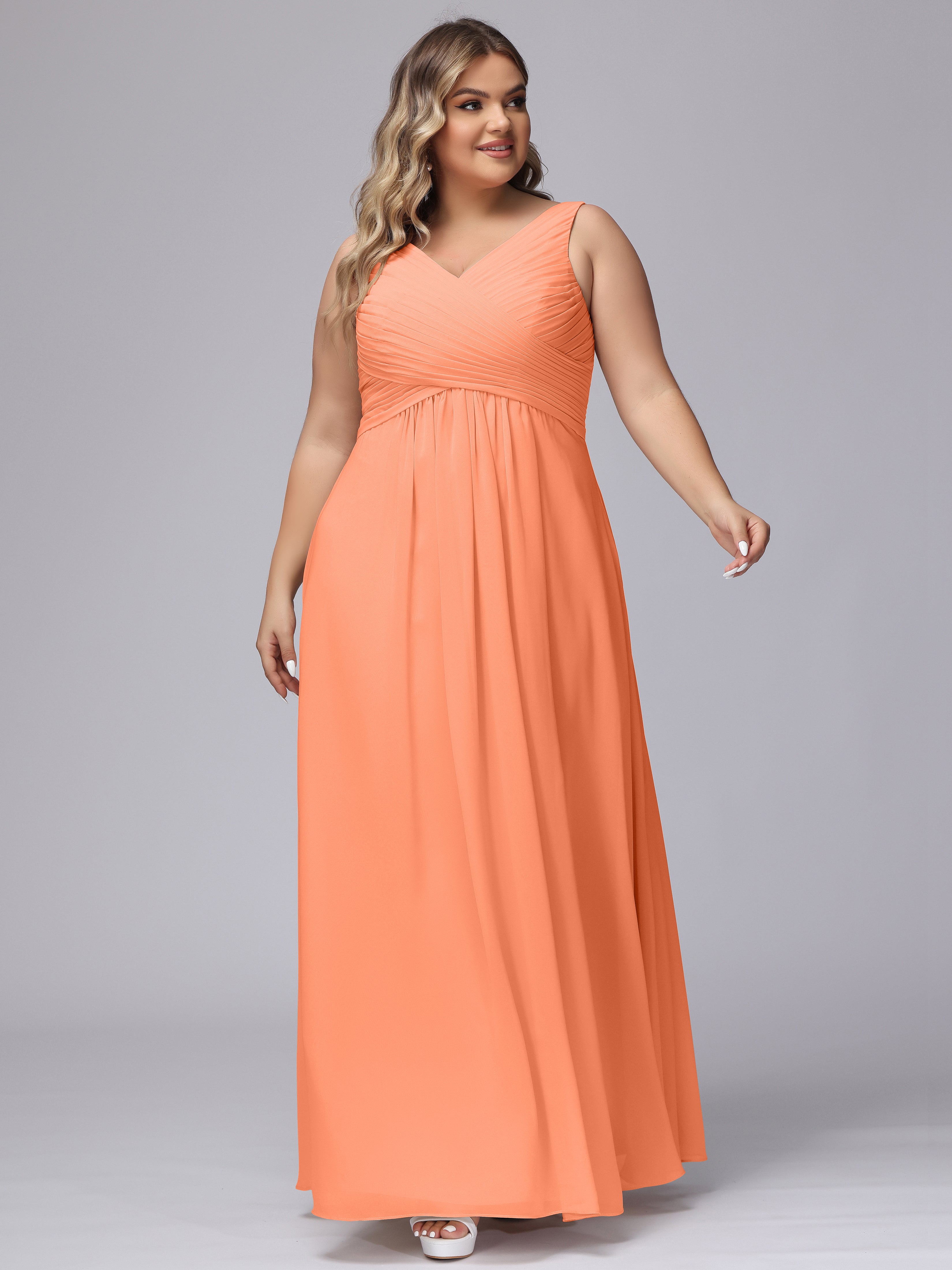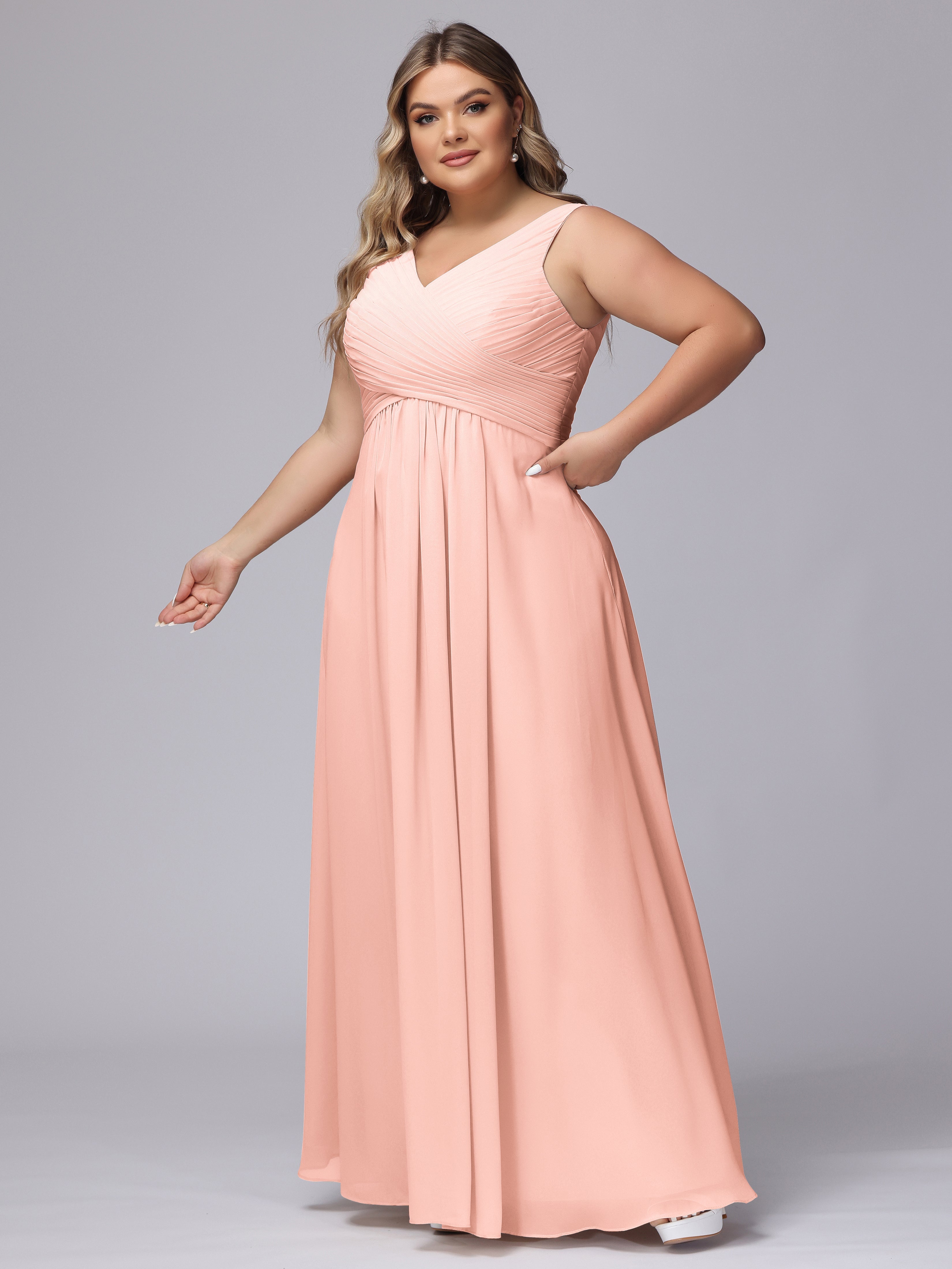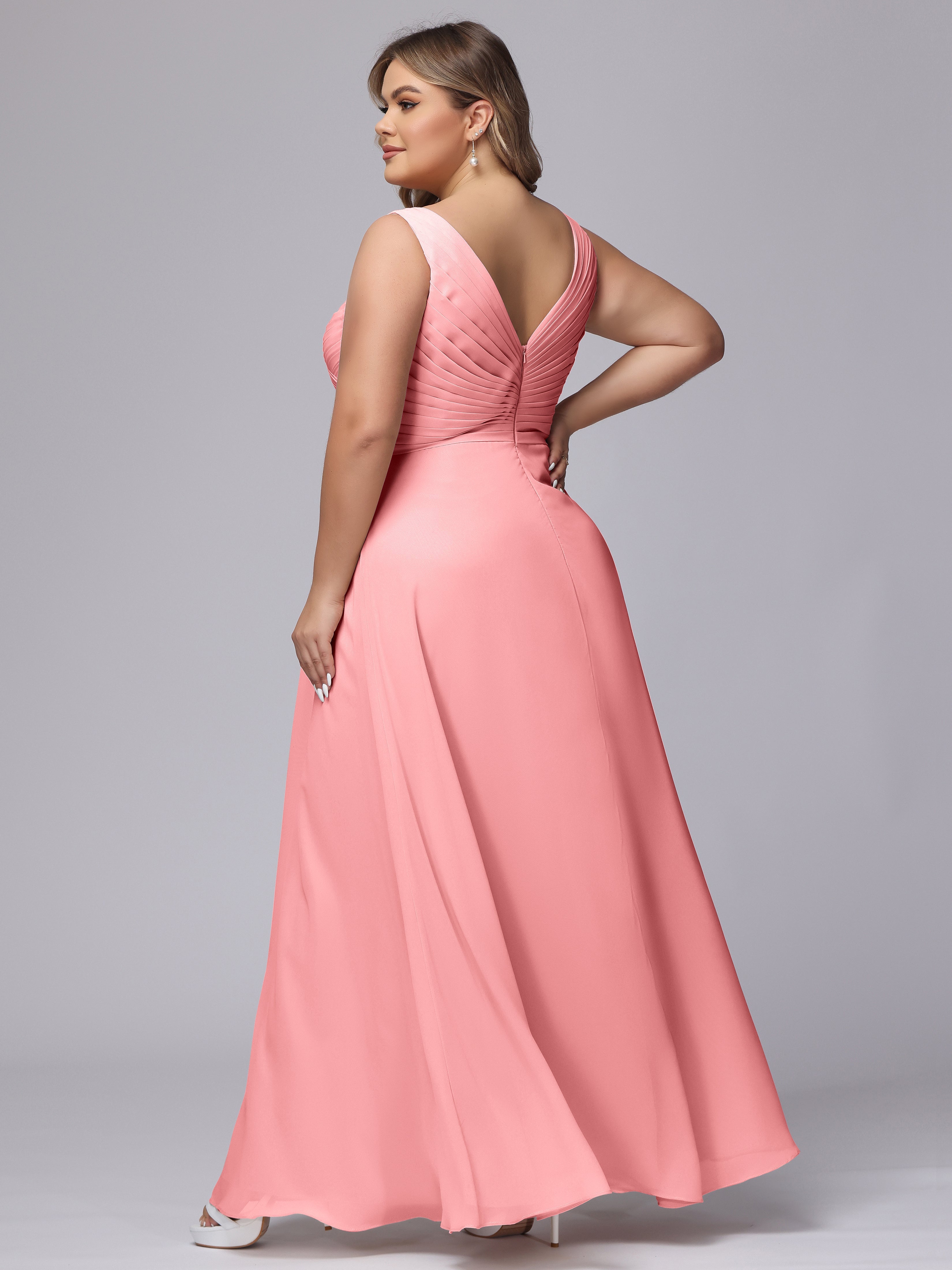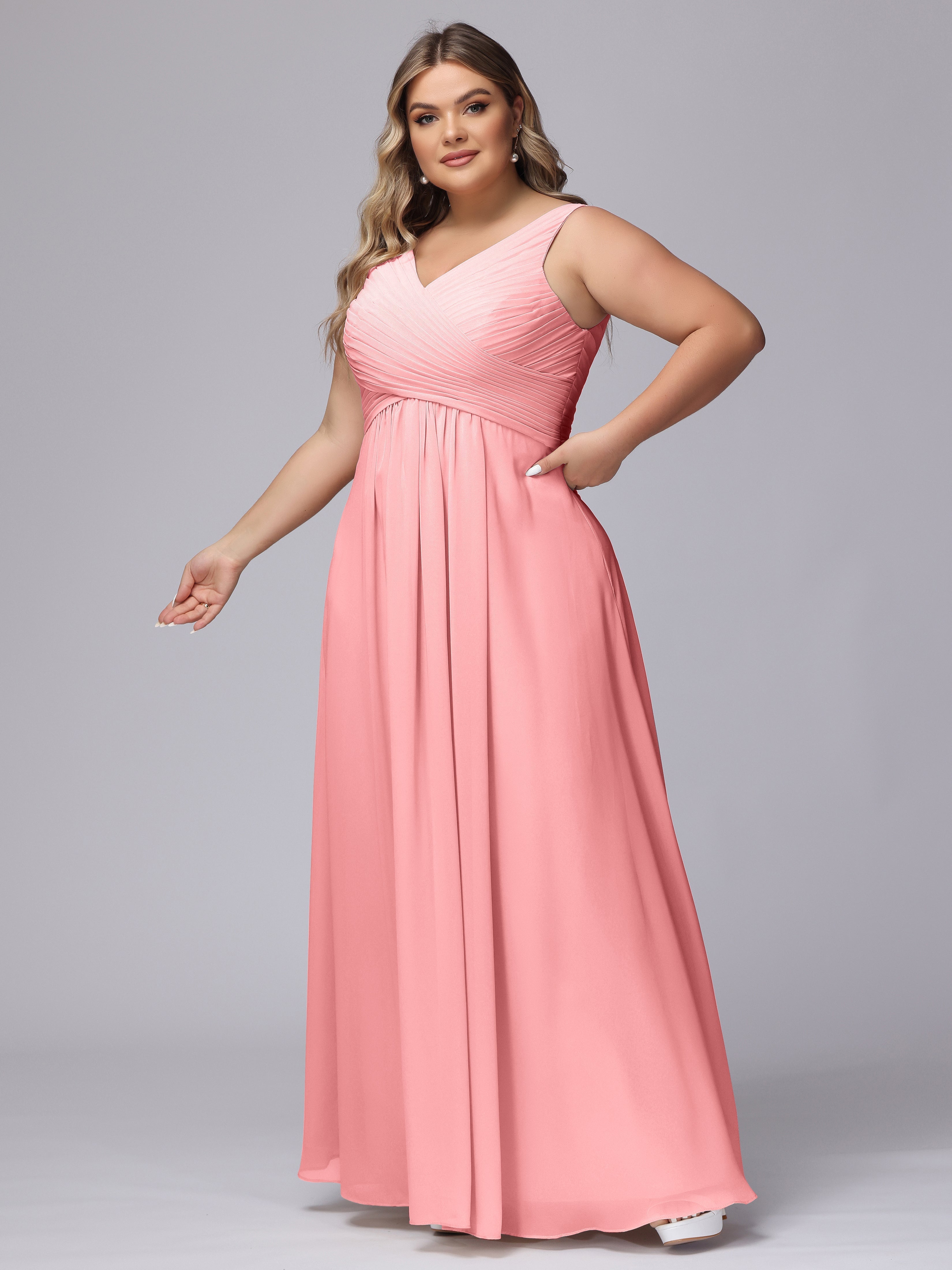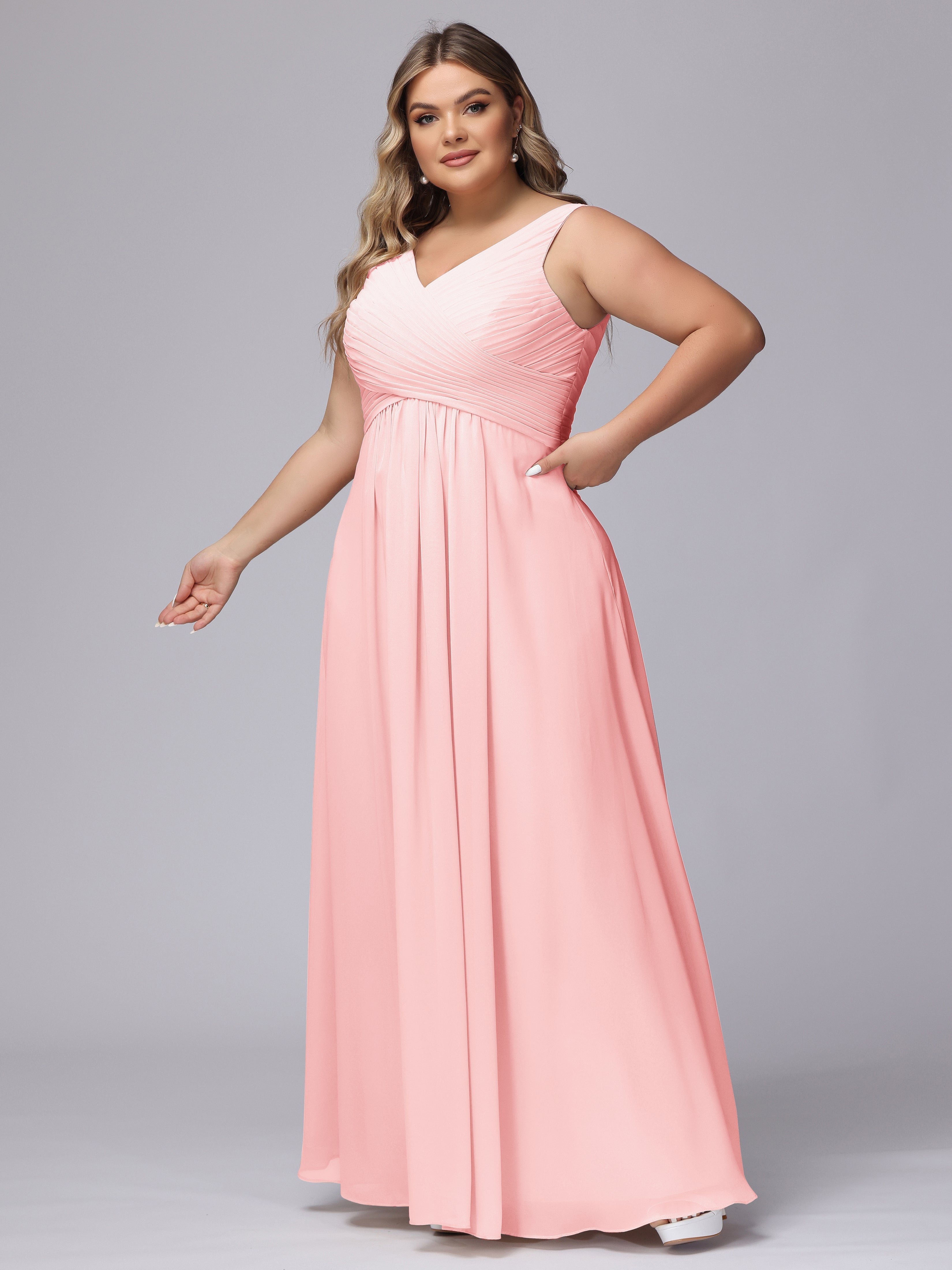 A-line Sleeveless V-back Chiffon Plus Size Bridesmaid Dress