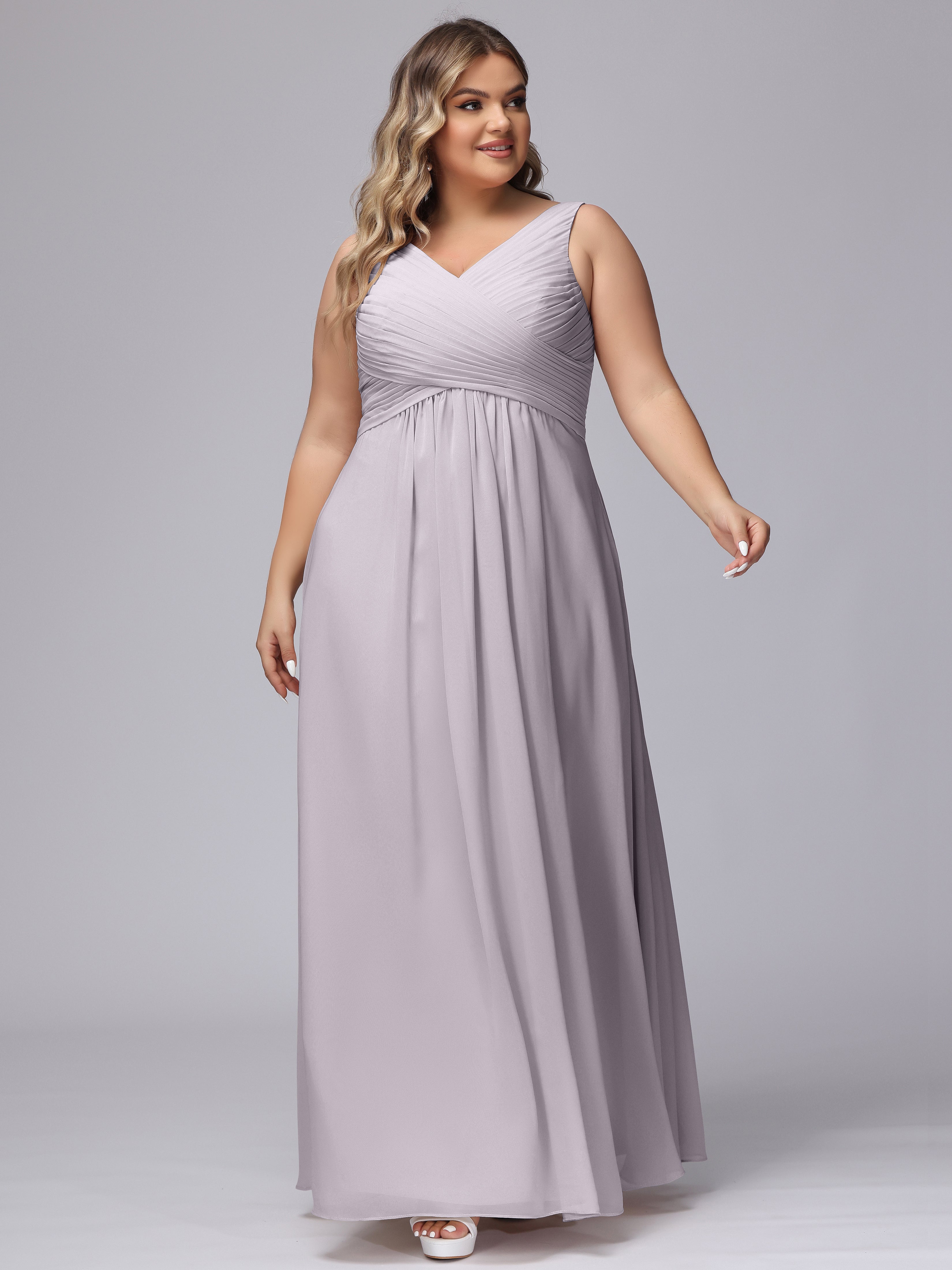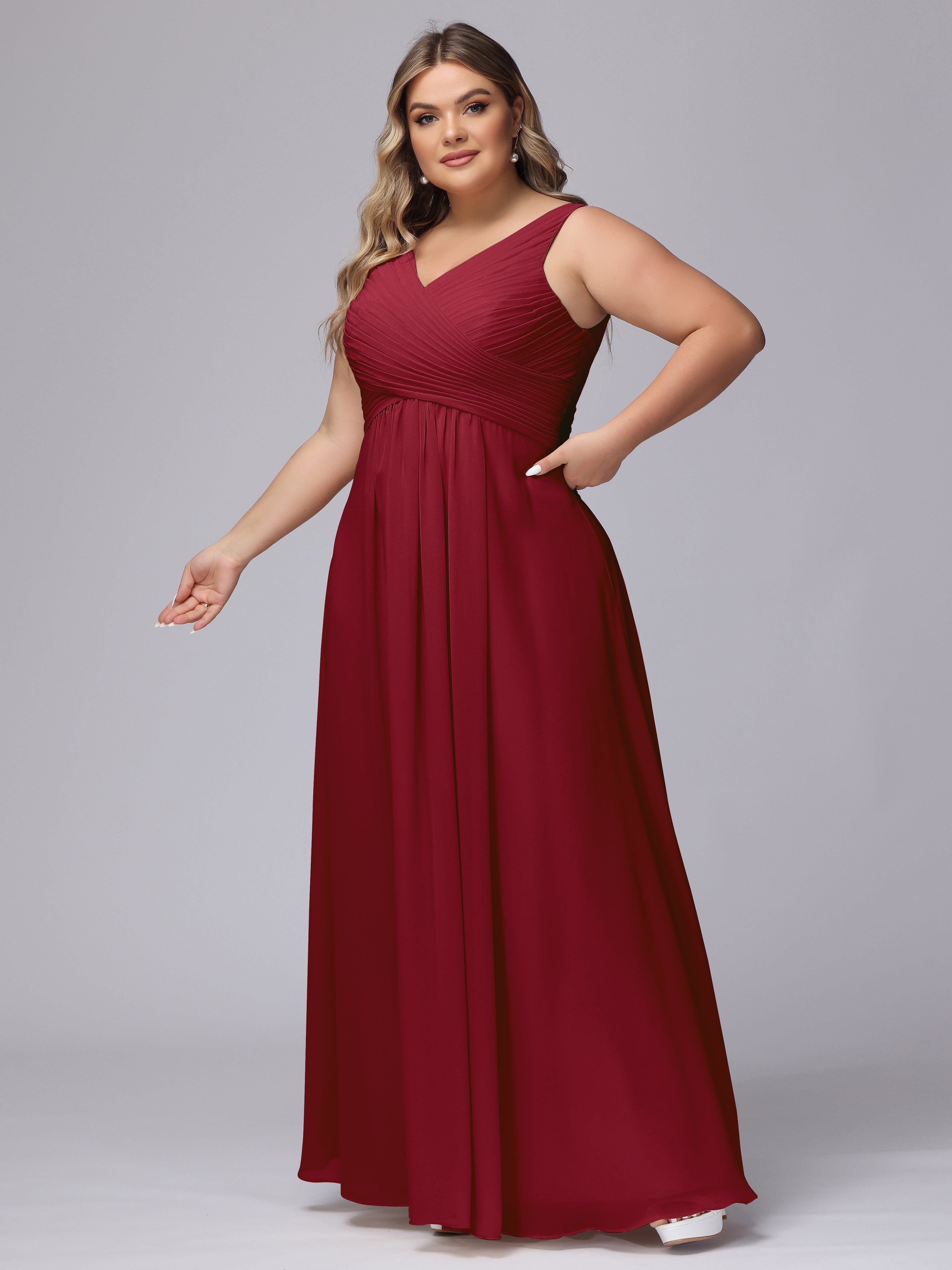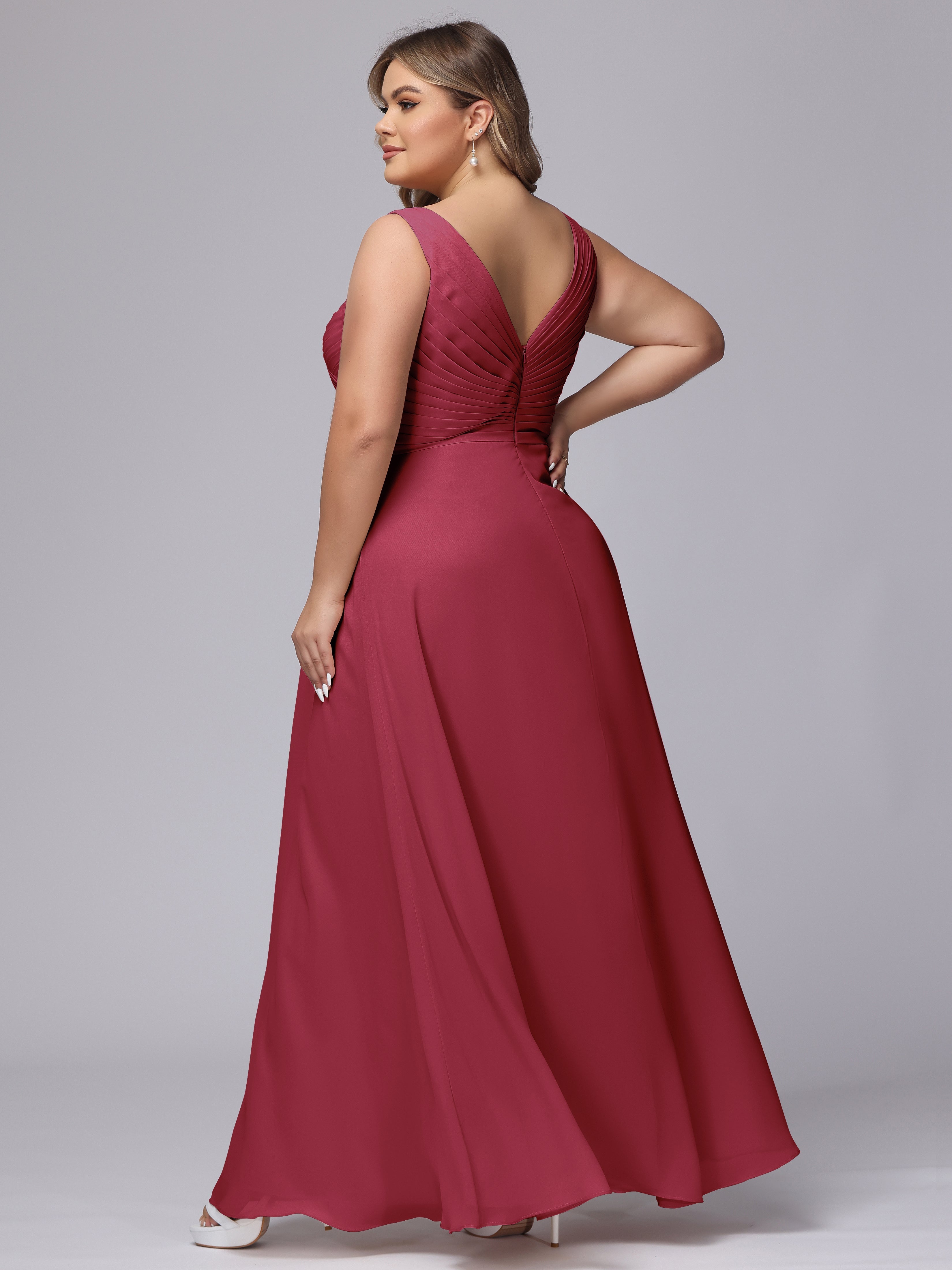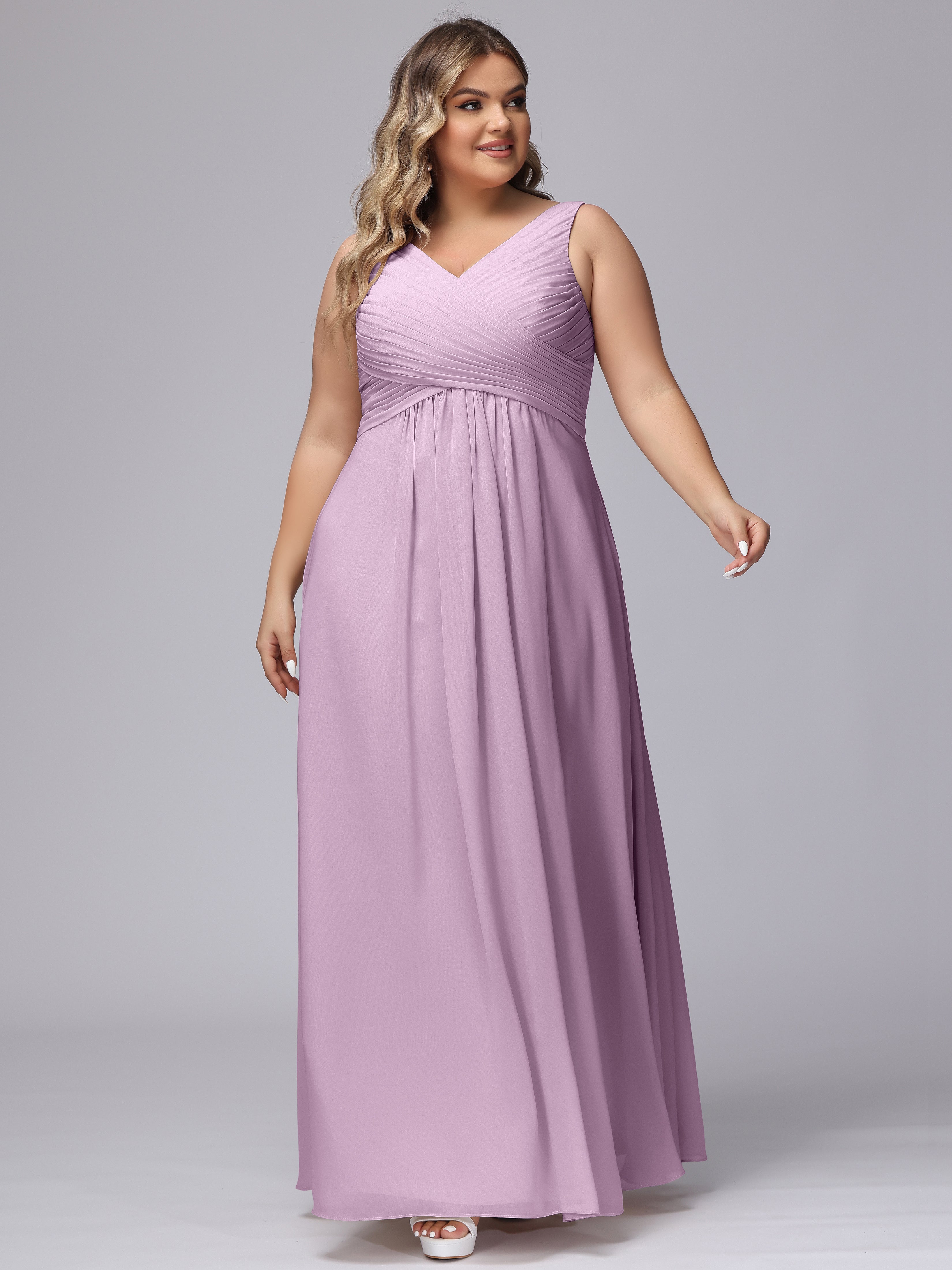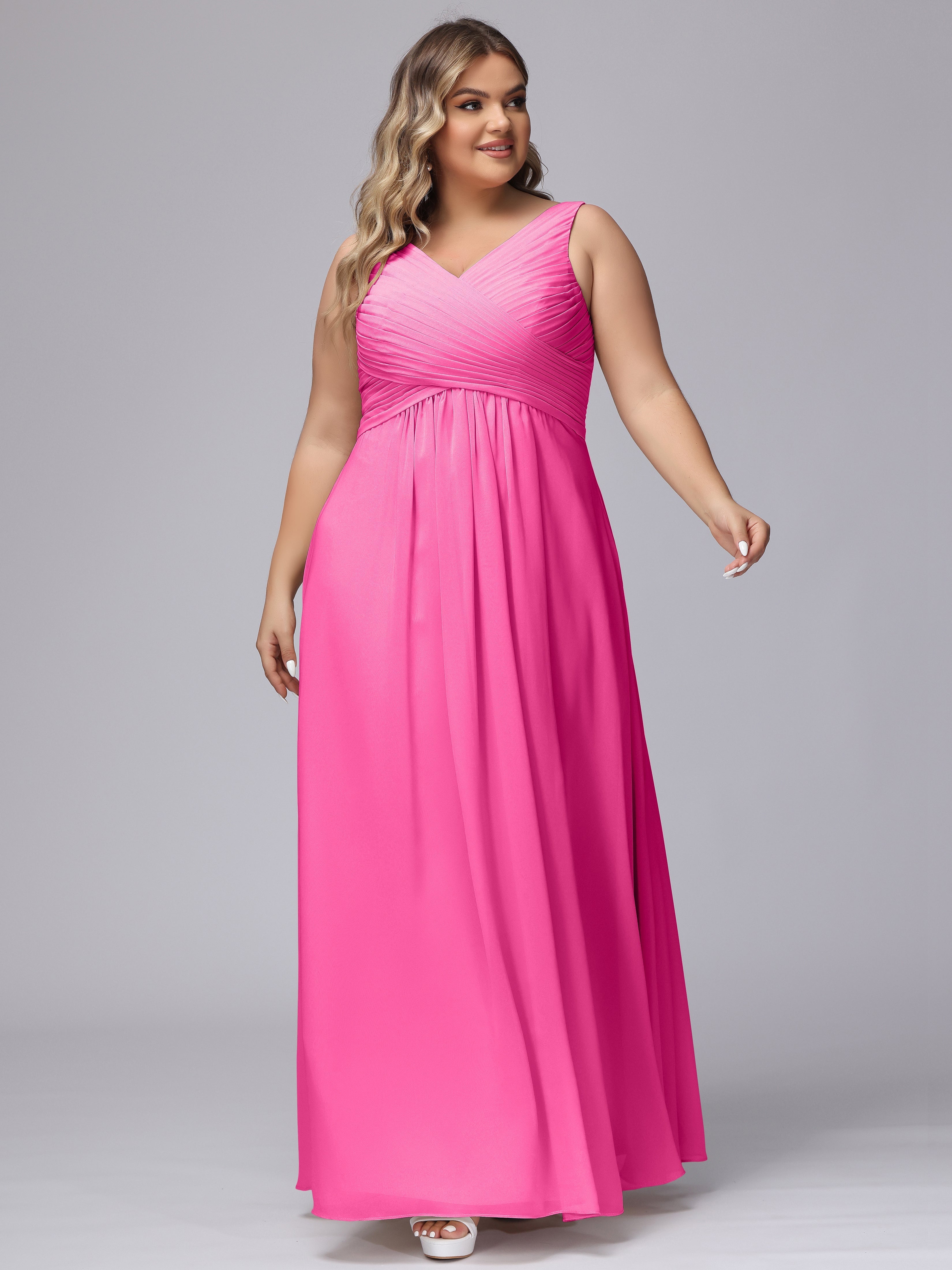 A-line Sleeveless V-back Chiffon Plus Size Bridesmaid Dress