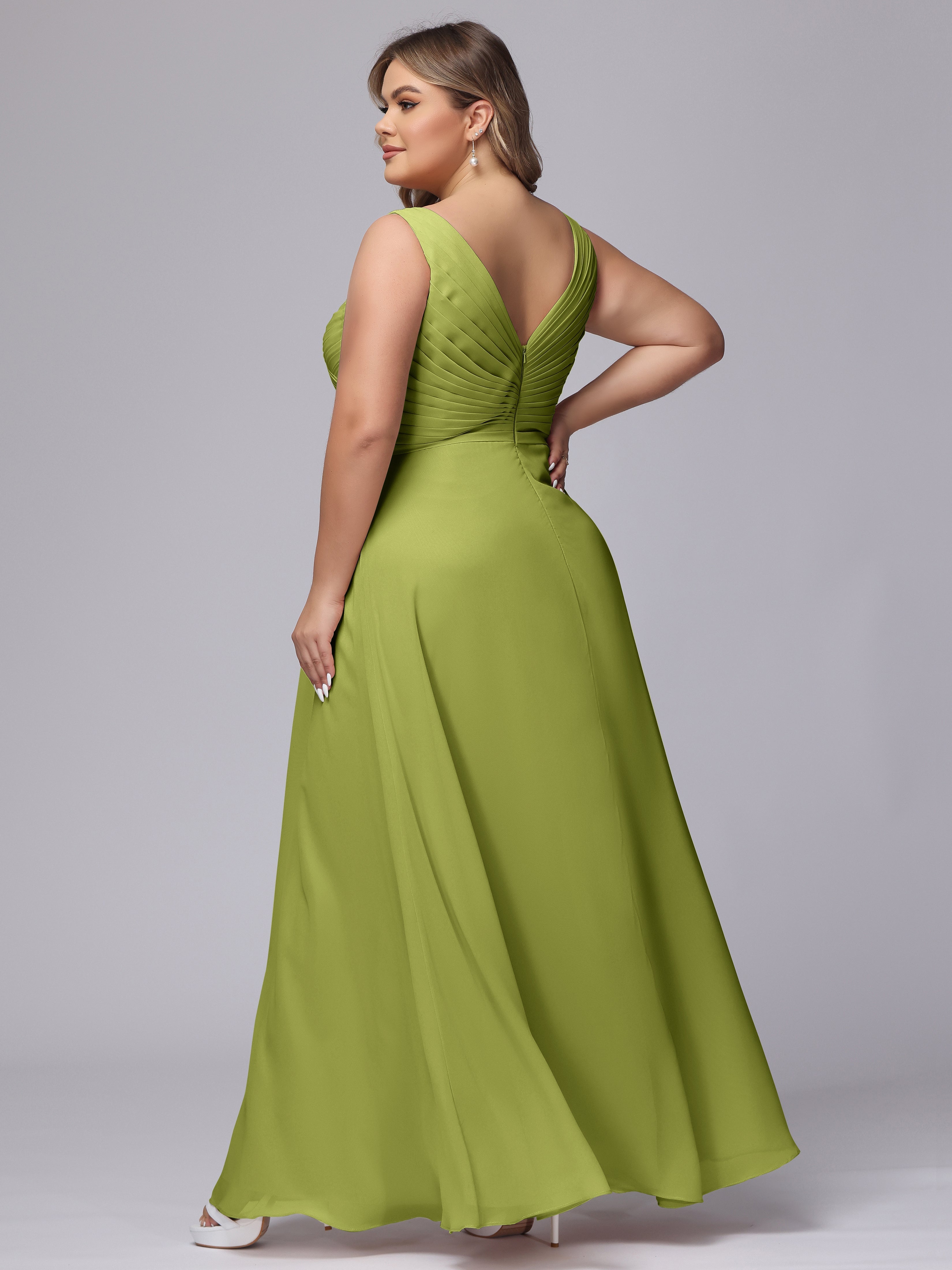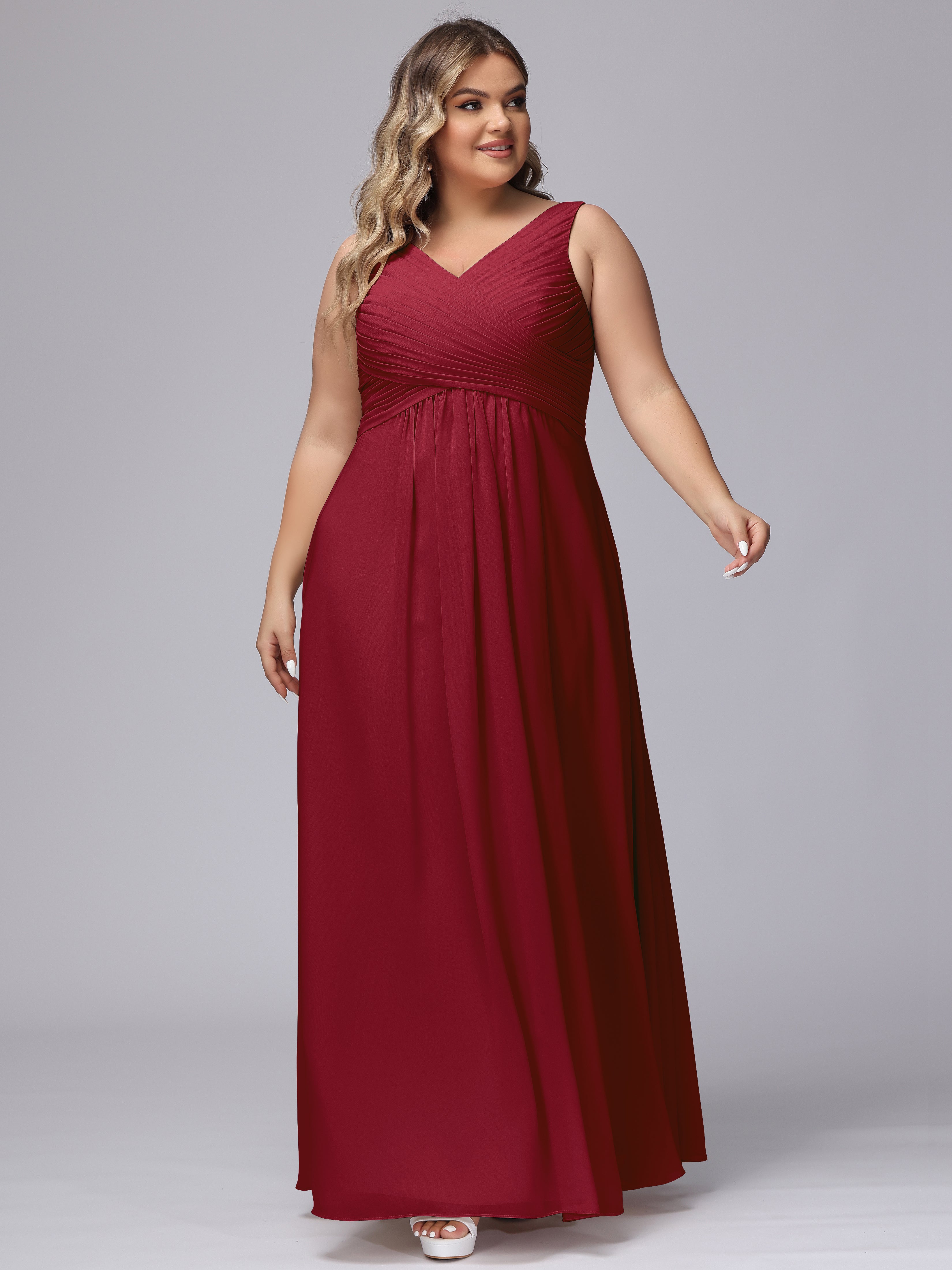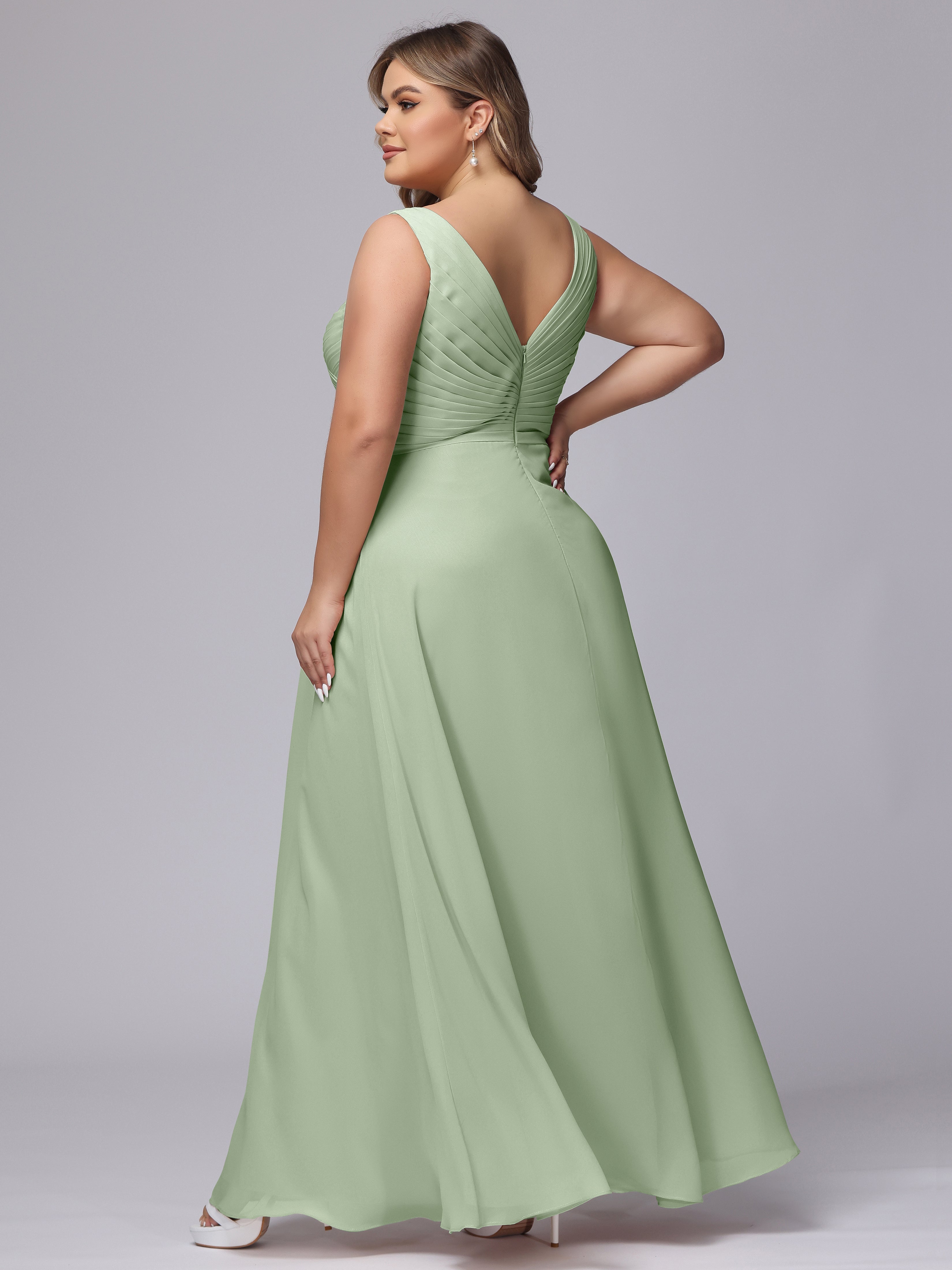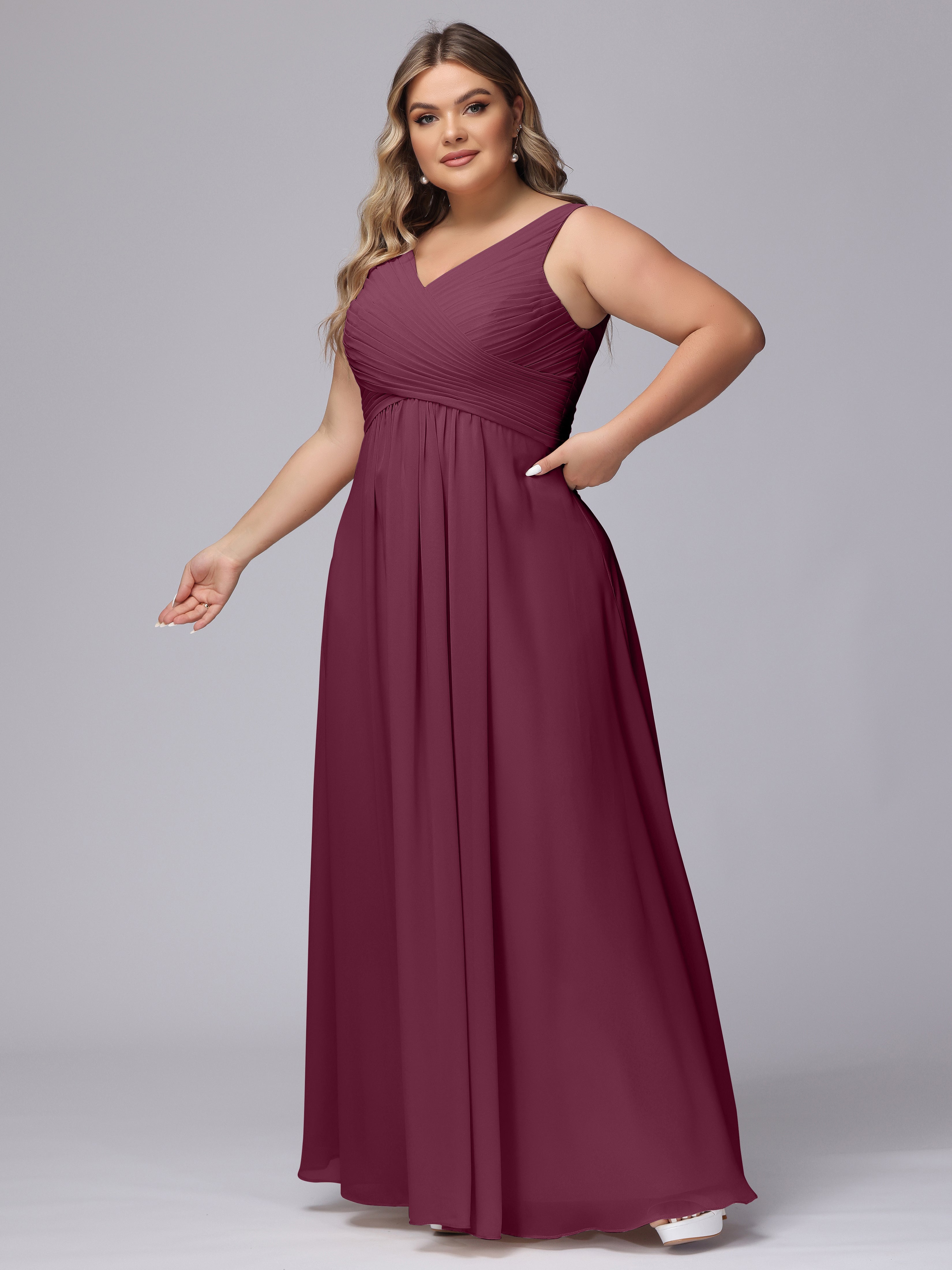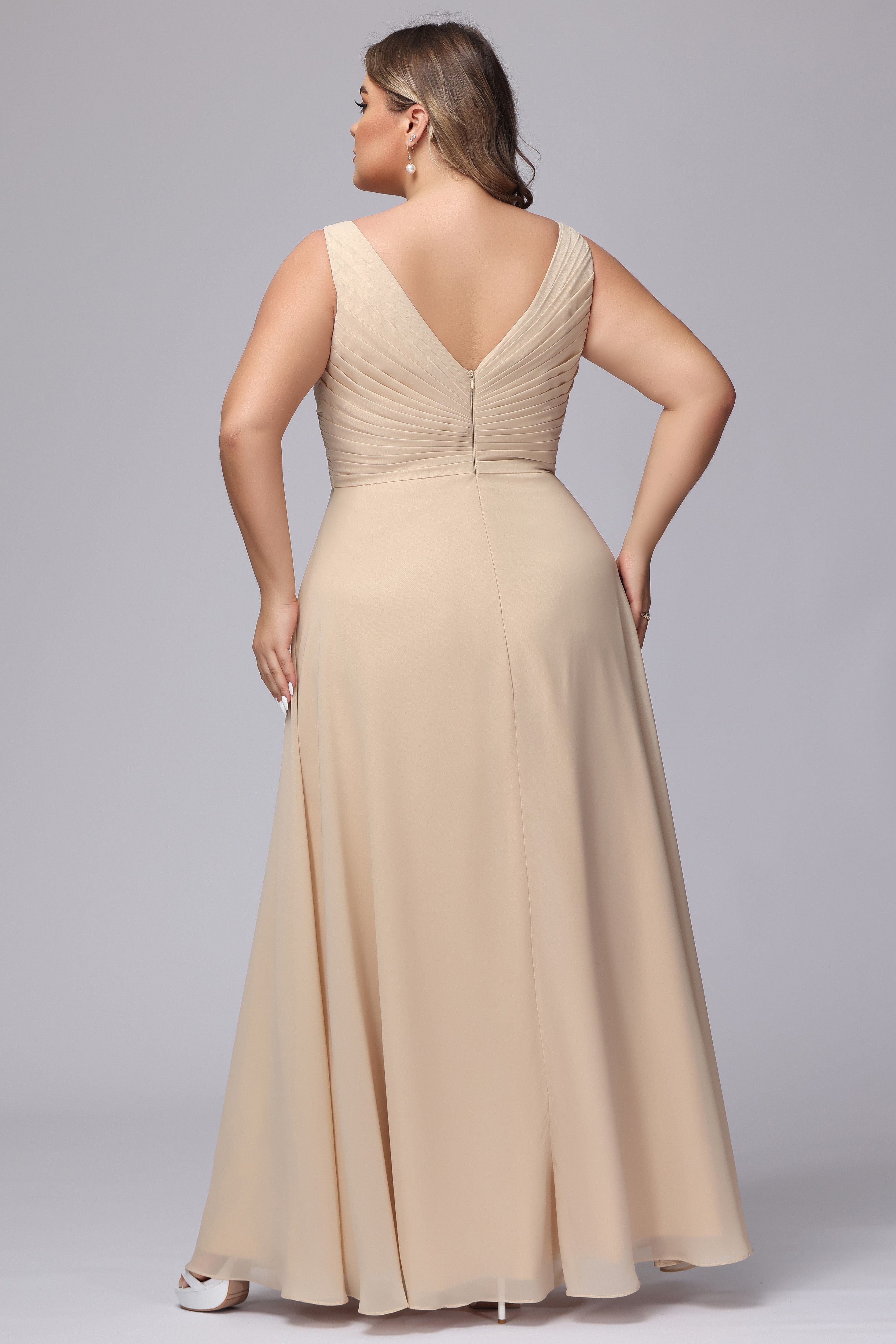 A-line Sleeveless V-back Chiffon Plus Size Bridesmaid Dress