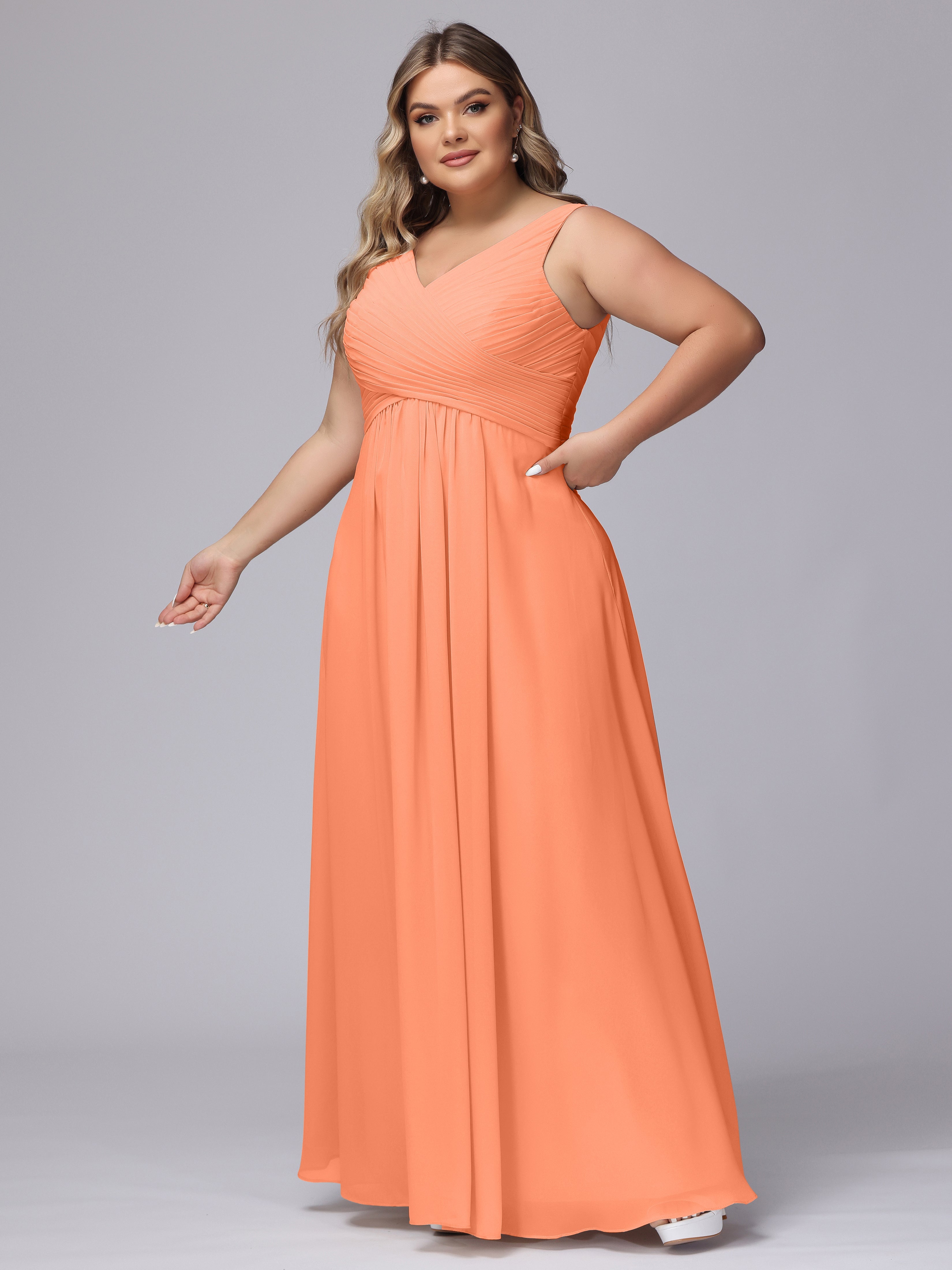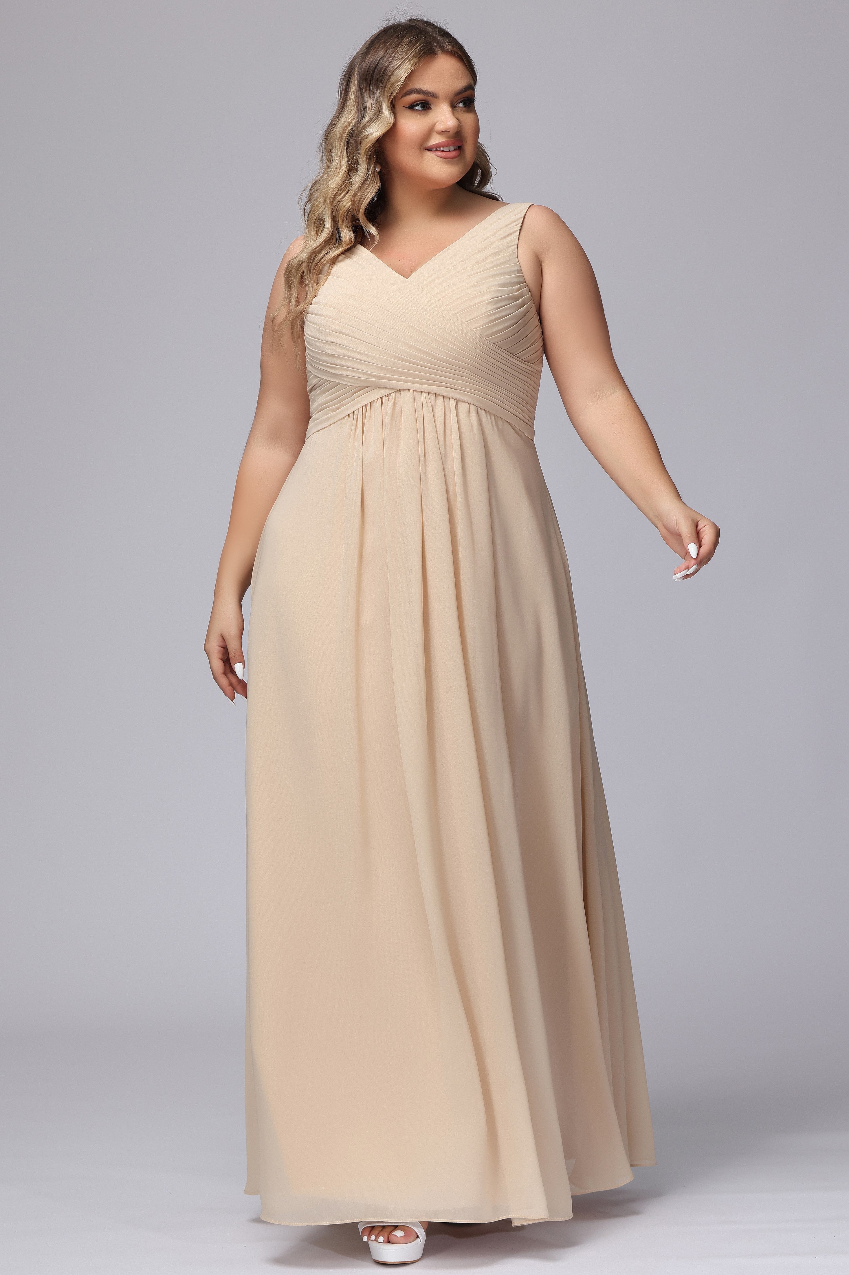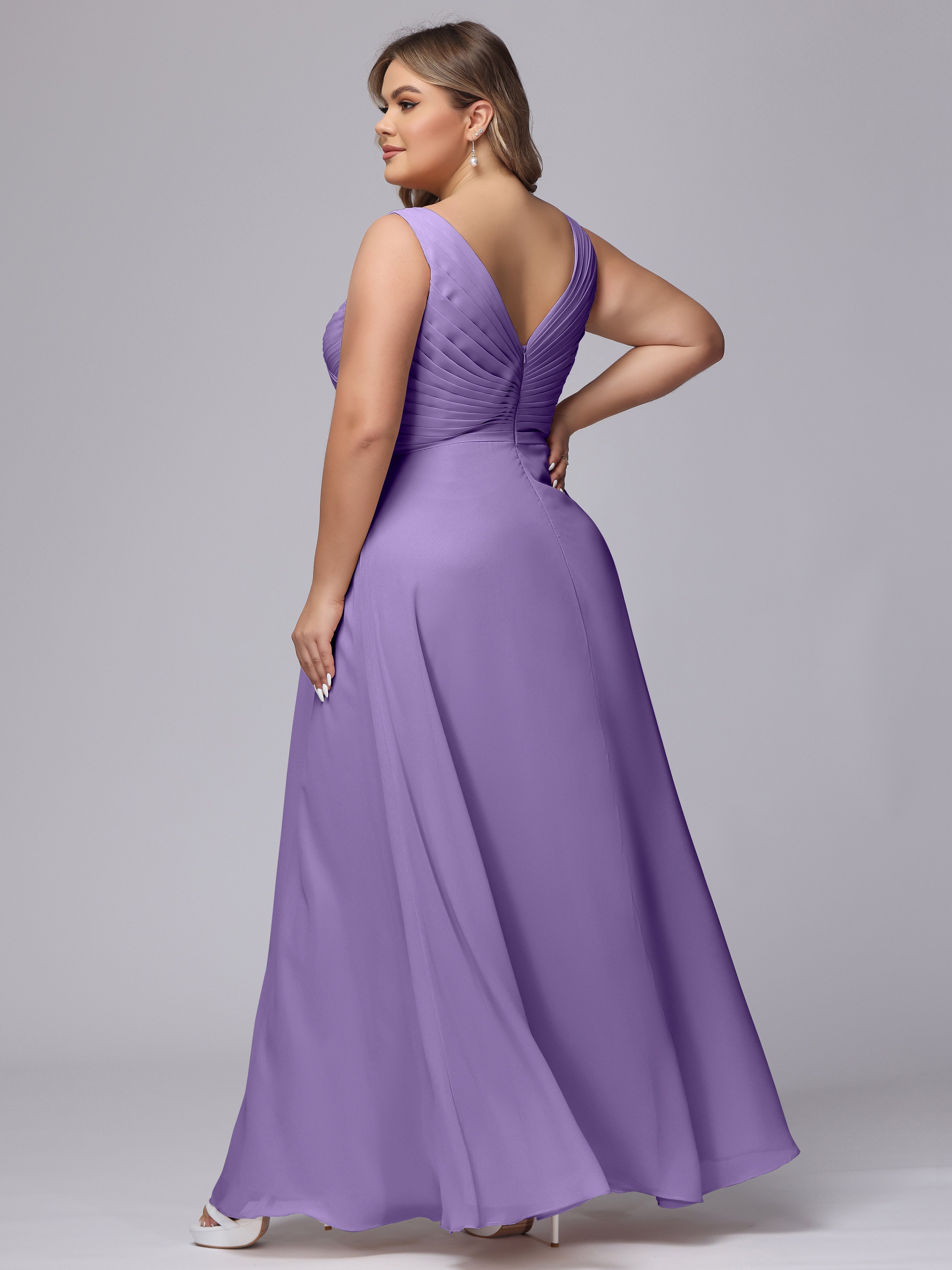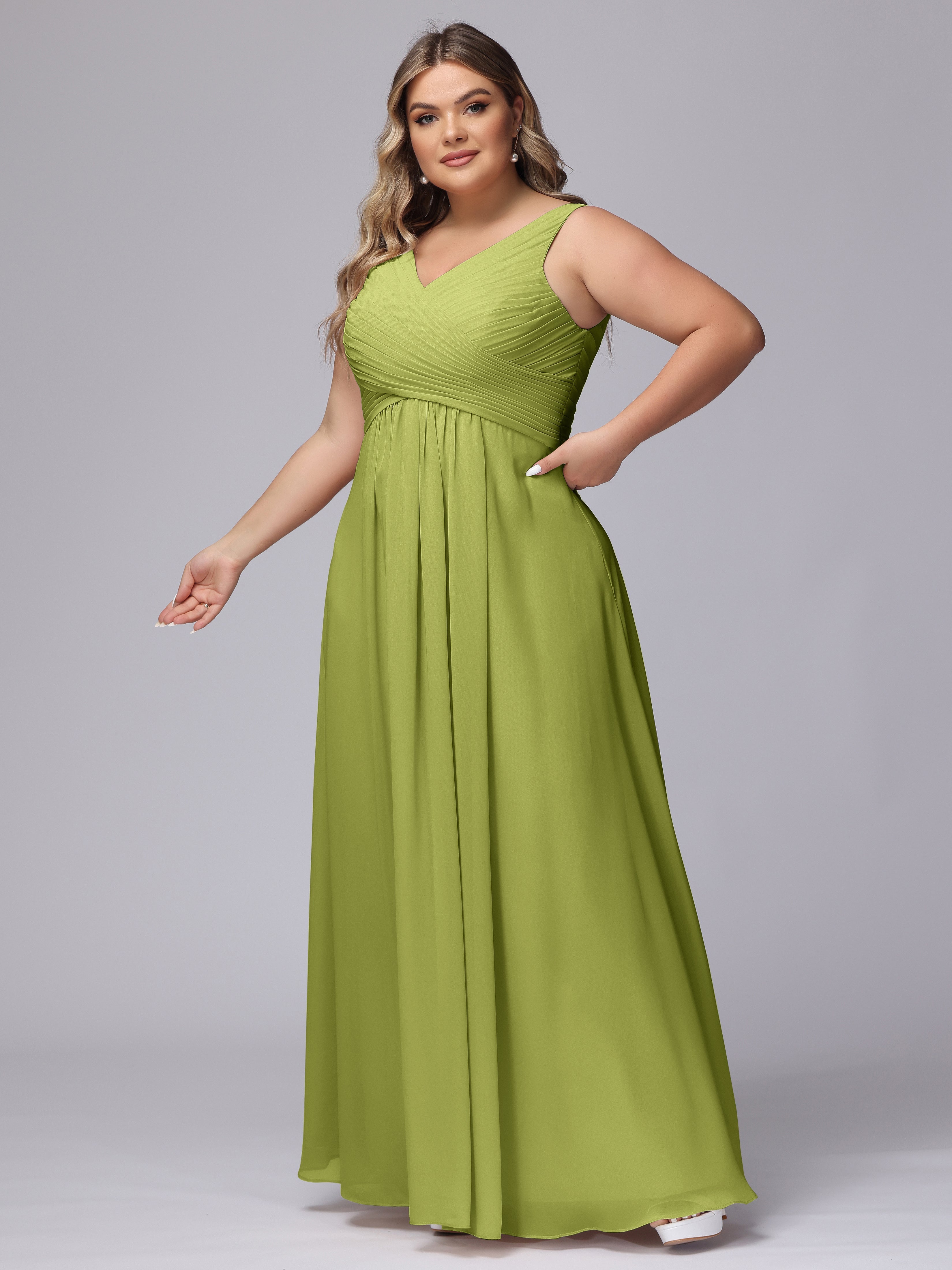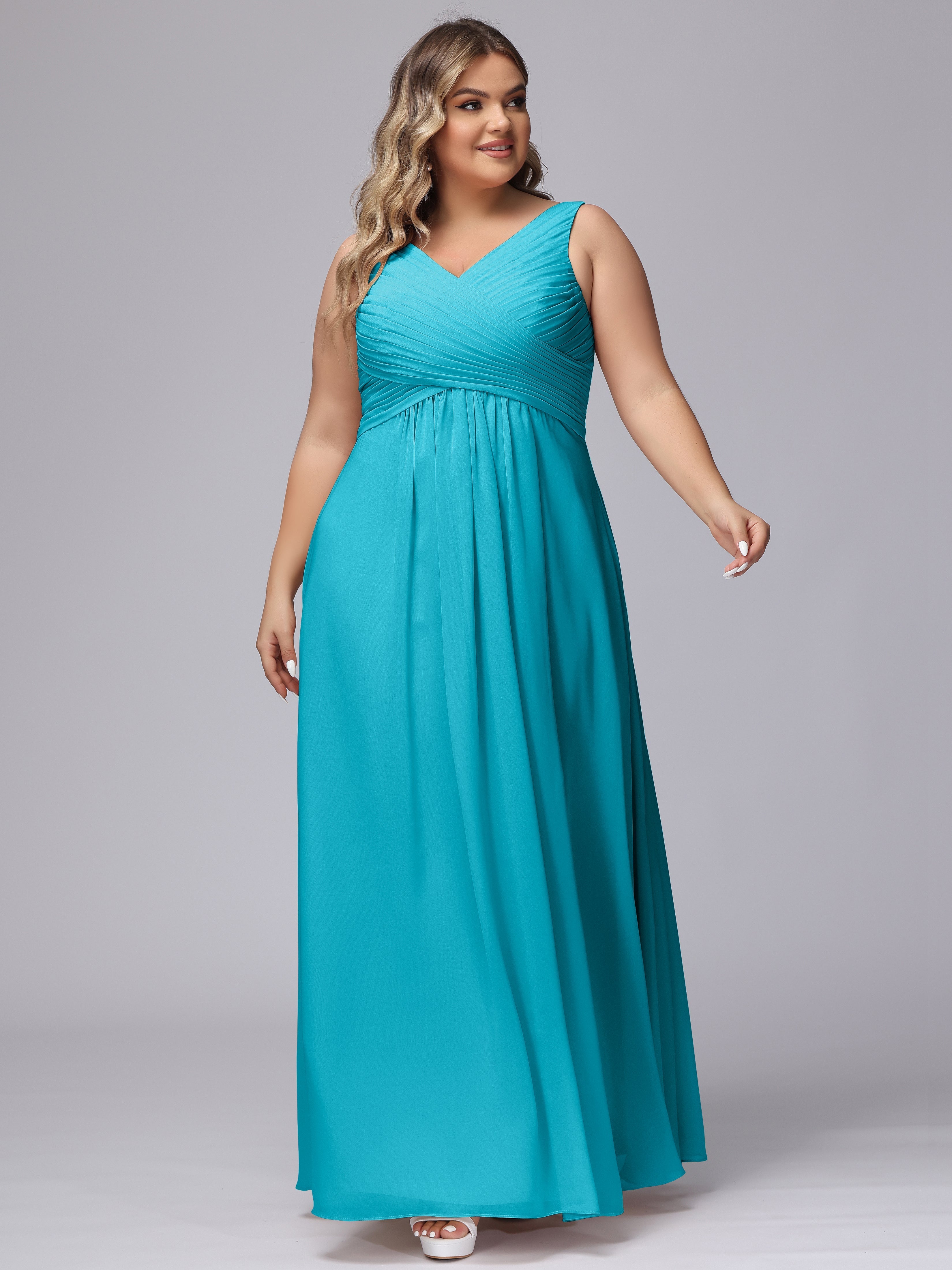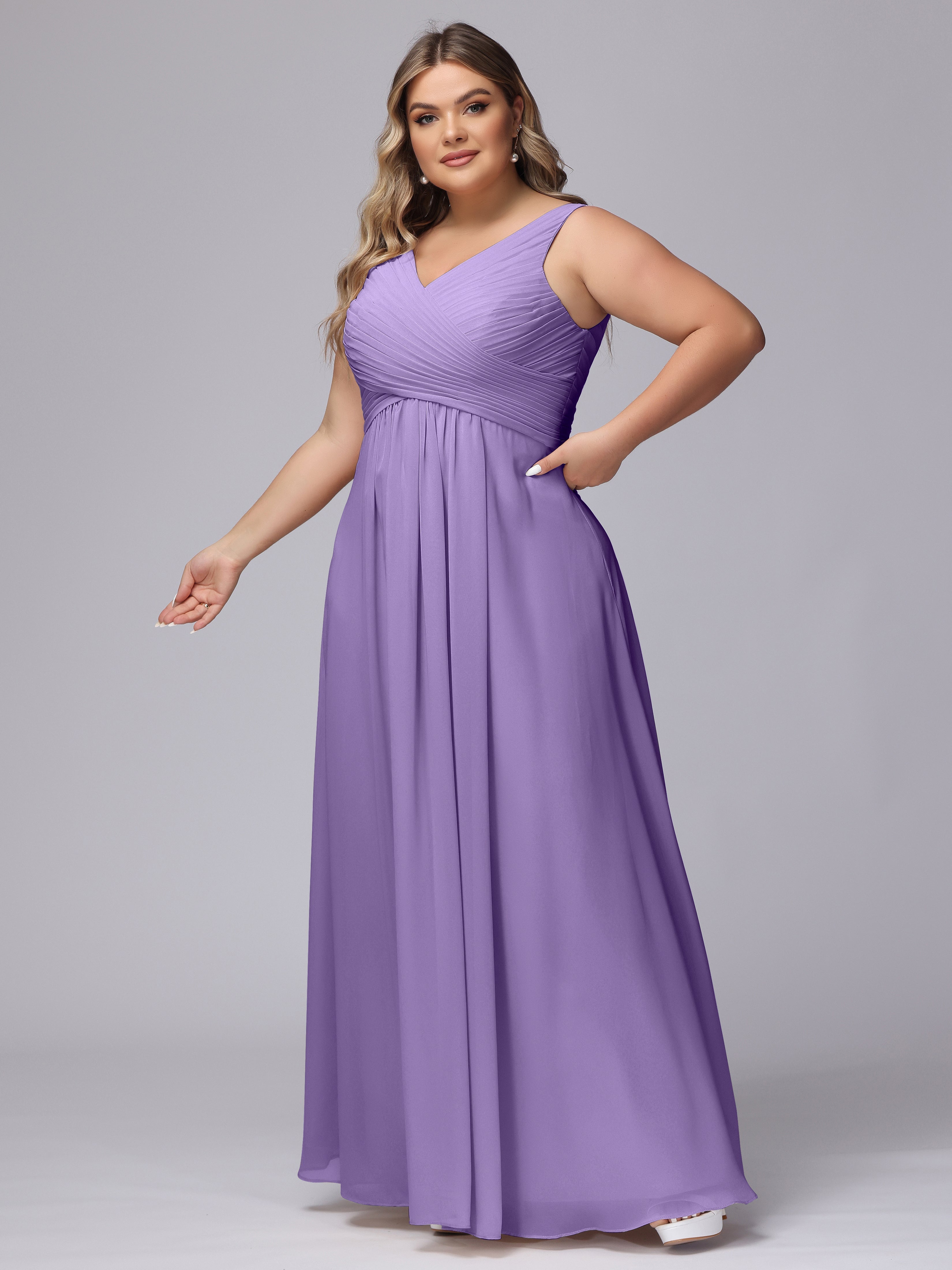 A-line Sleeveless V-back Chiffon Plus Size Bridesmaid Dress
