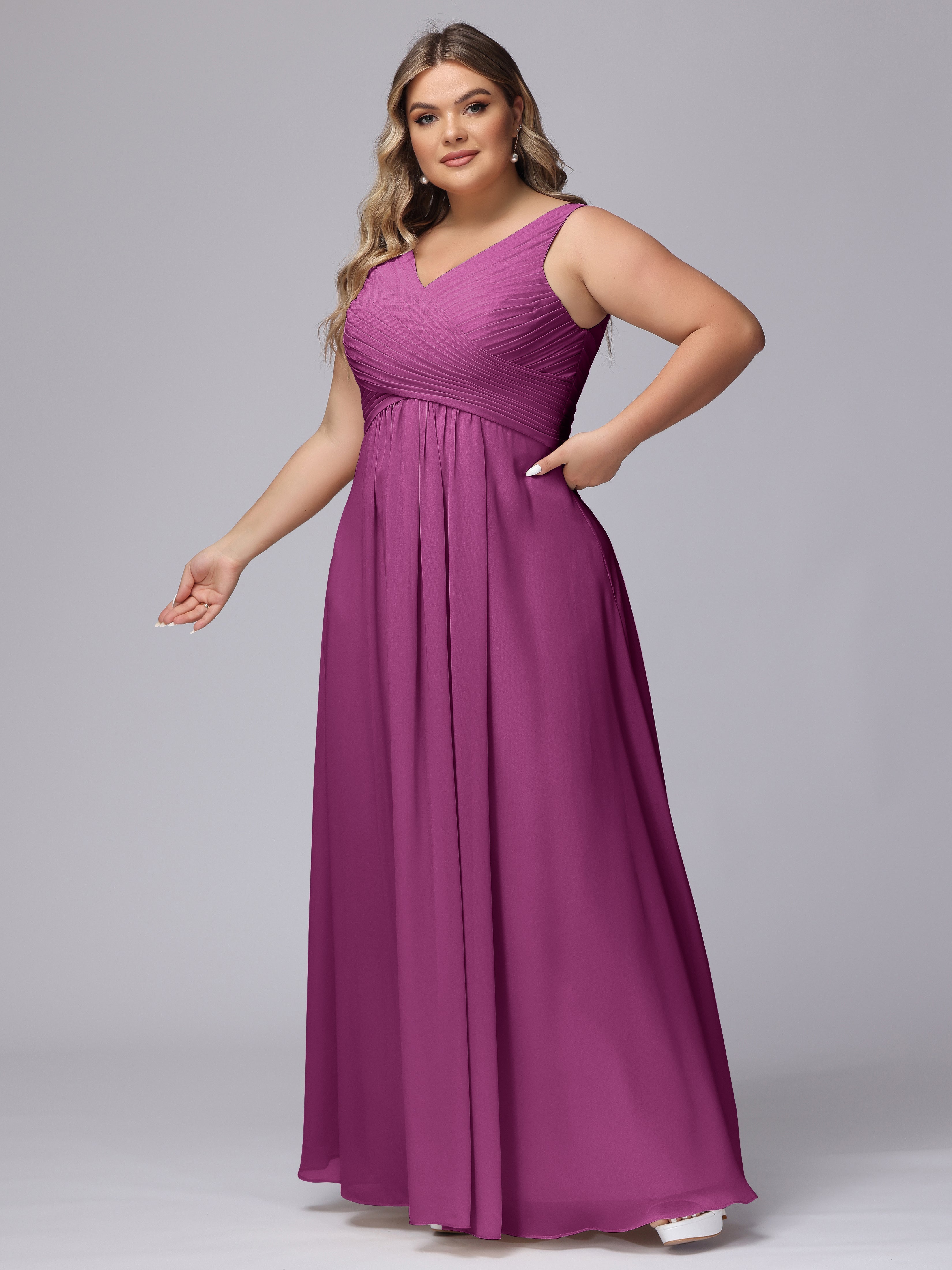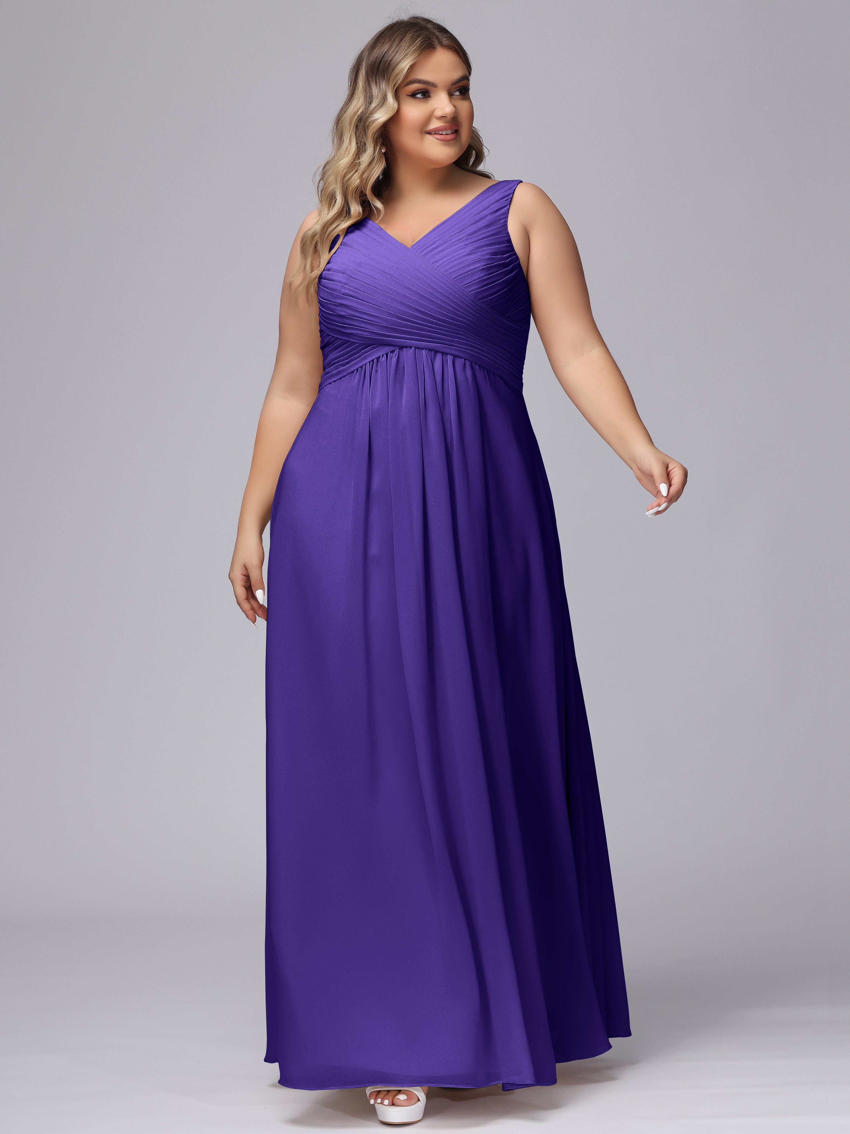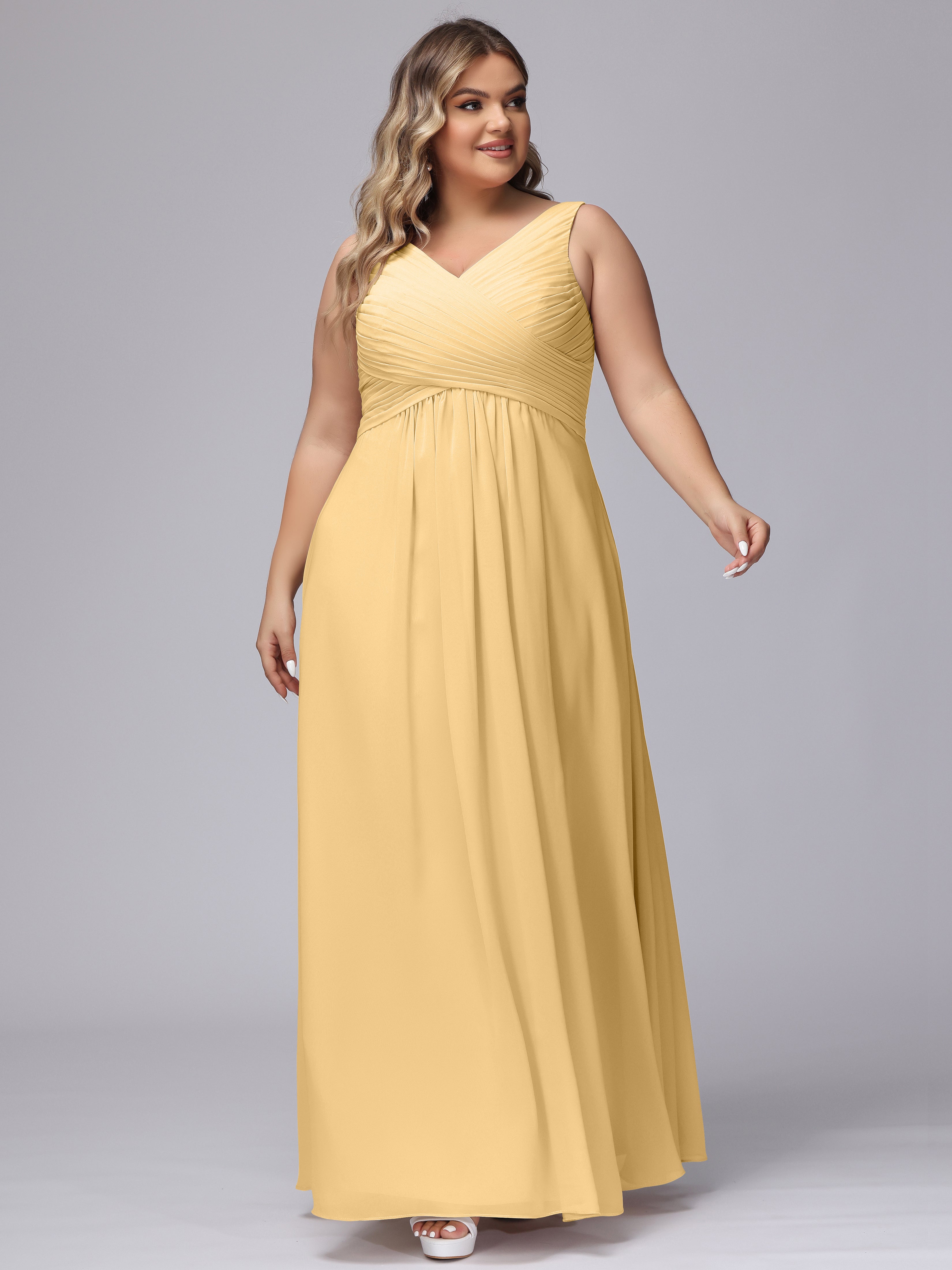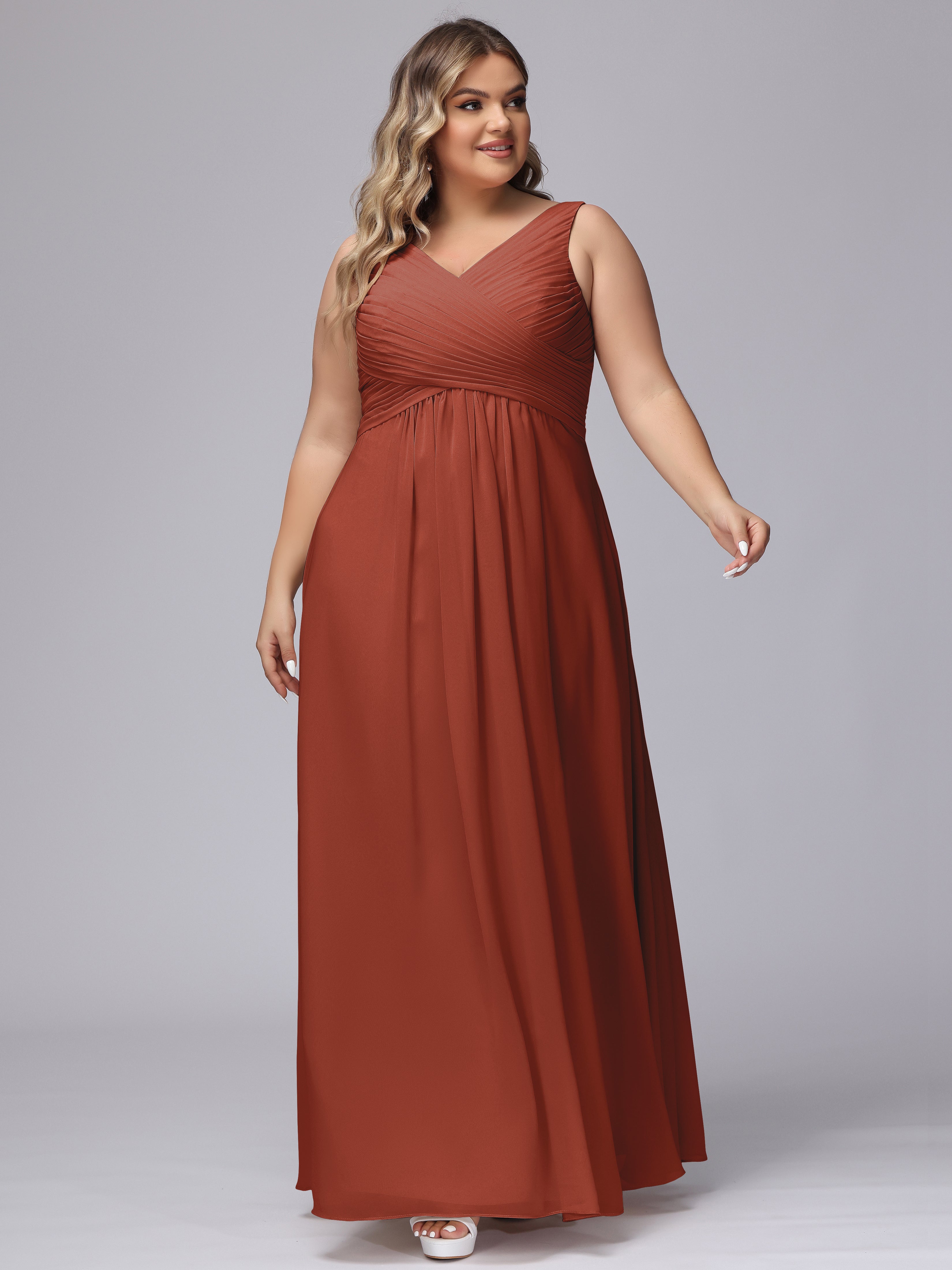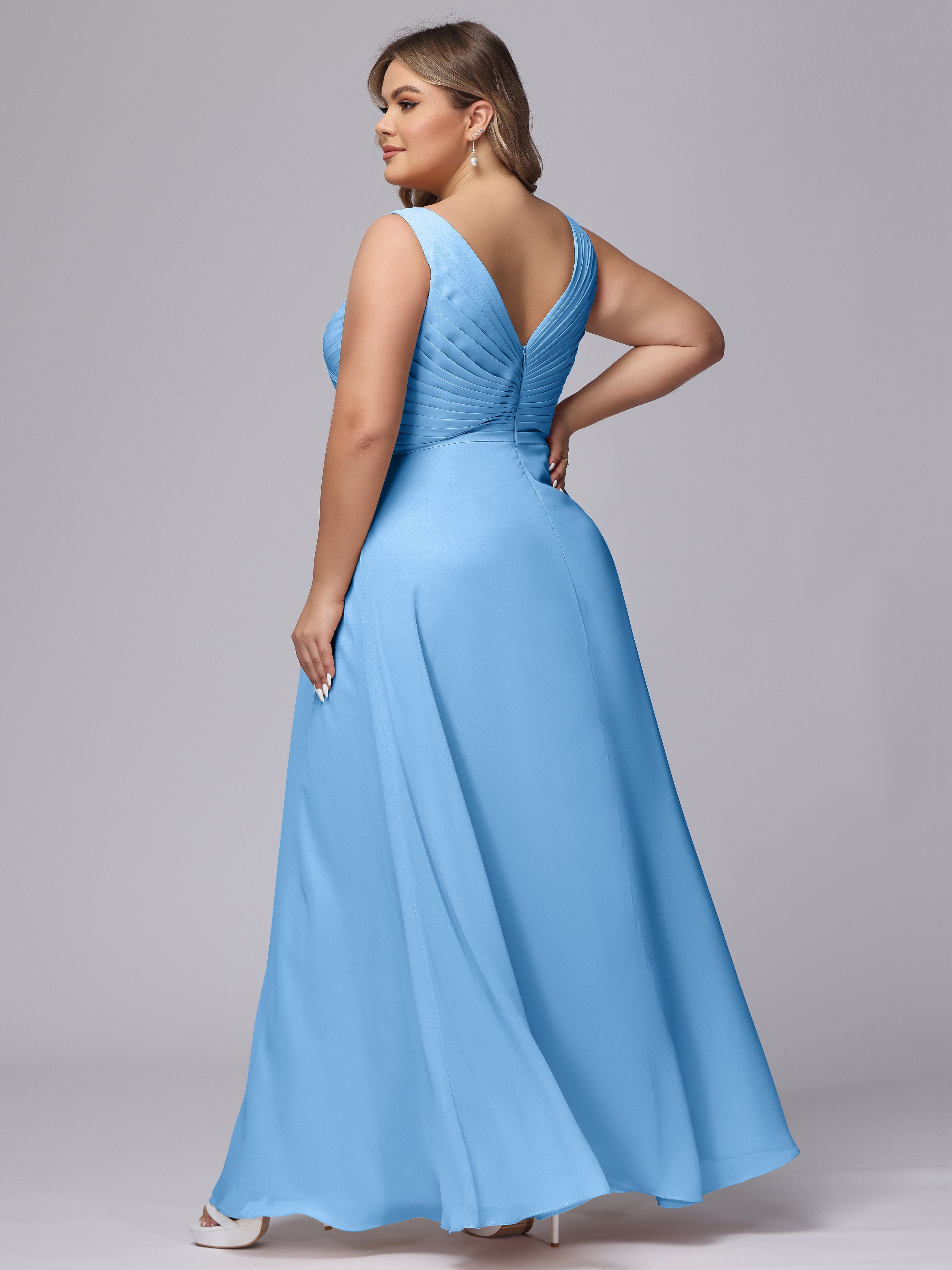 A-line Sleeveless V-back Chiffon Plus Size Bridesmaid Dress