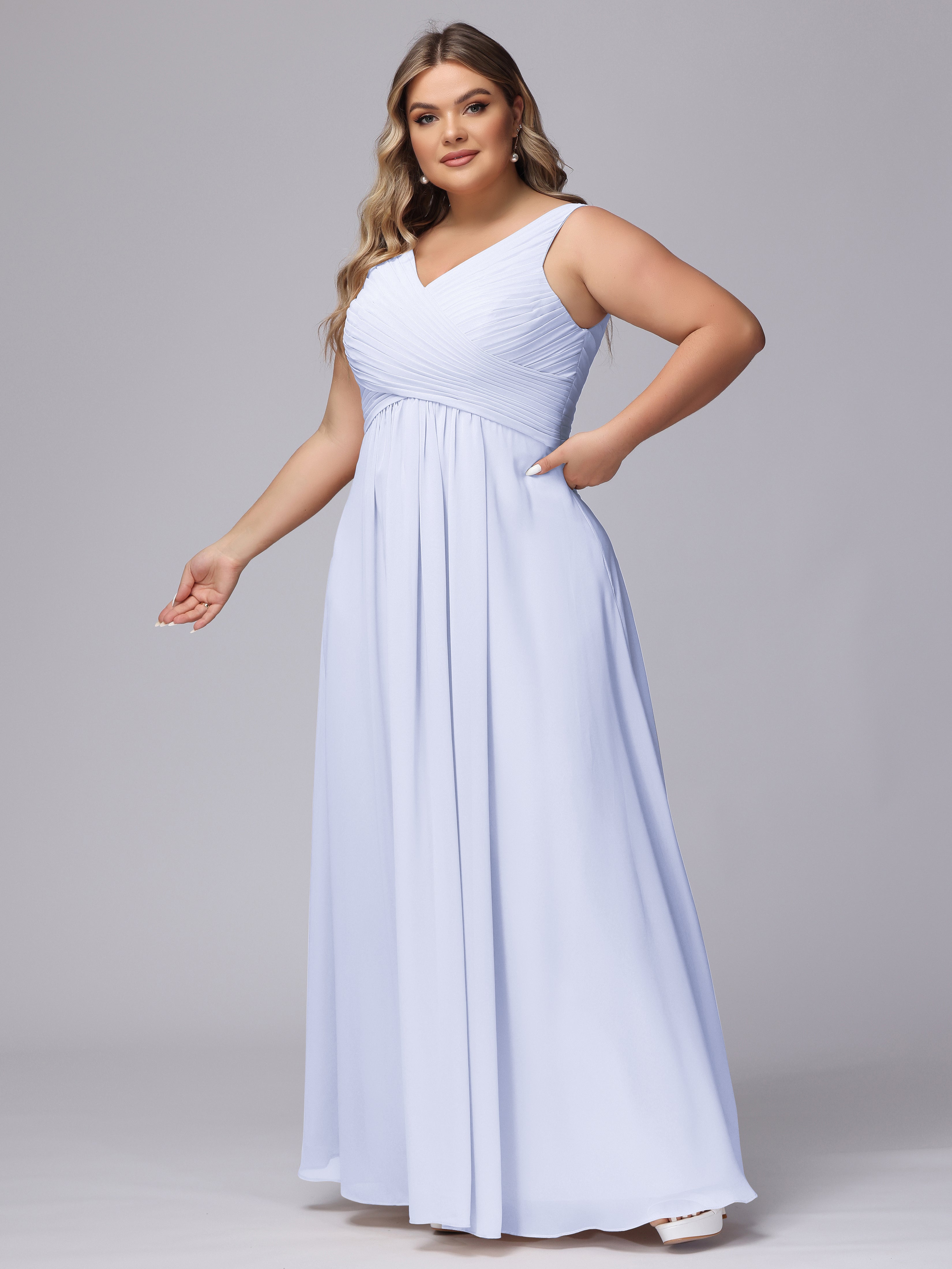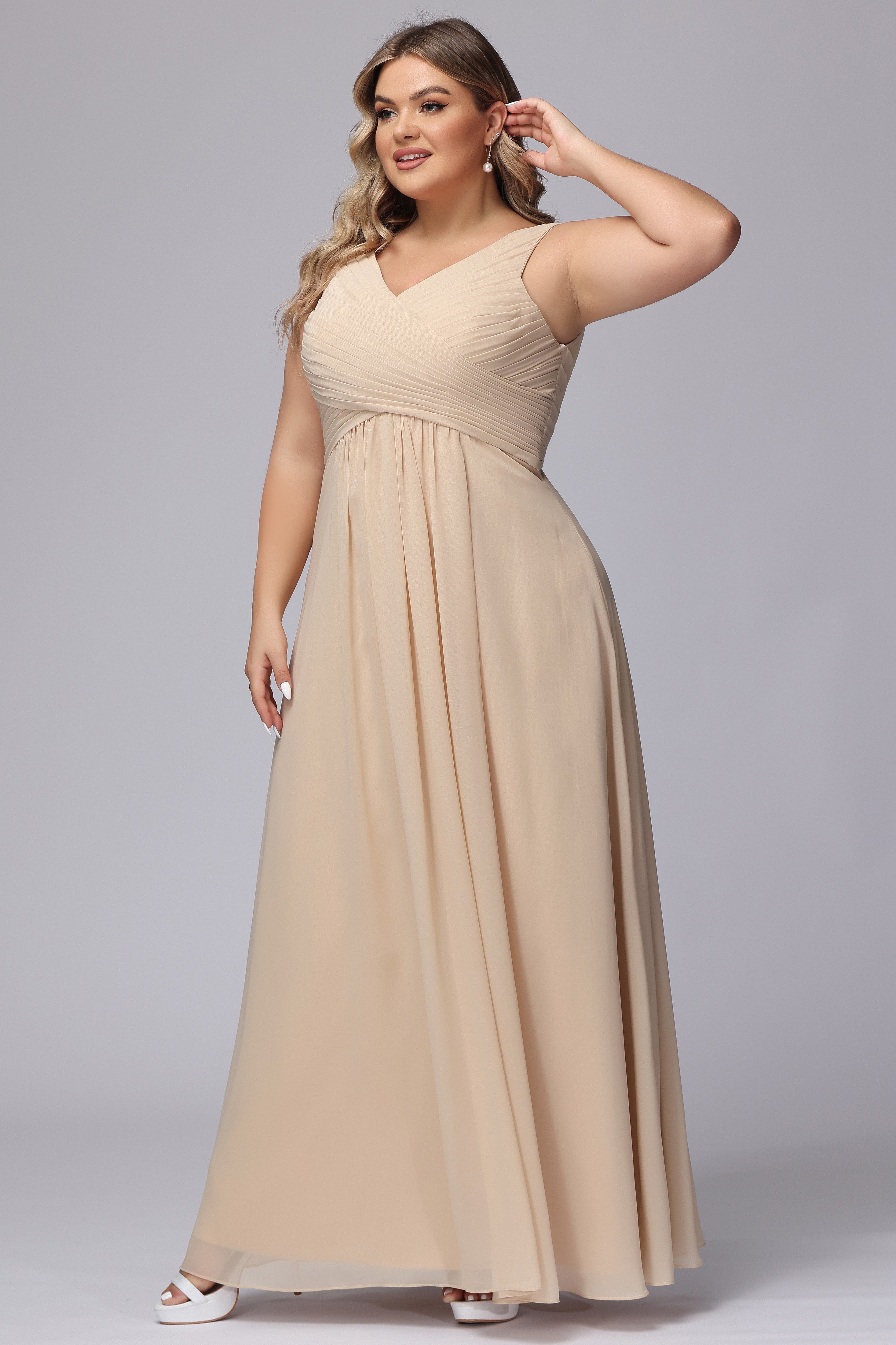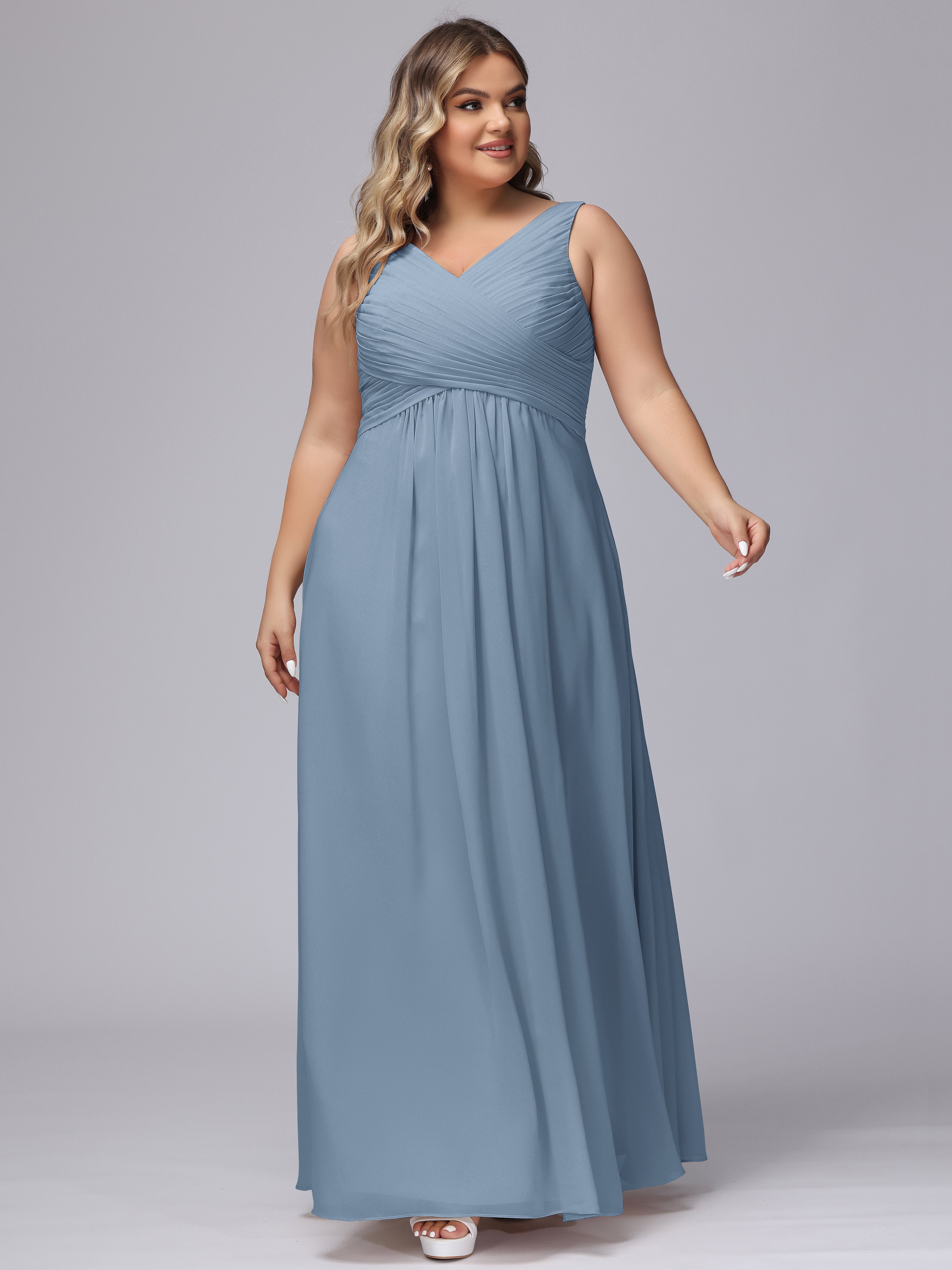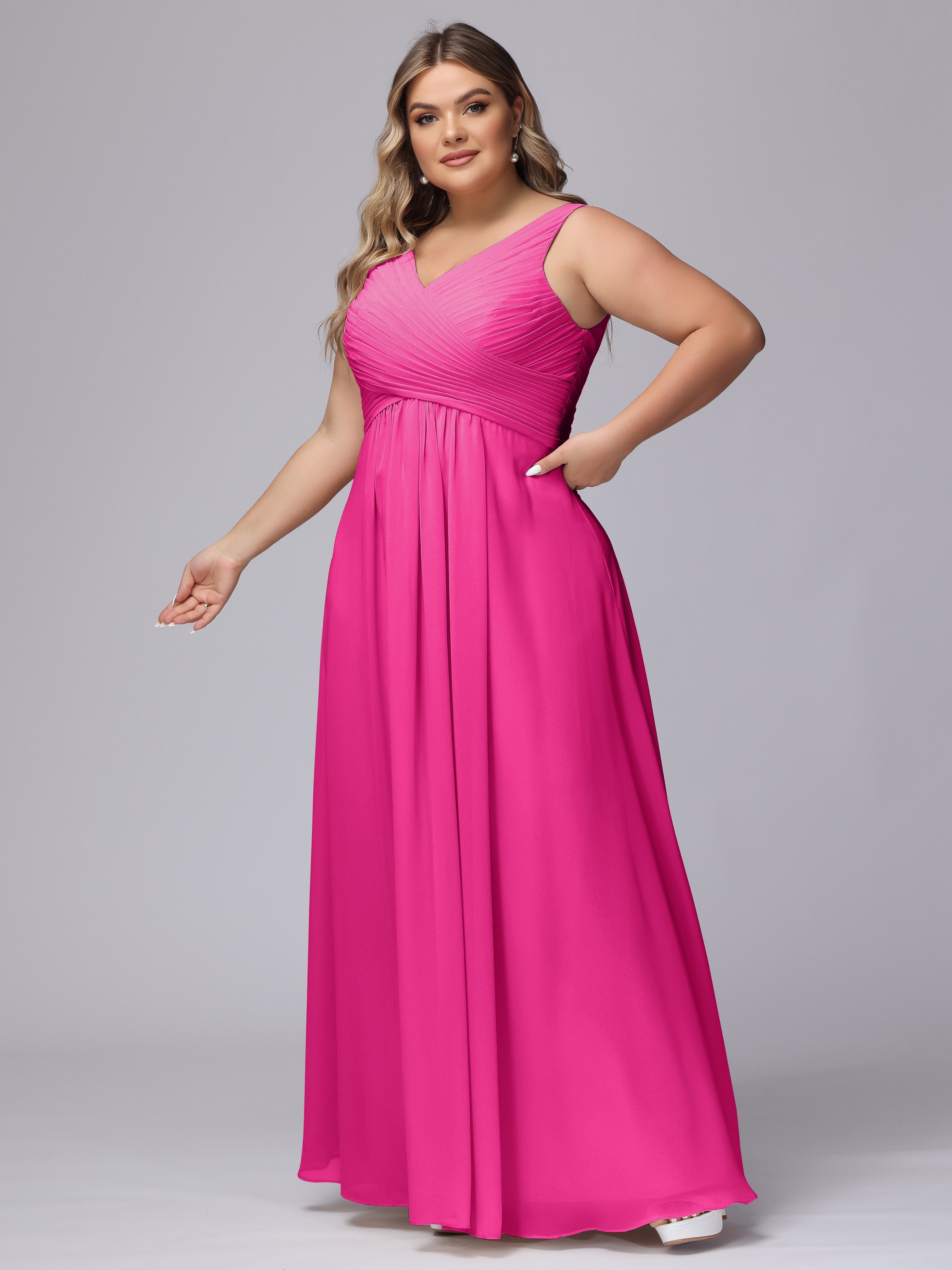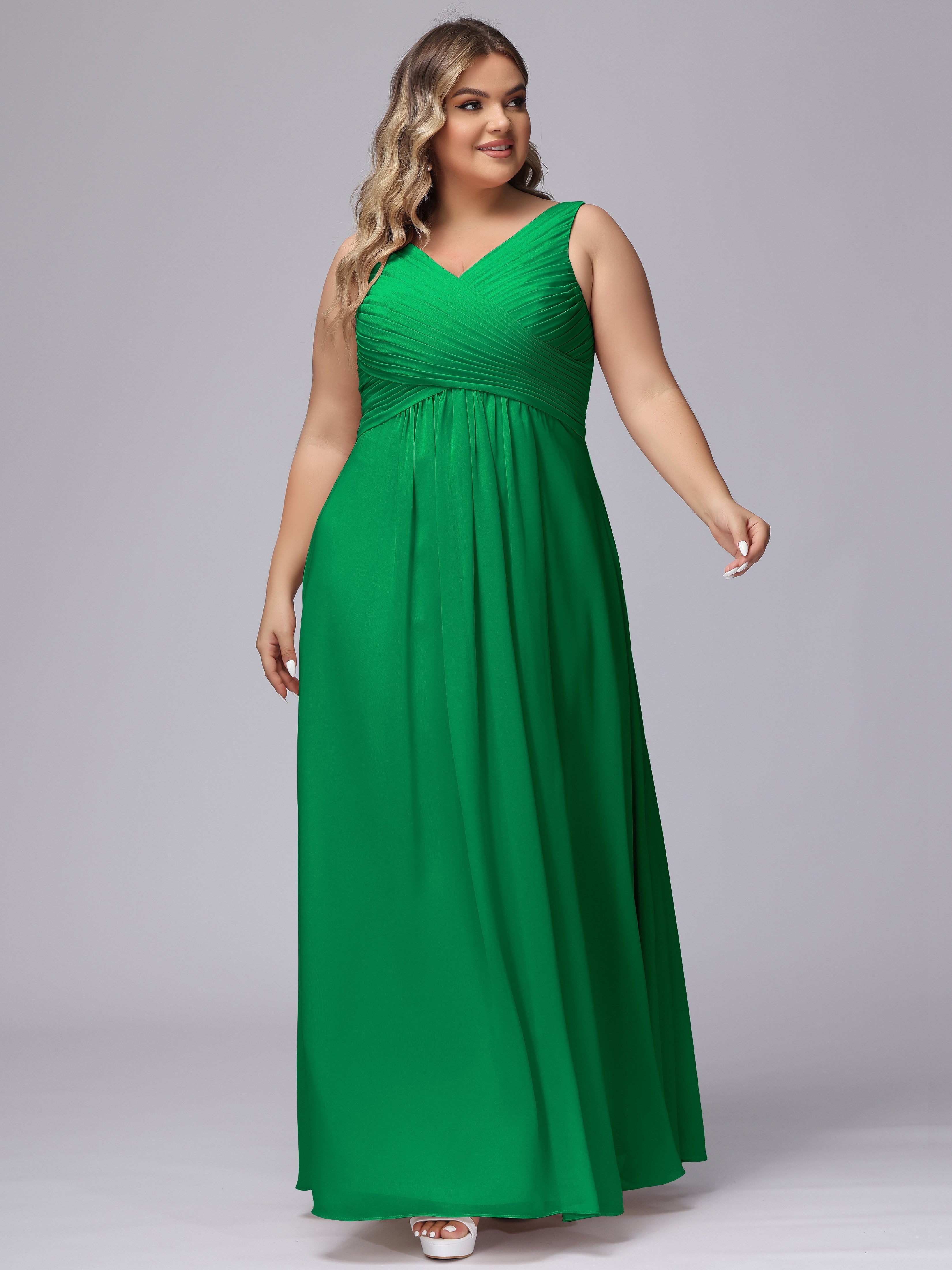 A-line Sleeveless V-back Chiffon Plus Size Bridesmaid Dress