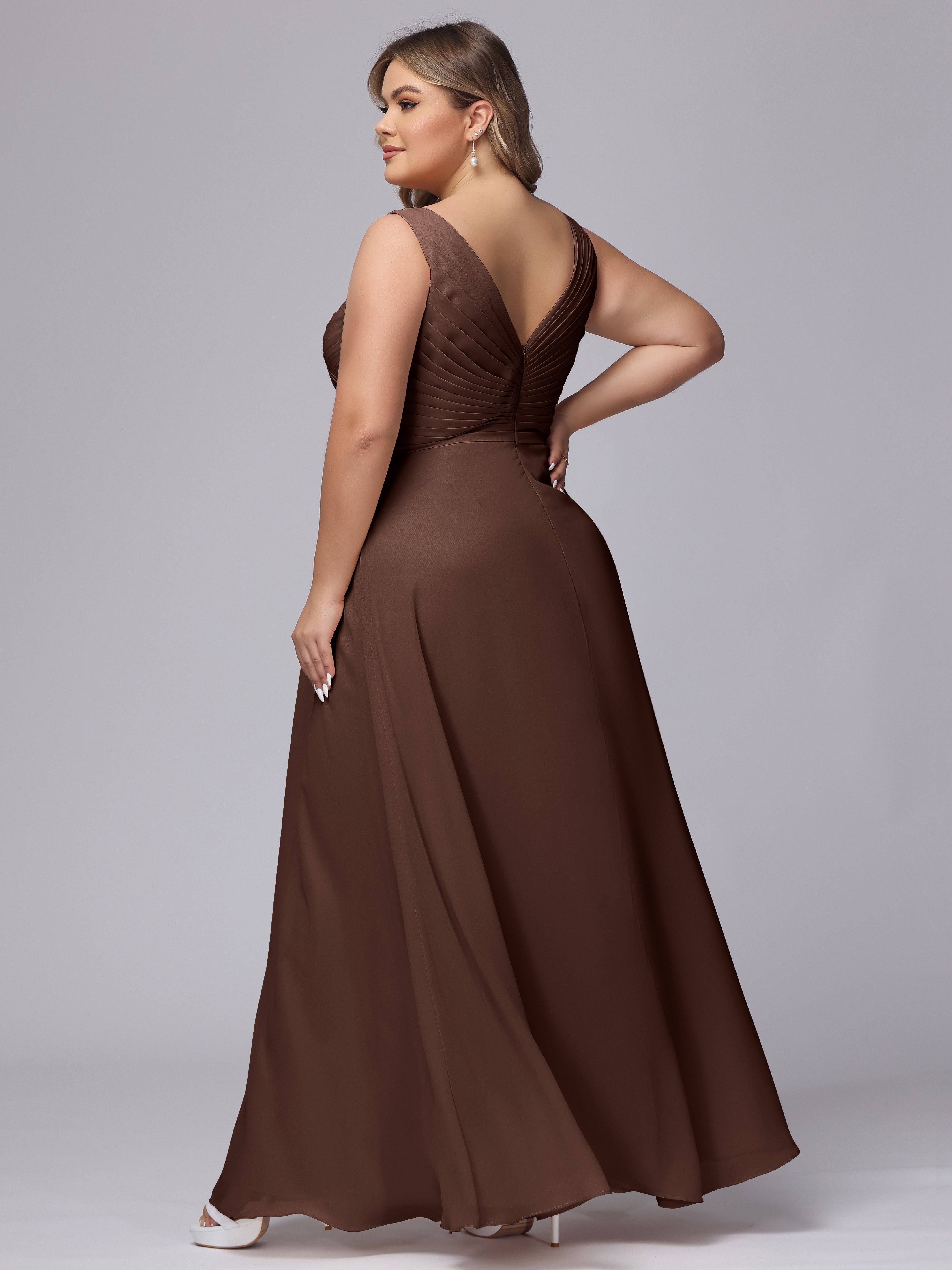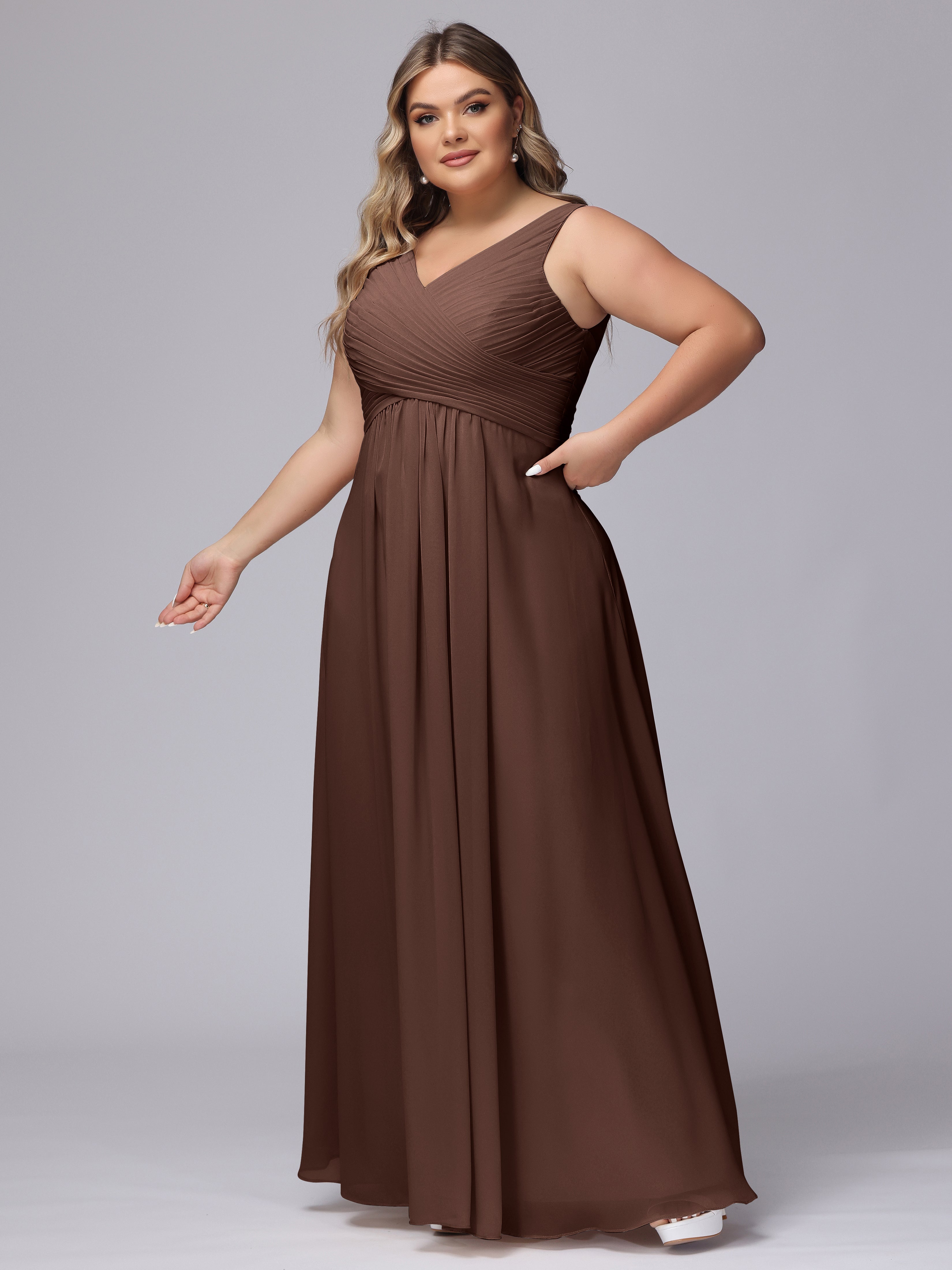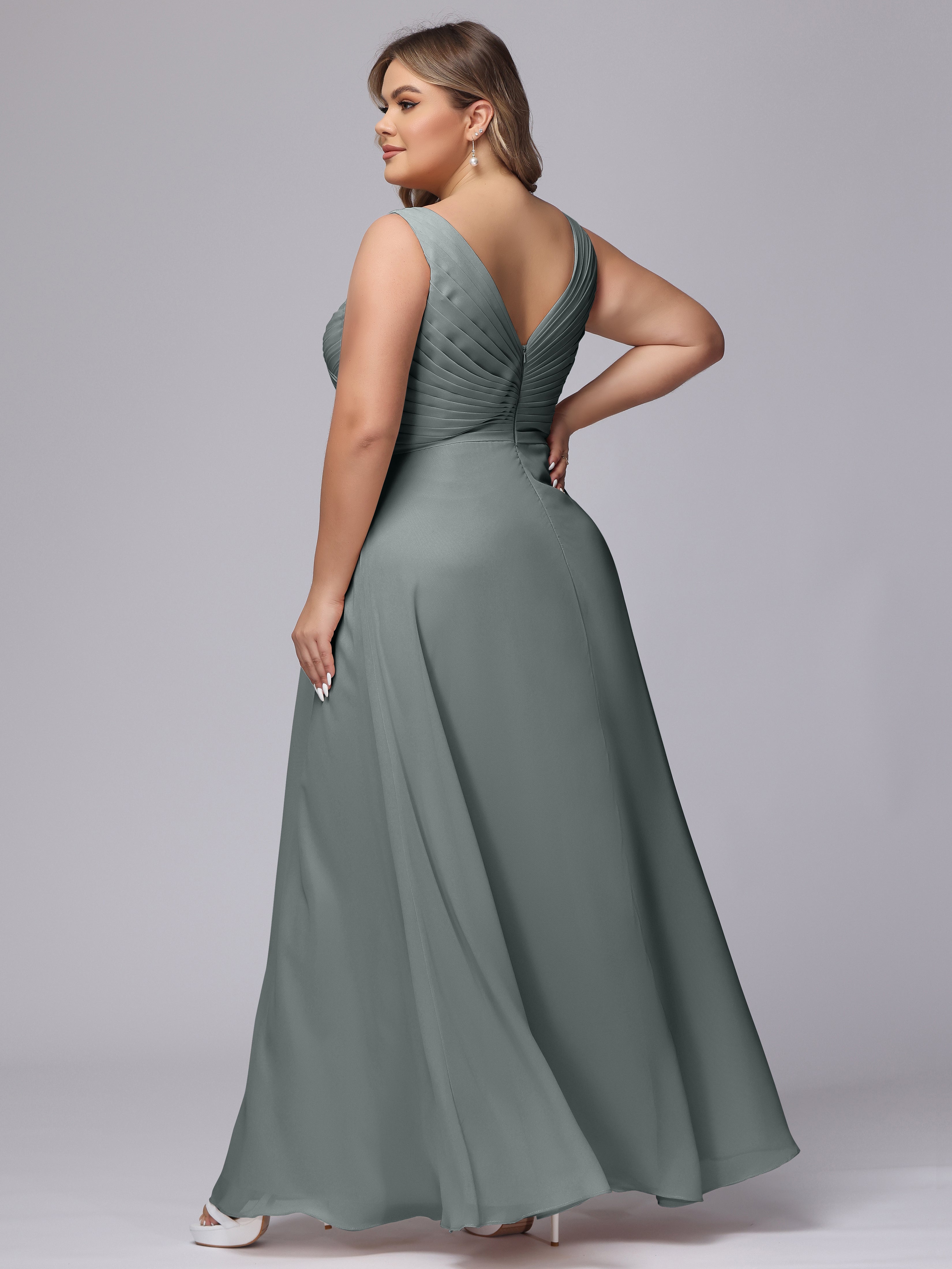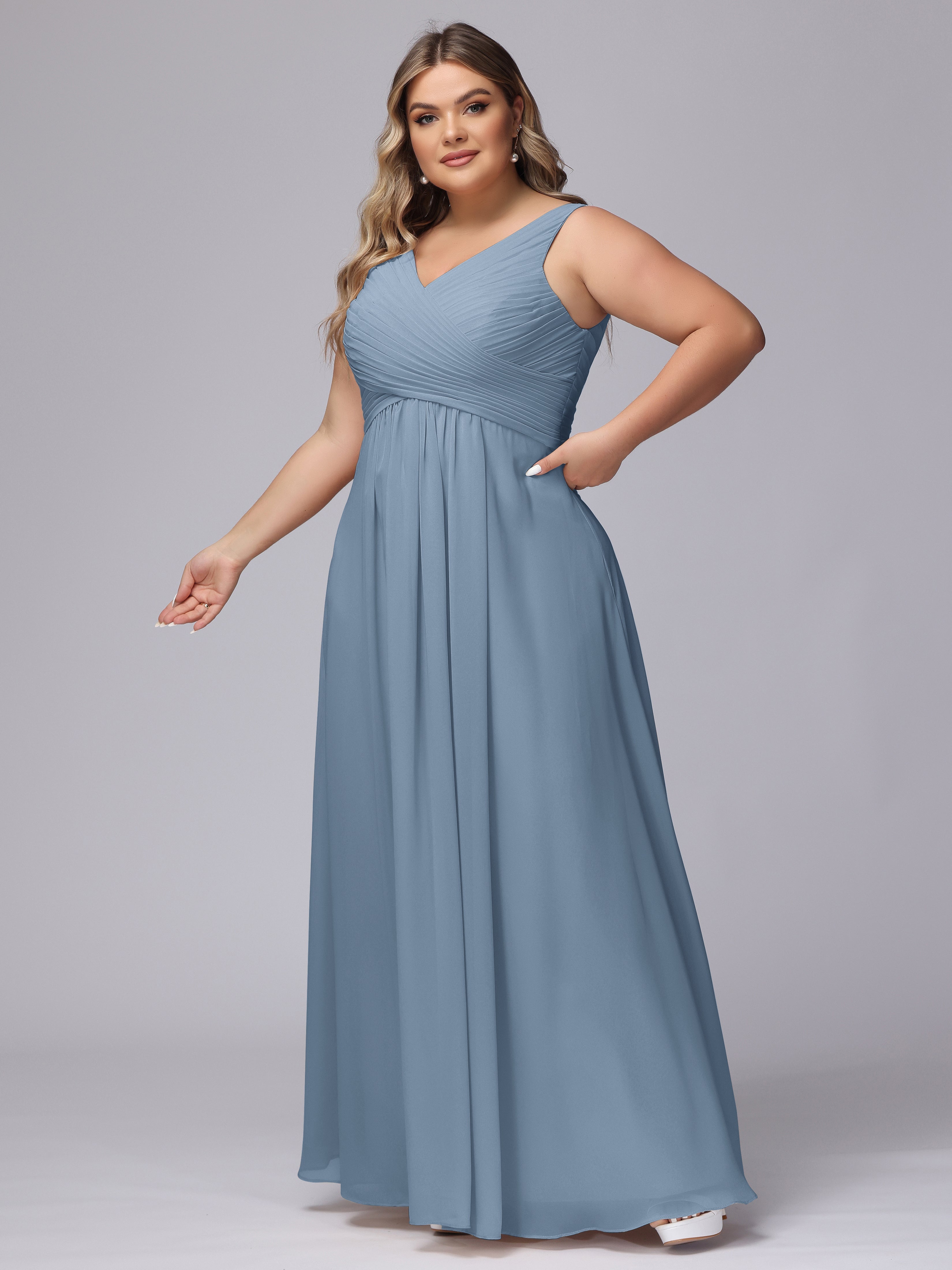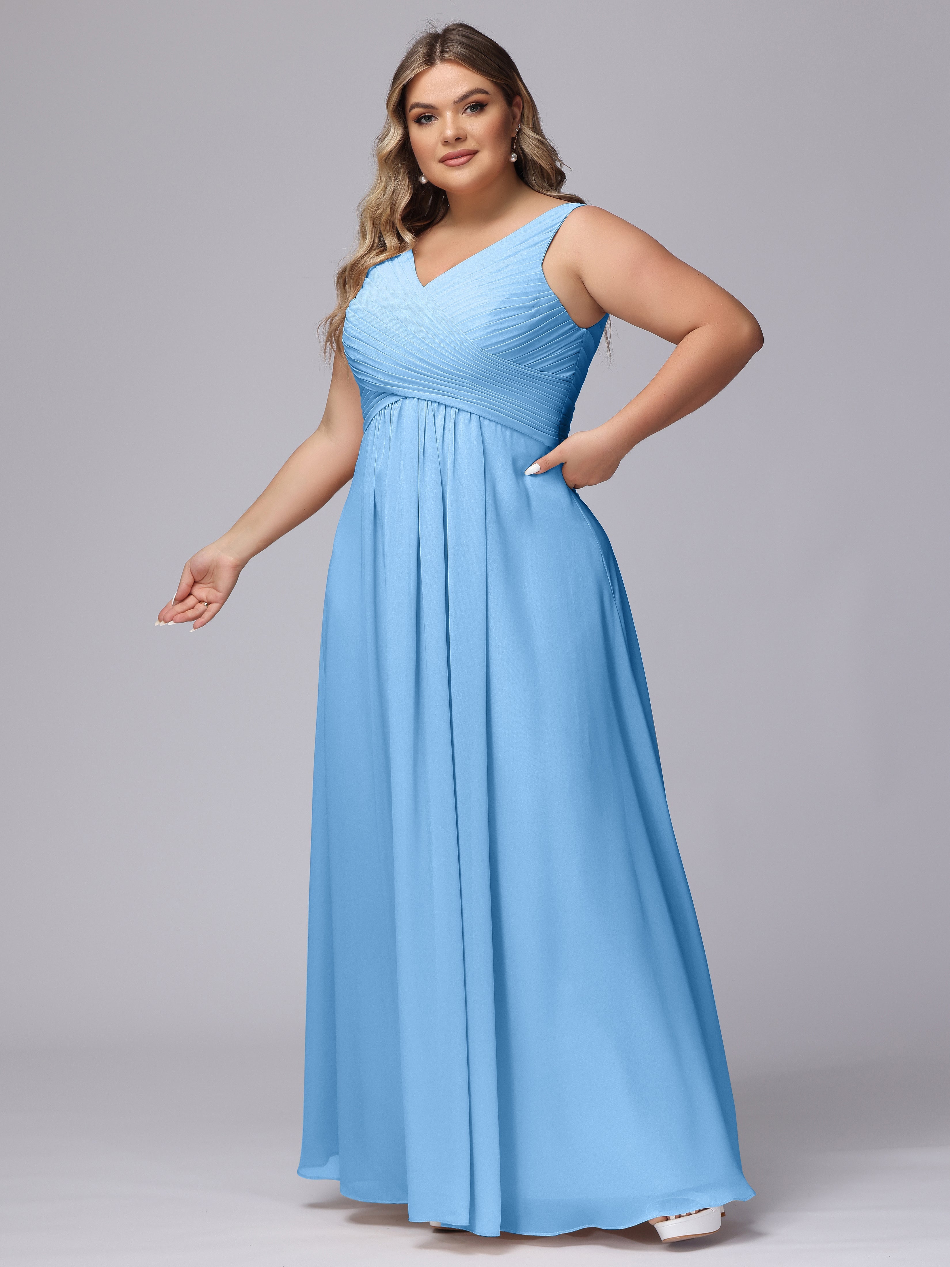 A-line Sleeveless V-back Chiffon Plus Size Bridesmaid Dress