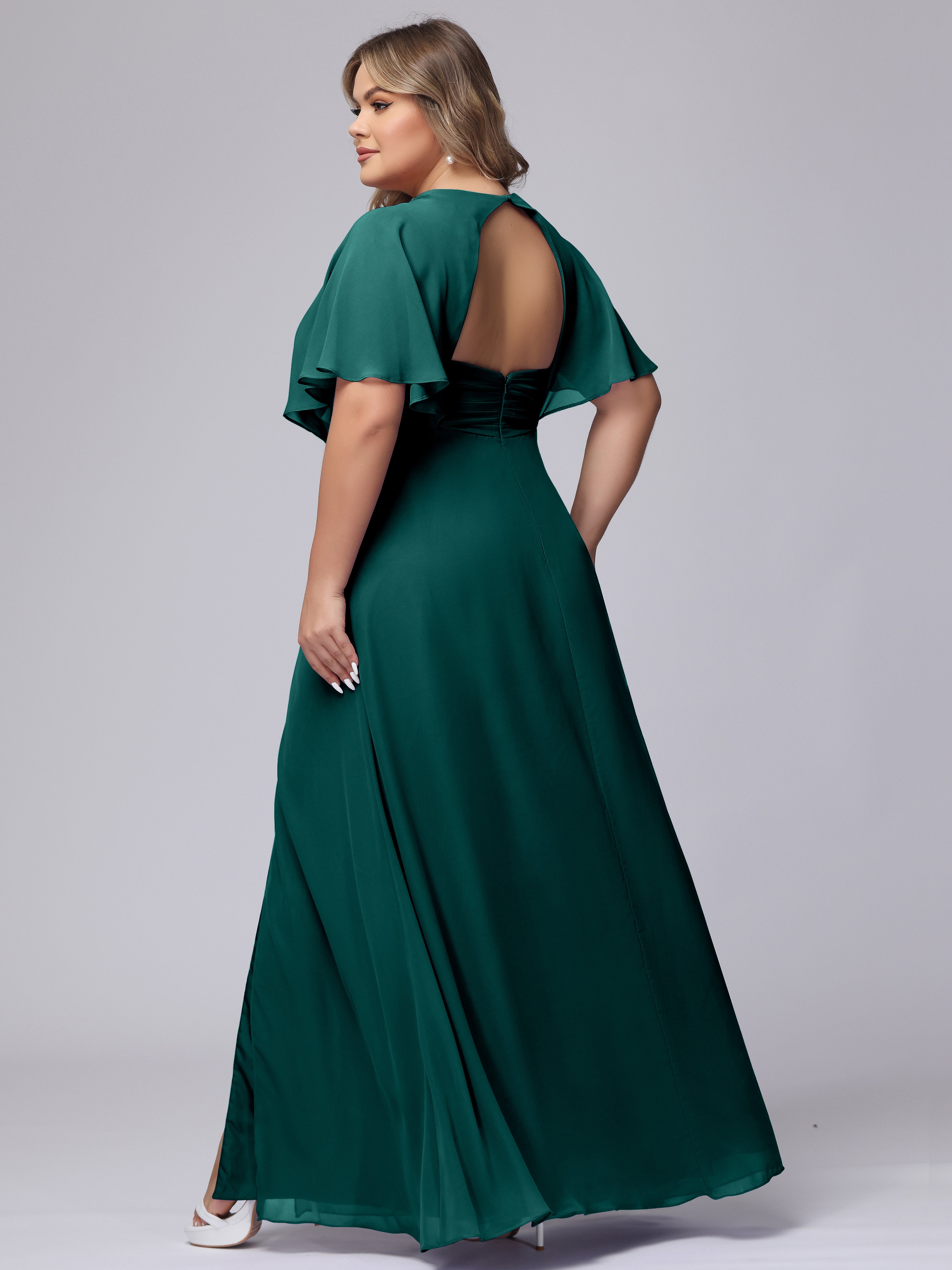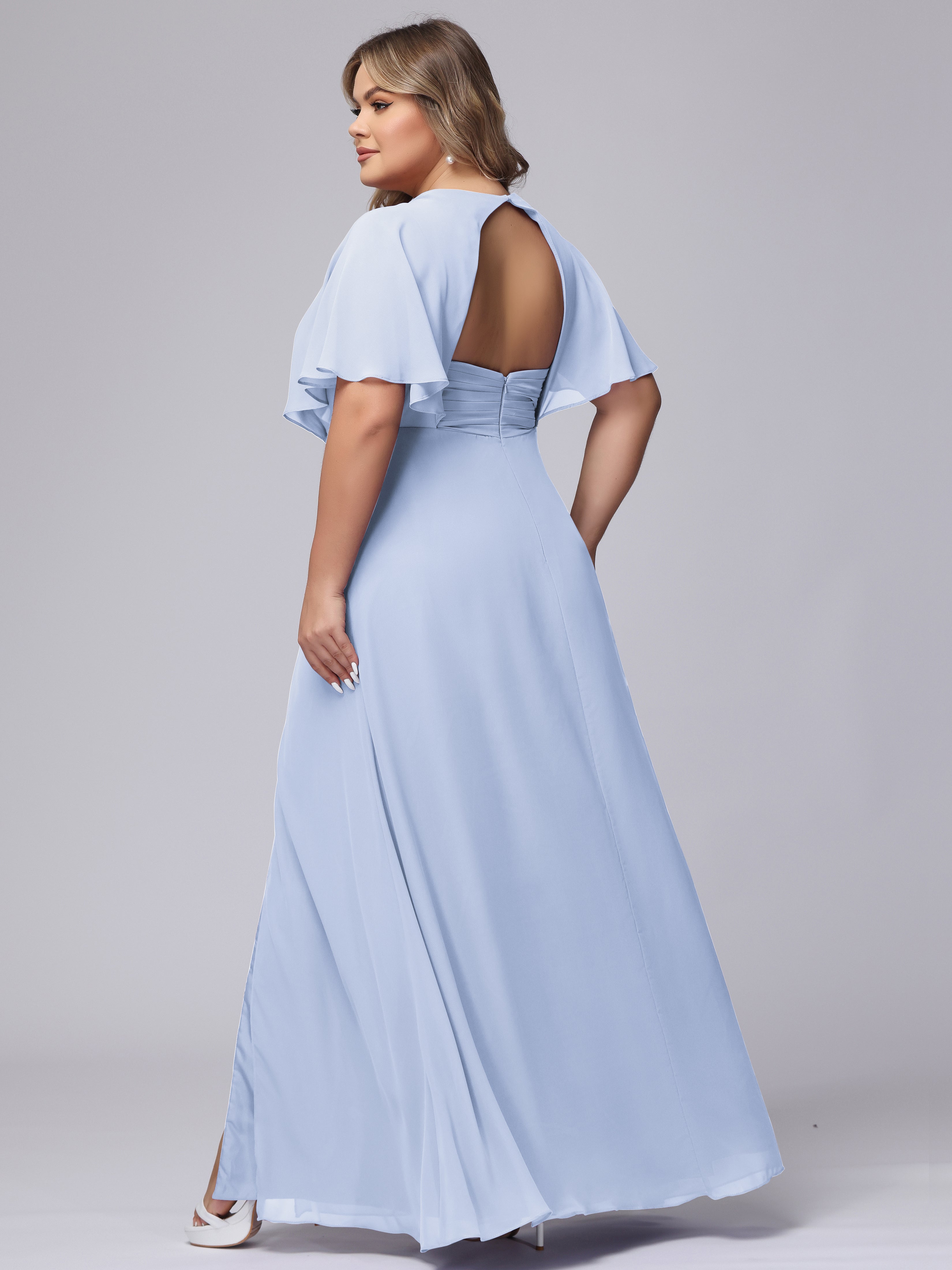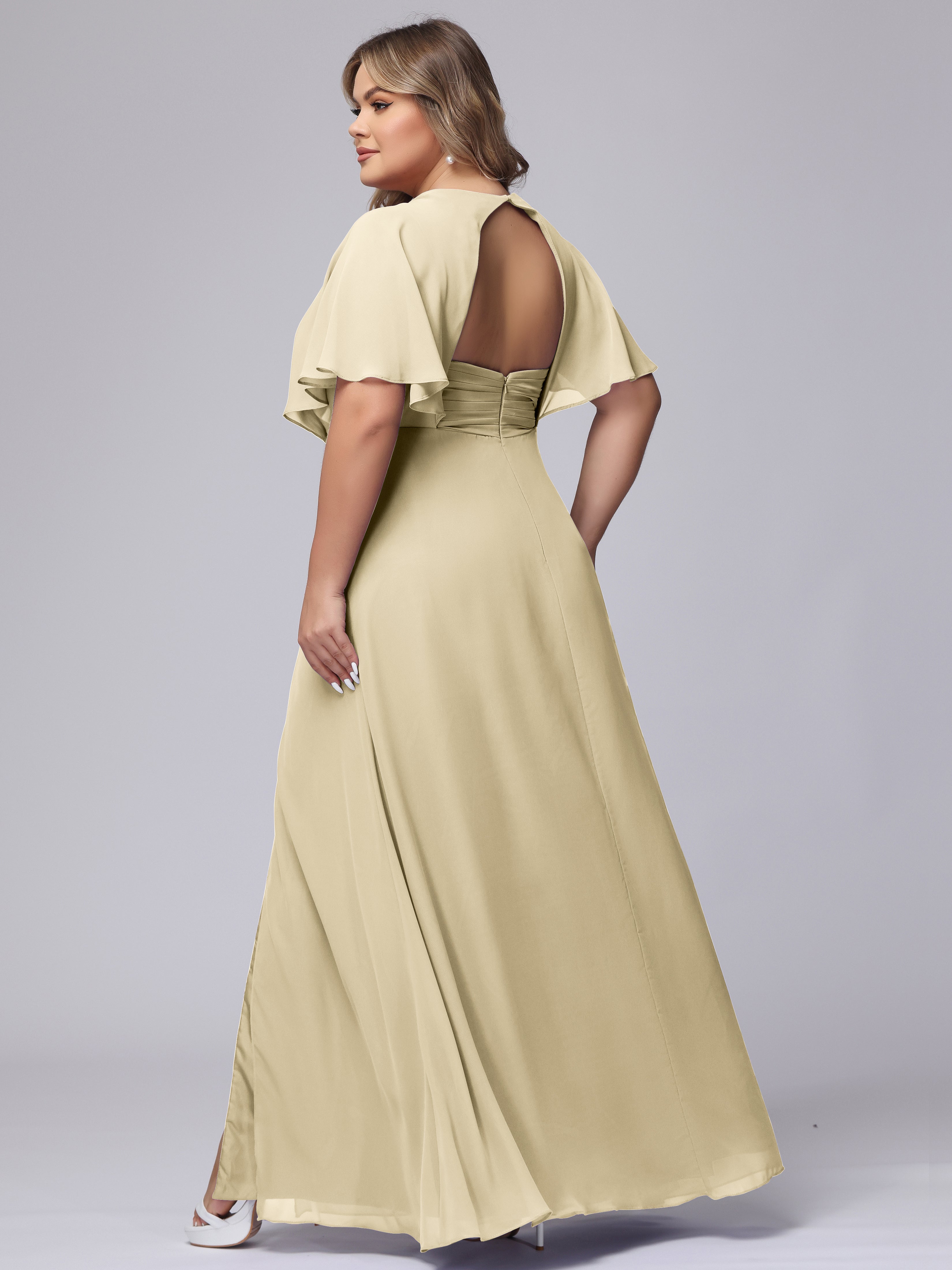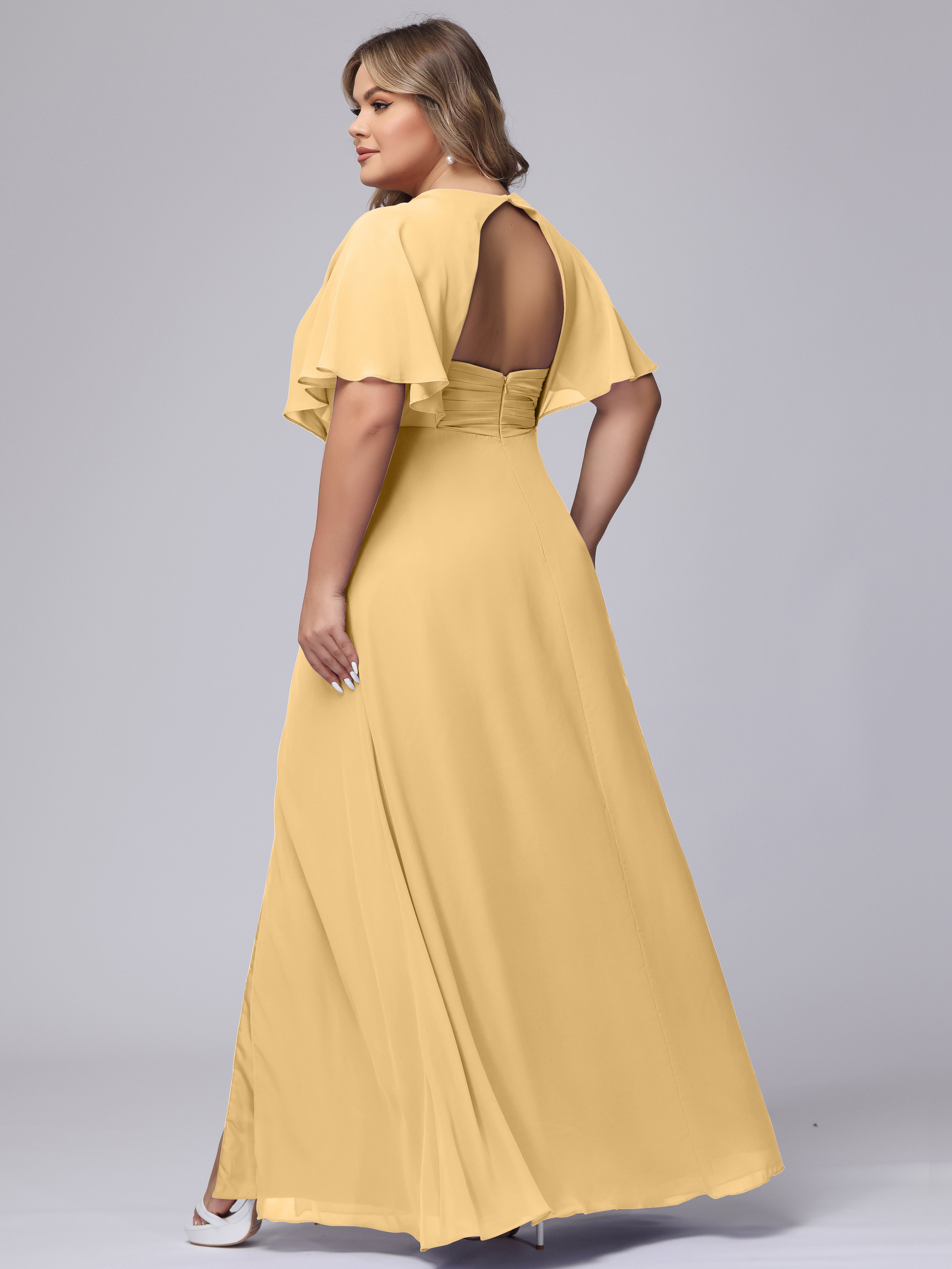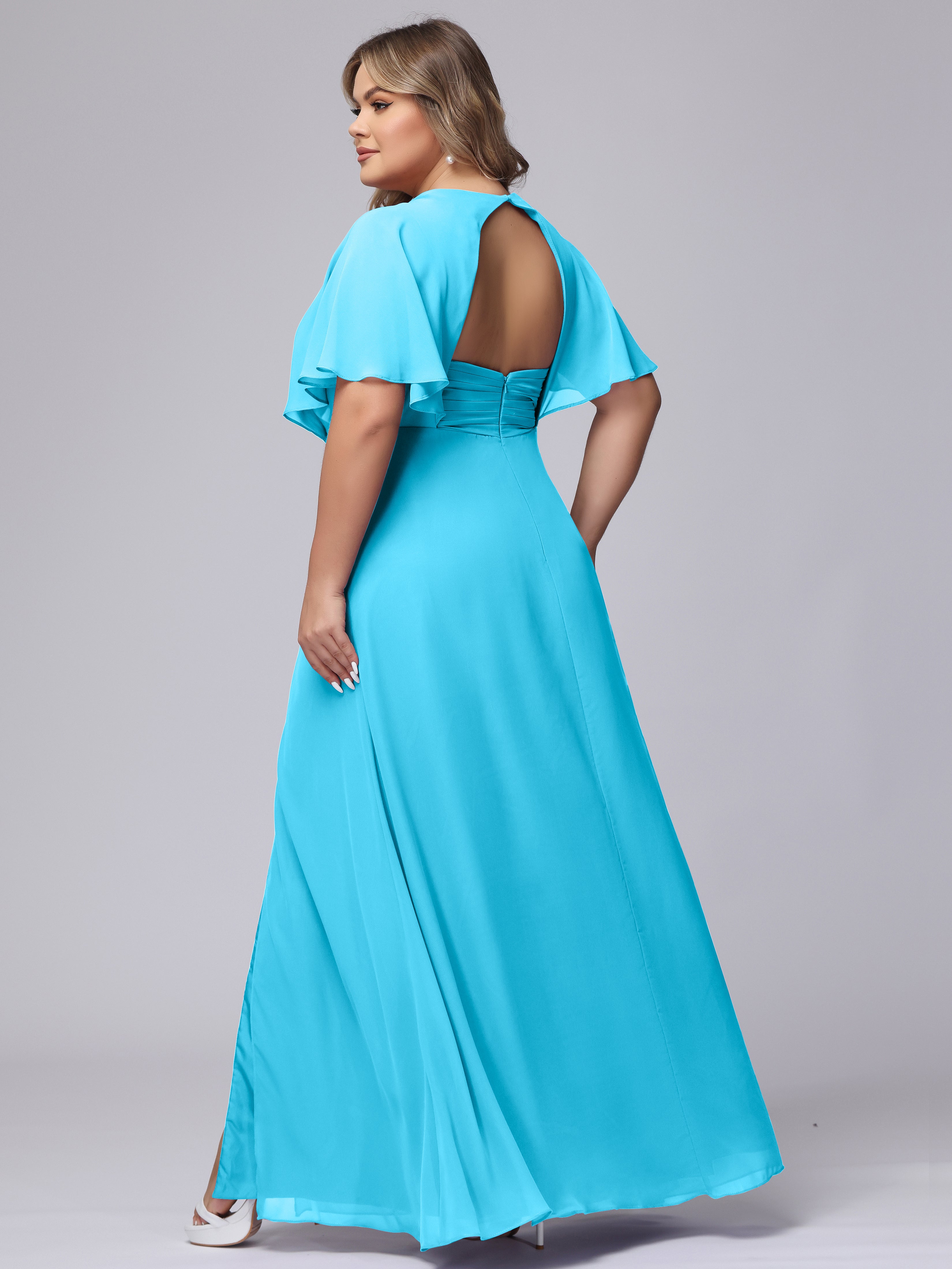 V-Neck Chiffon Short Sleeves Plus Size Bridesmaid Dresses