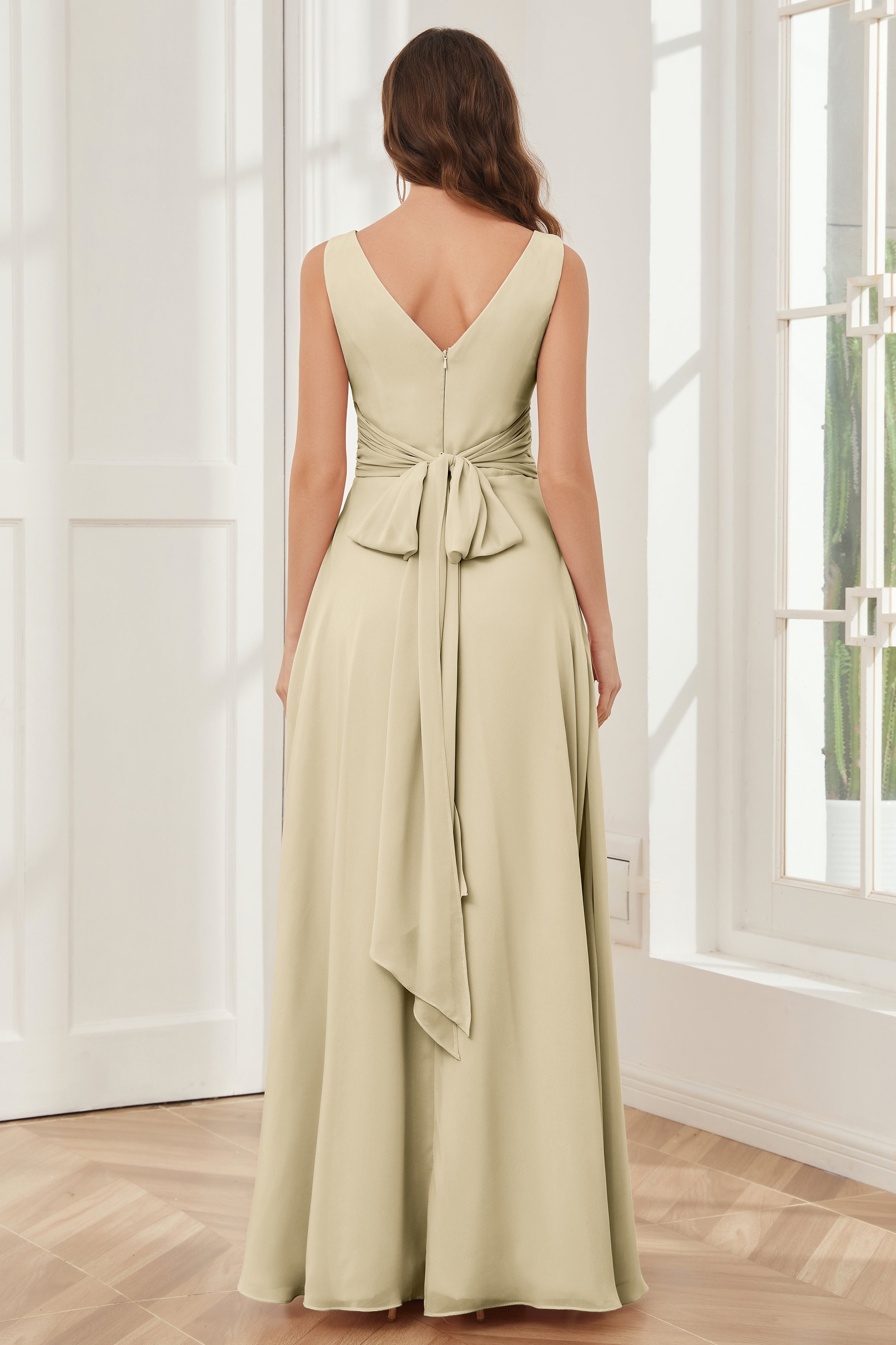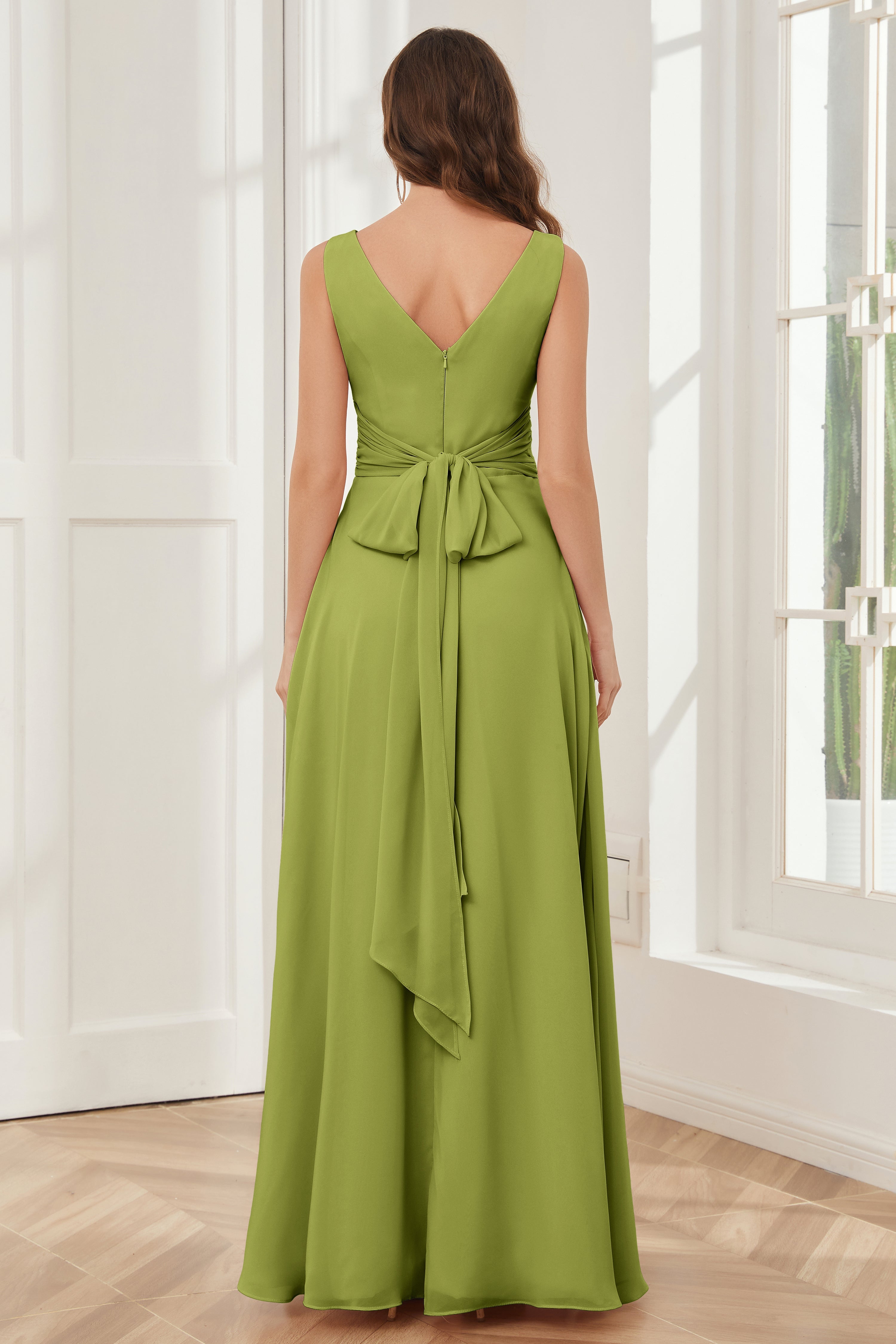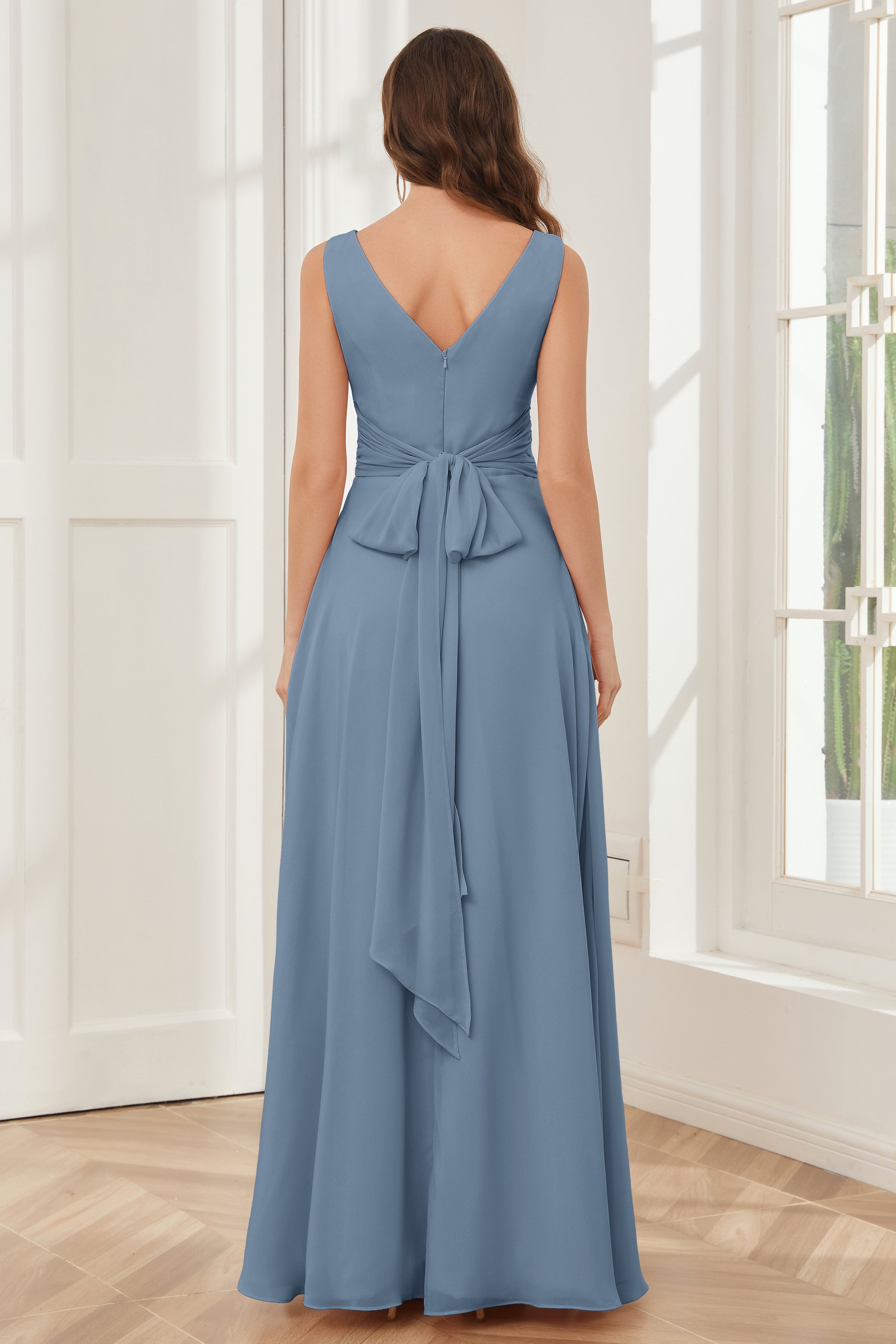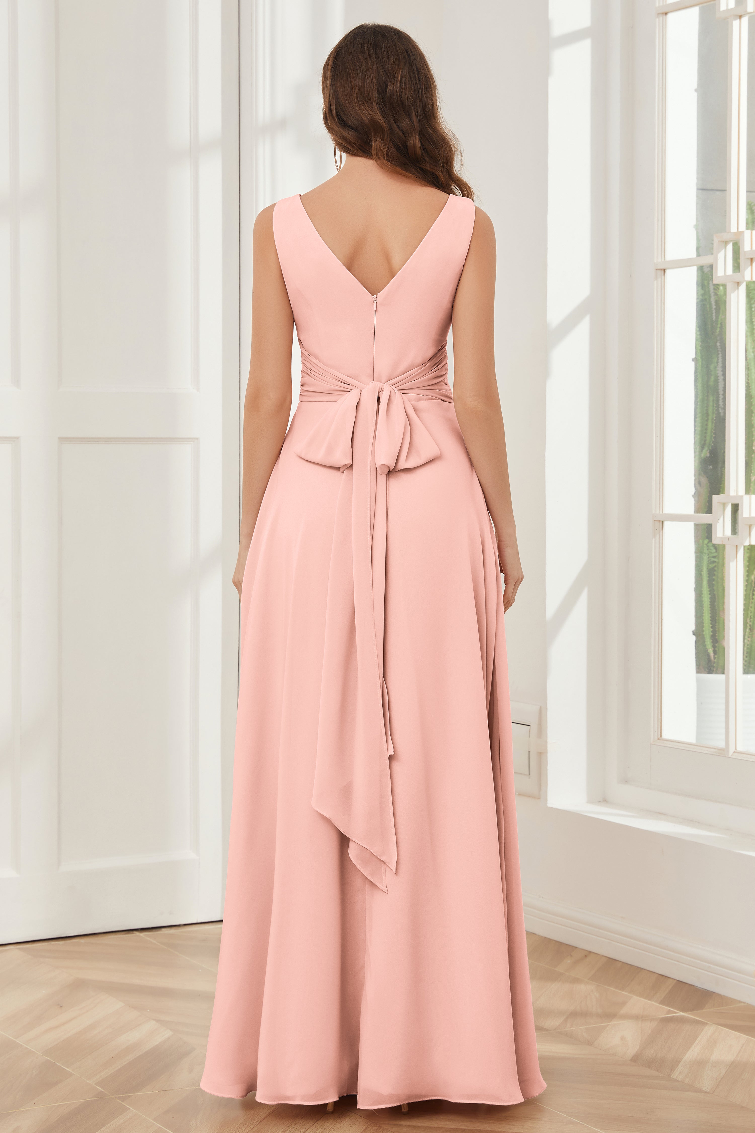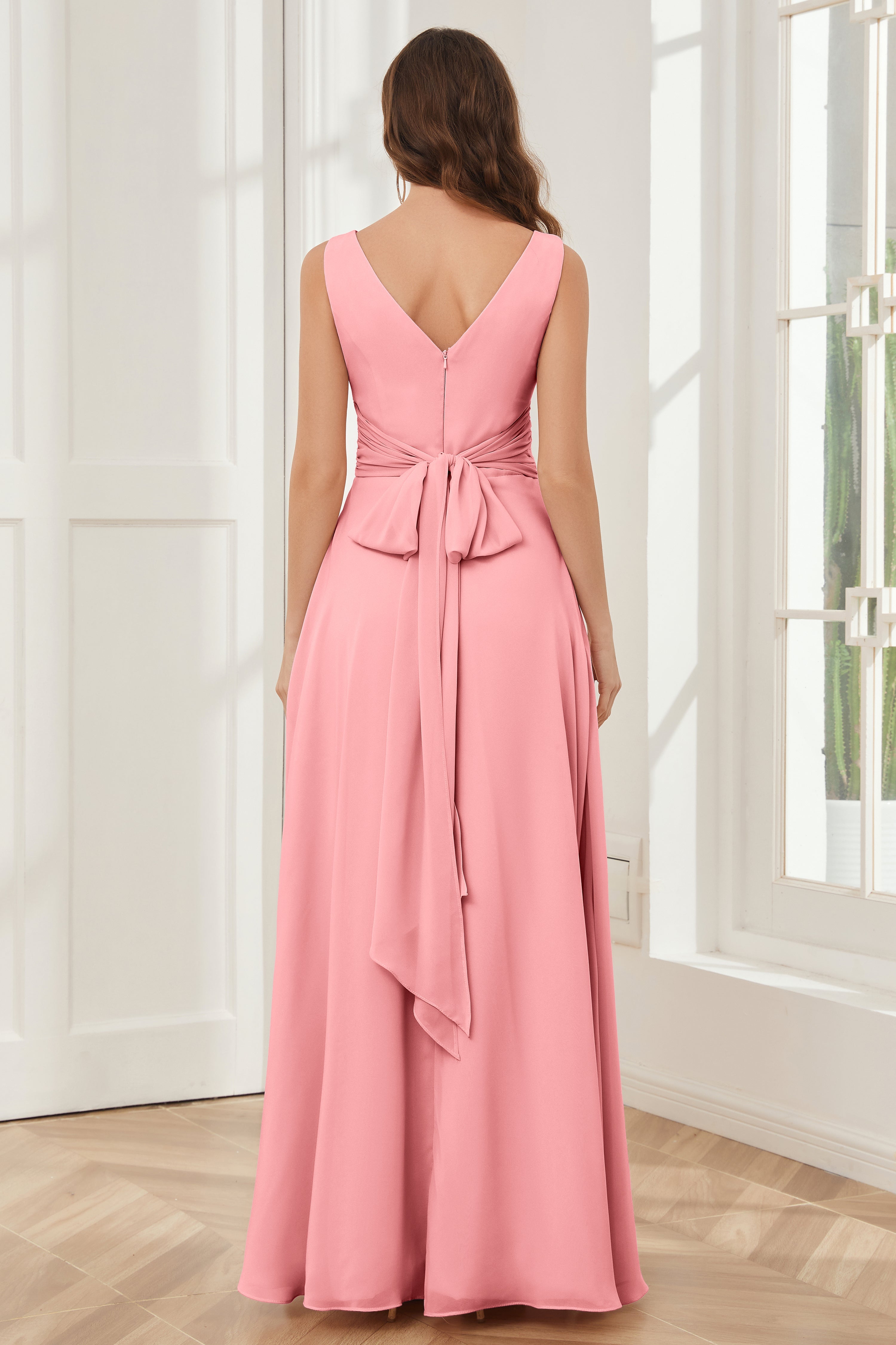 V-neck Sleeveless Chiffon Bridesmaid Dresses with Pockets