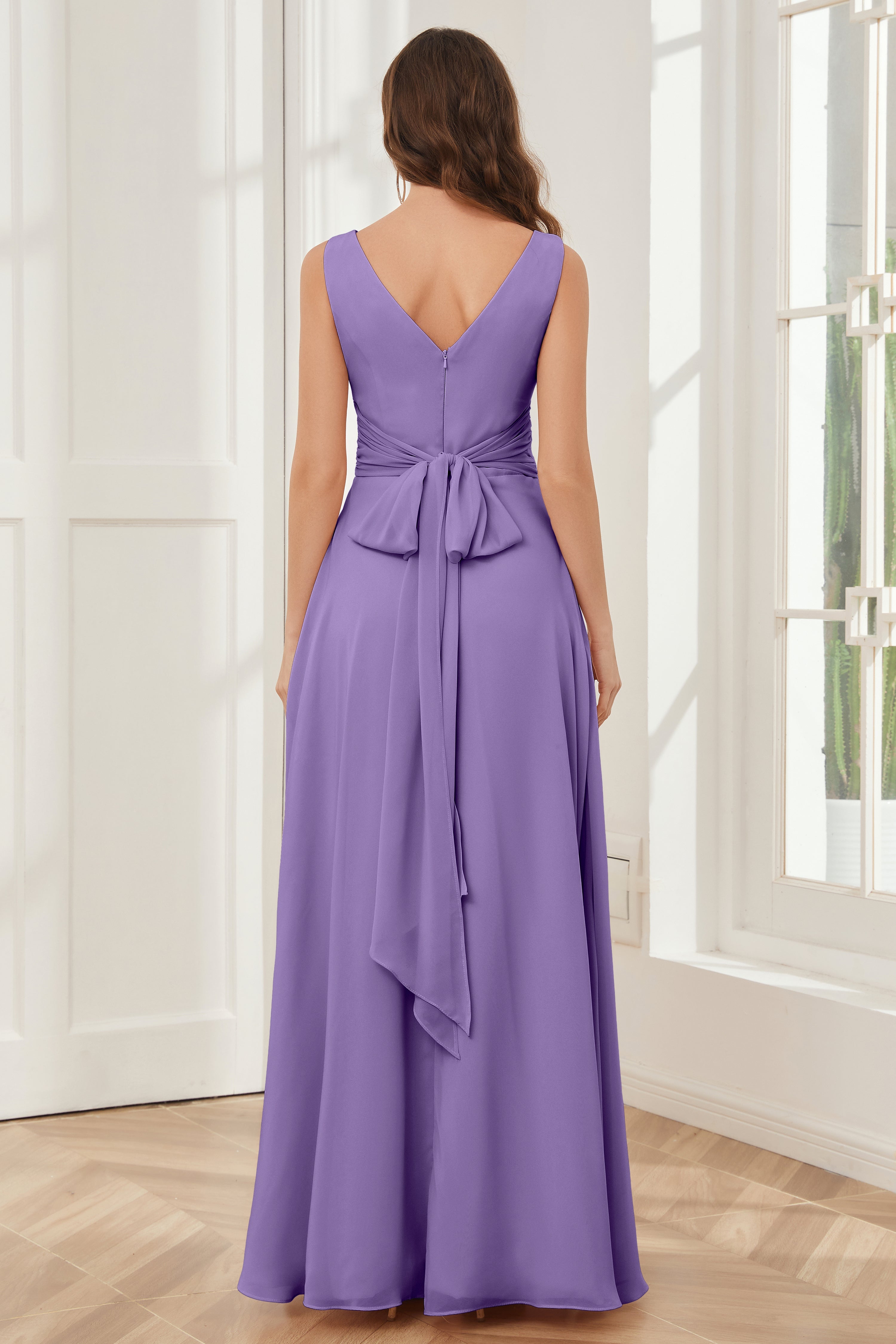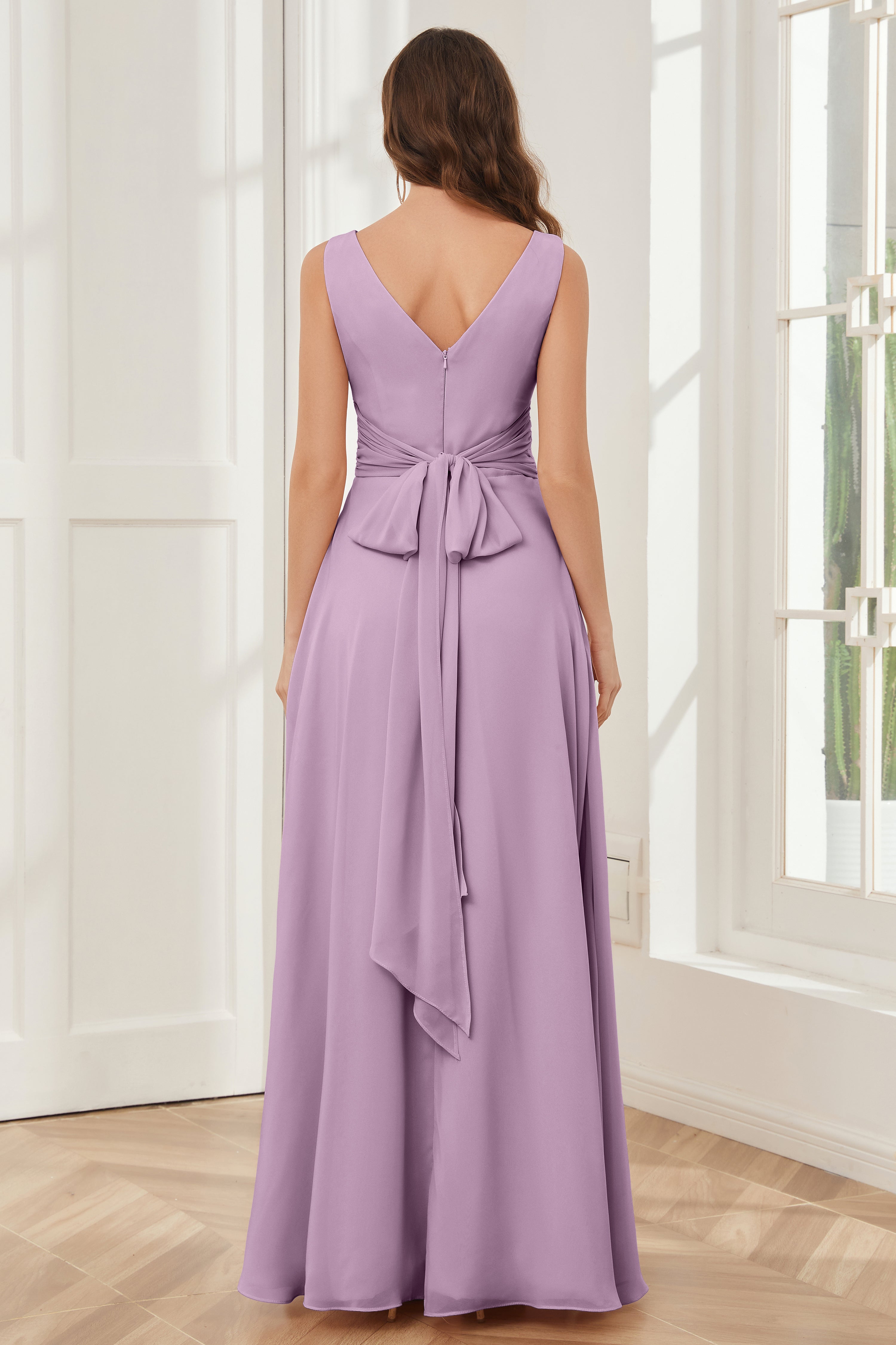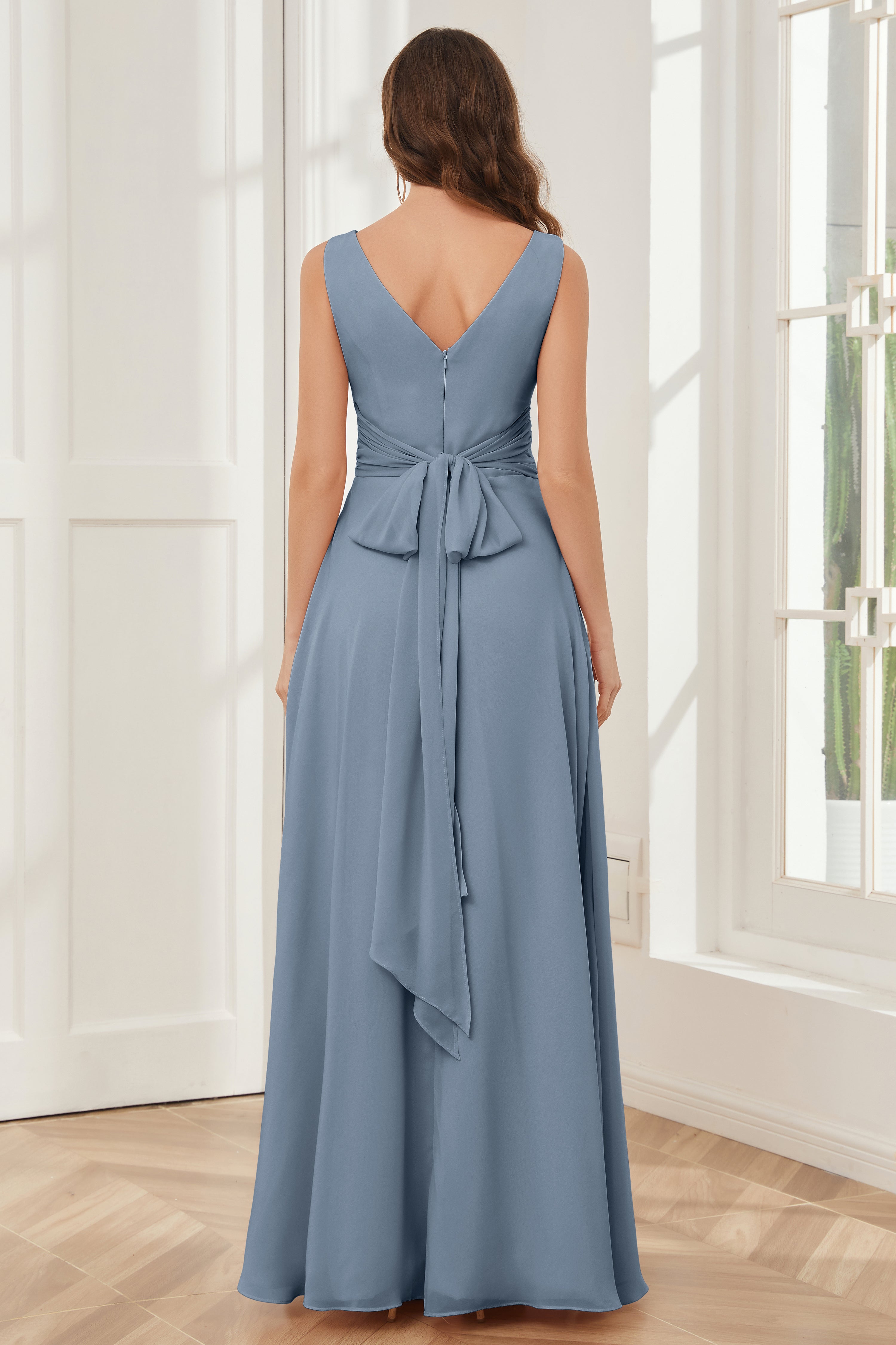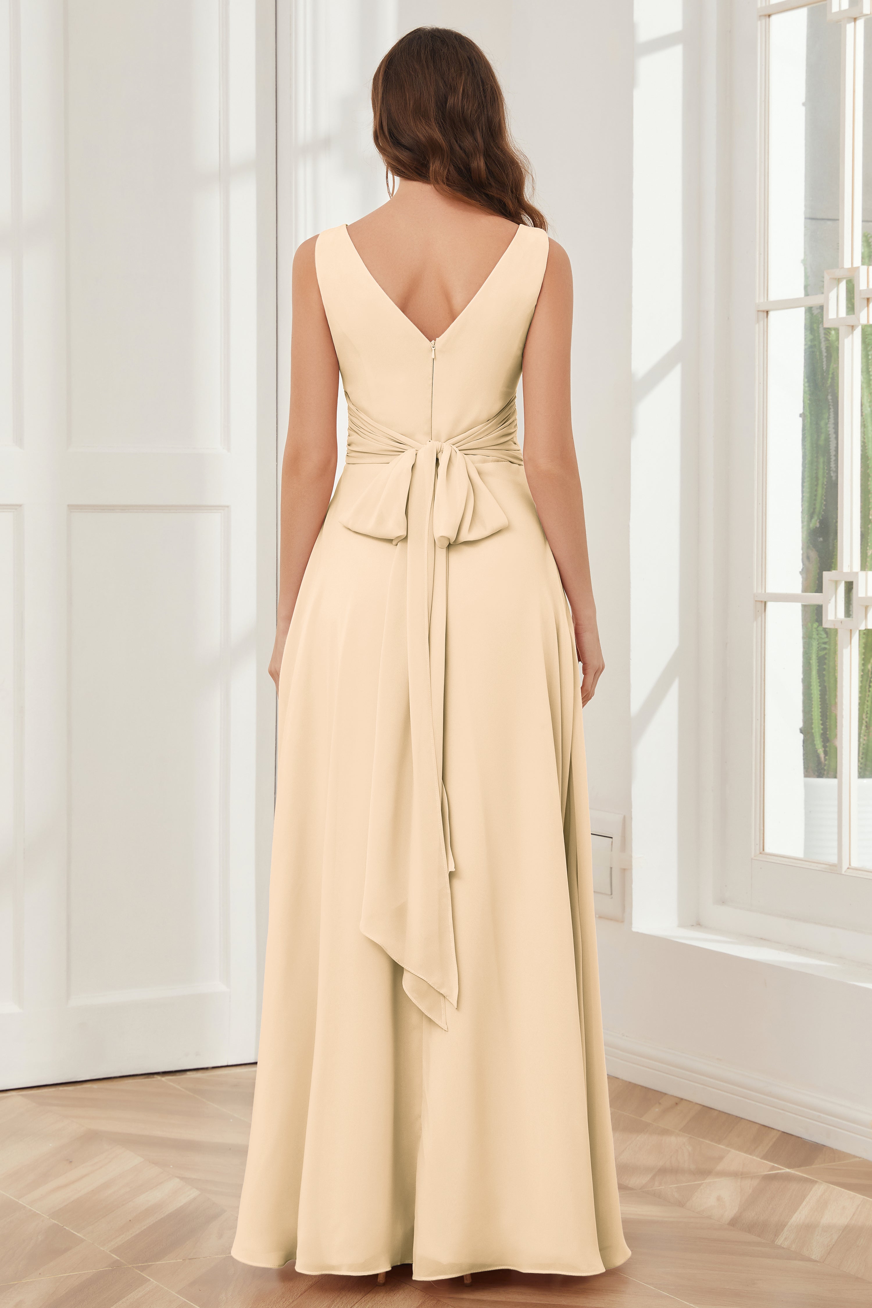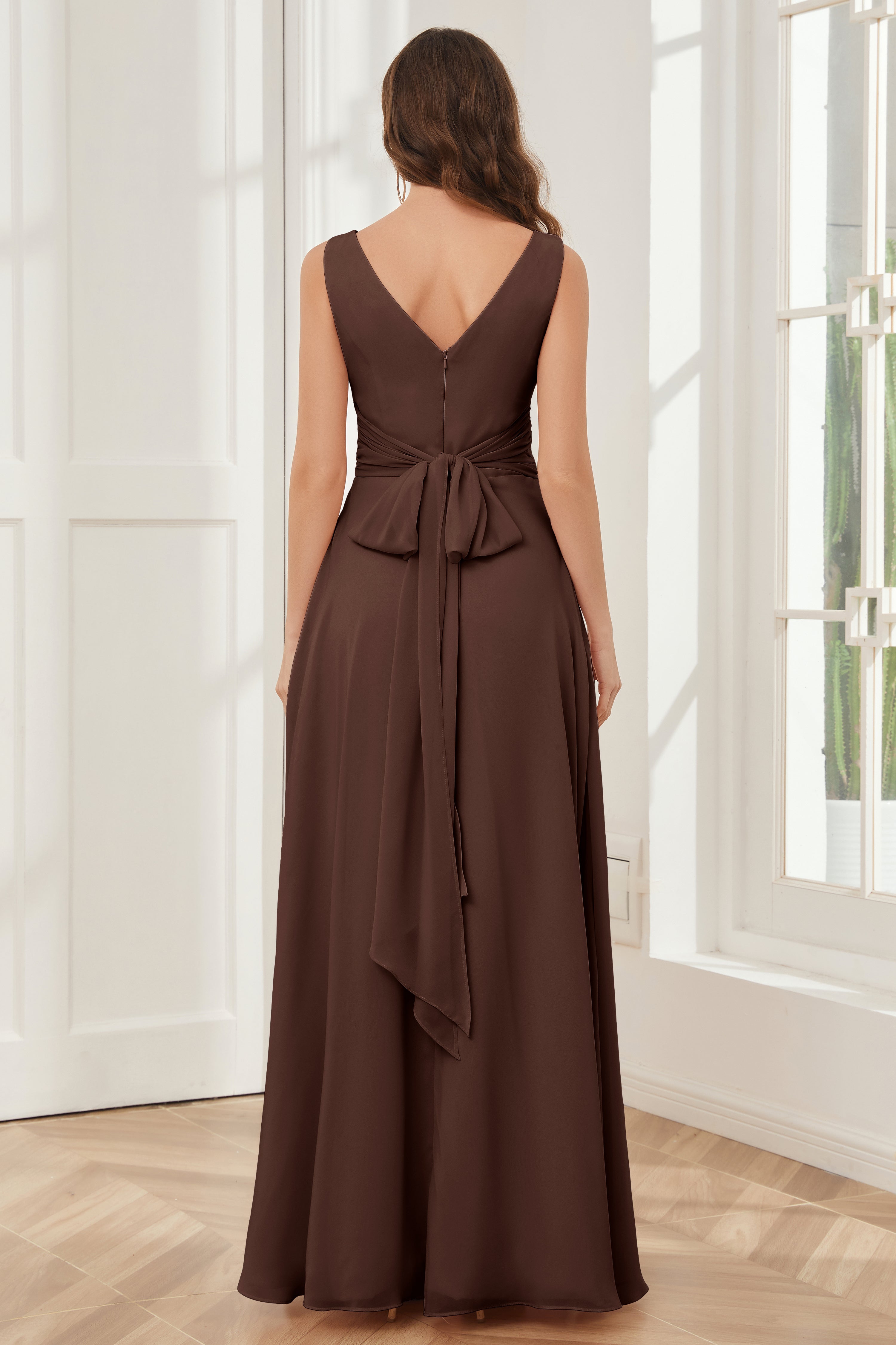 V-neck Sleeveless Chiffon Bridesmaid Dresses with Pockets