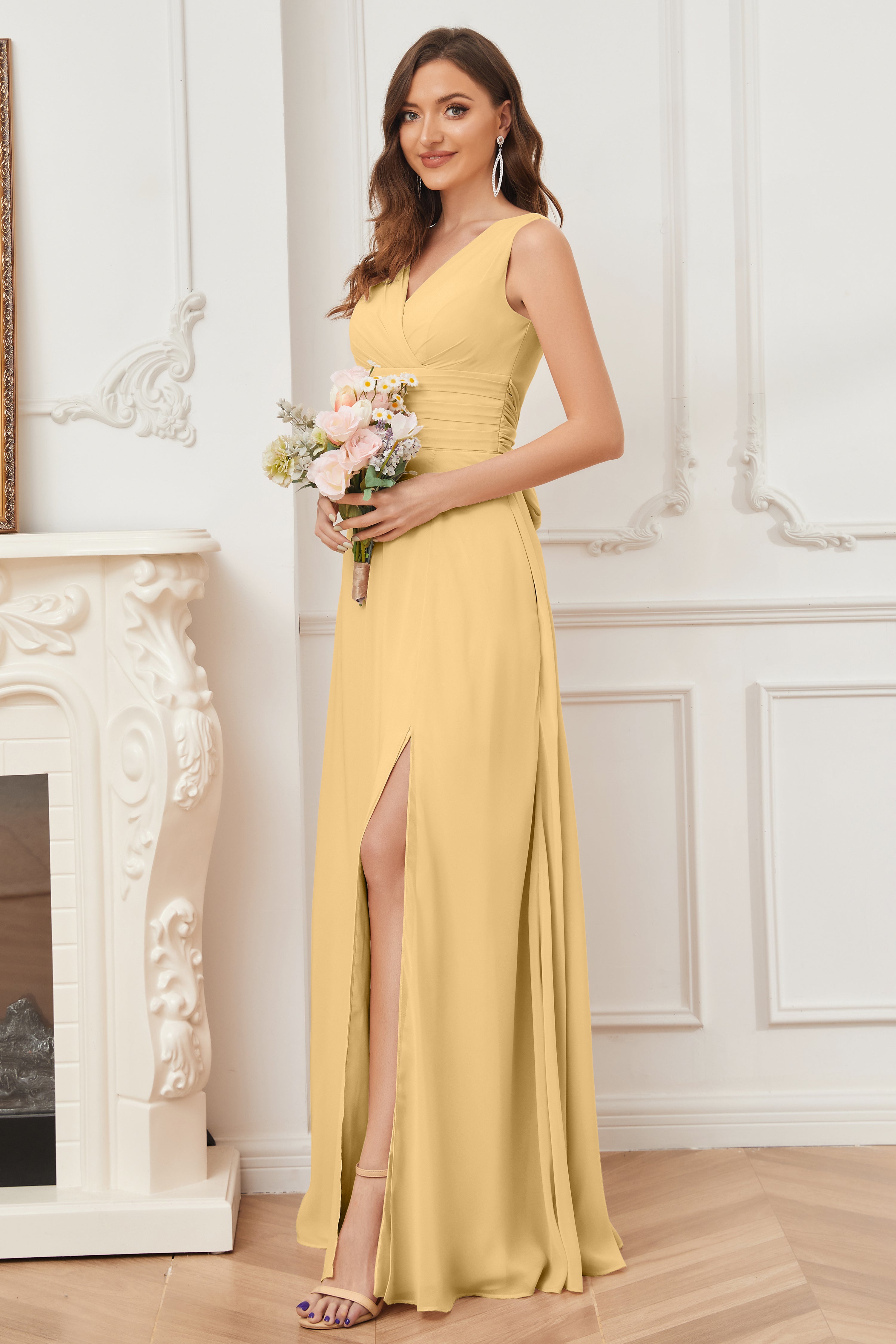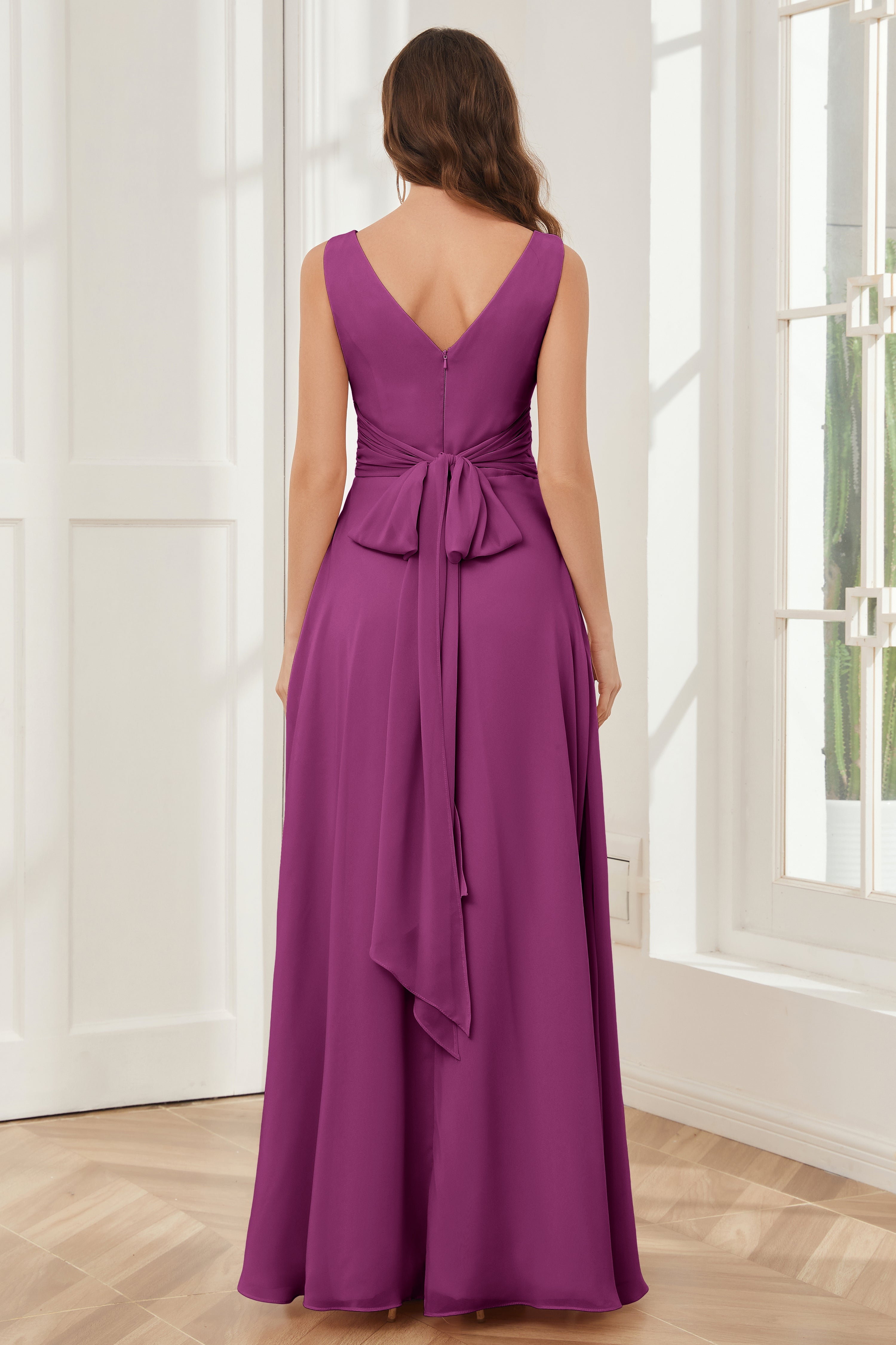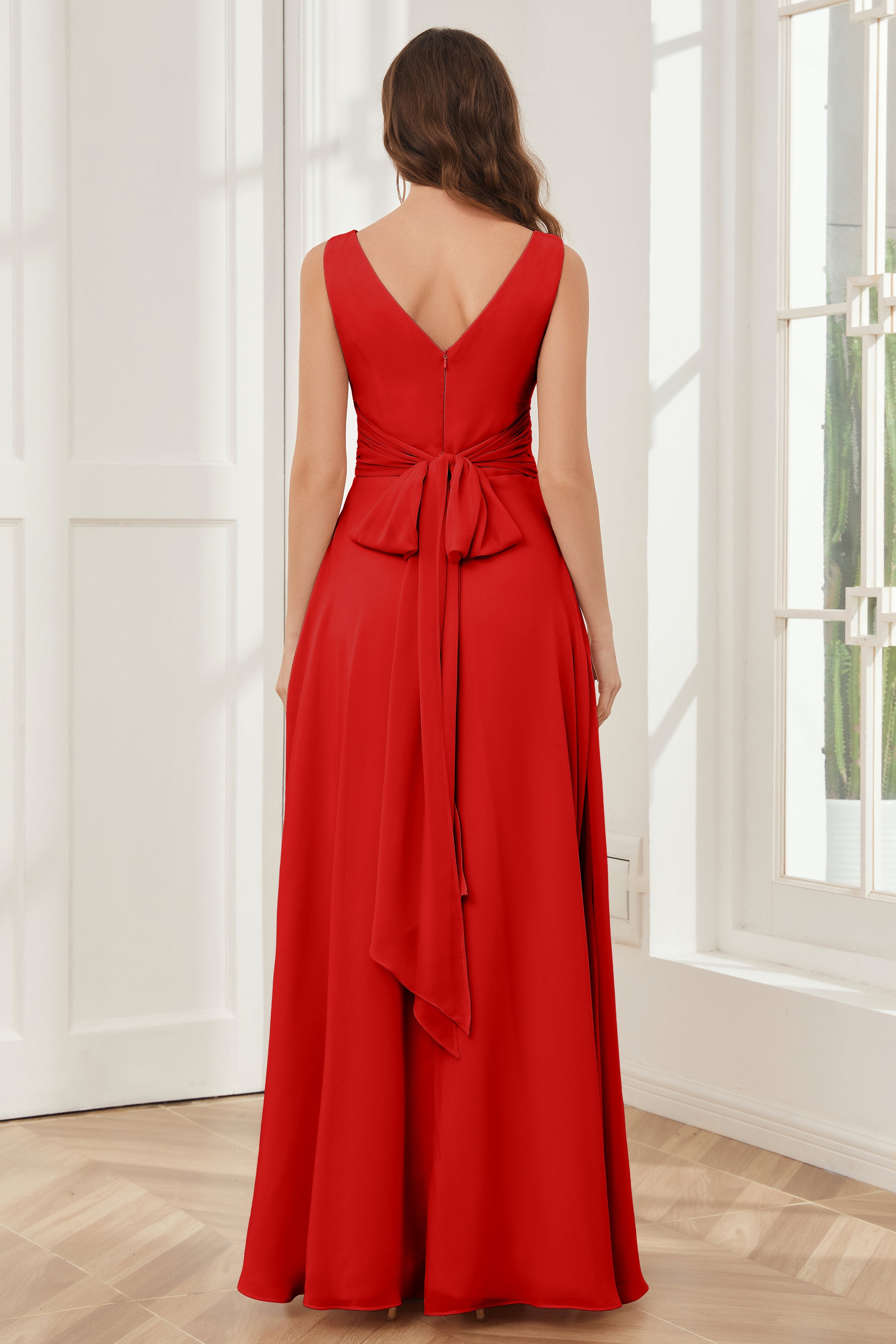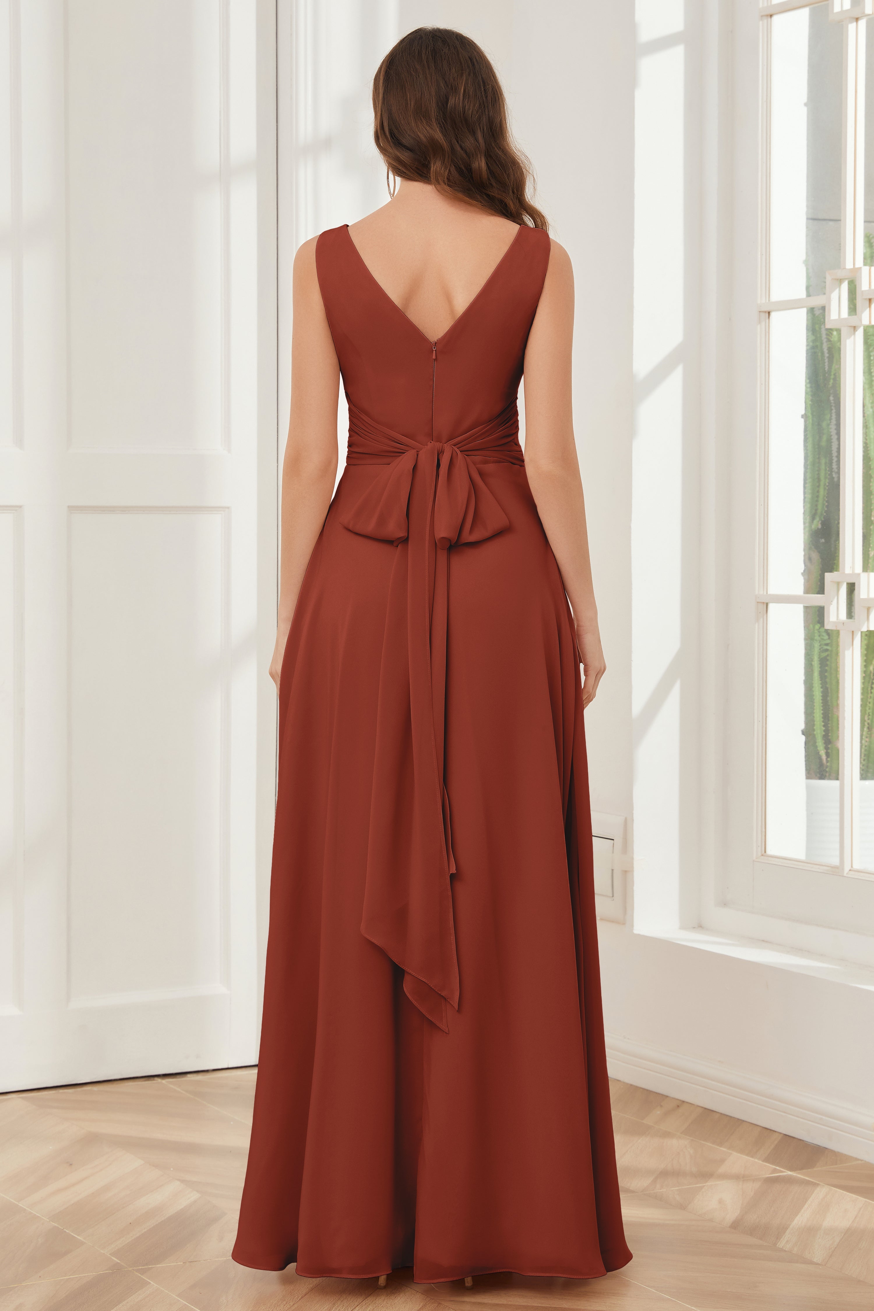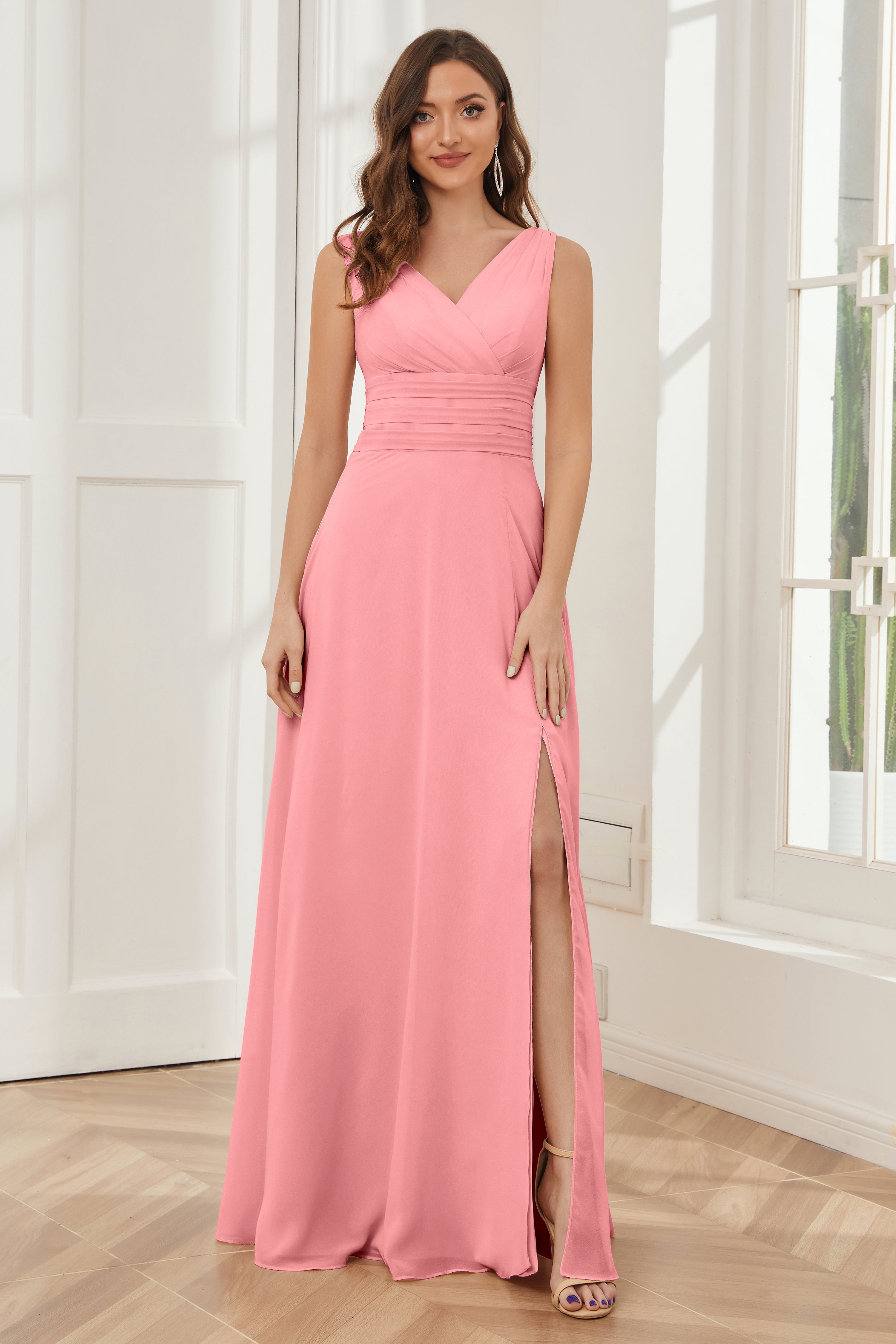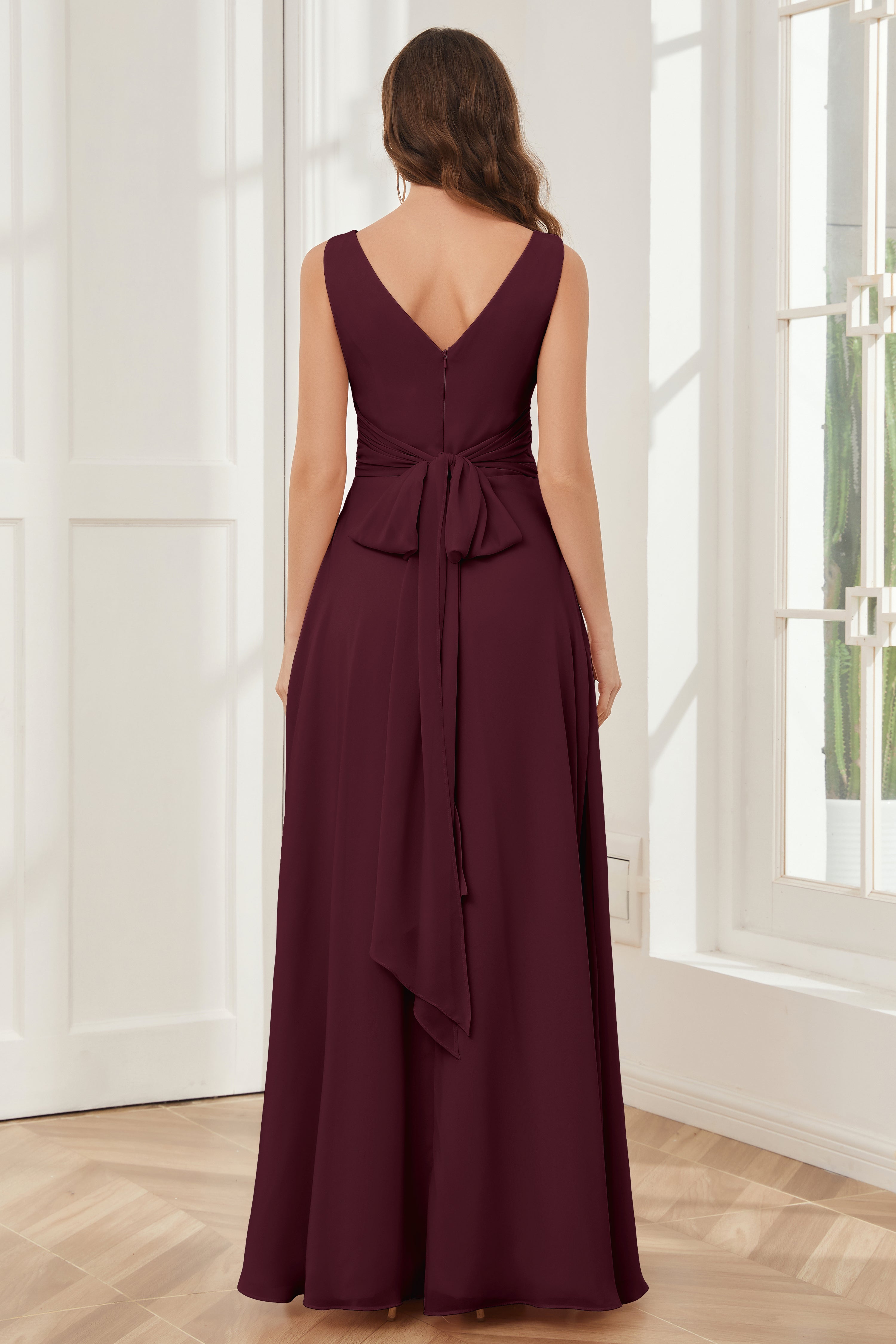 V-neck Sleeveless Chiffon Bridesmaid Dresses with Pockets