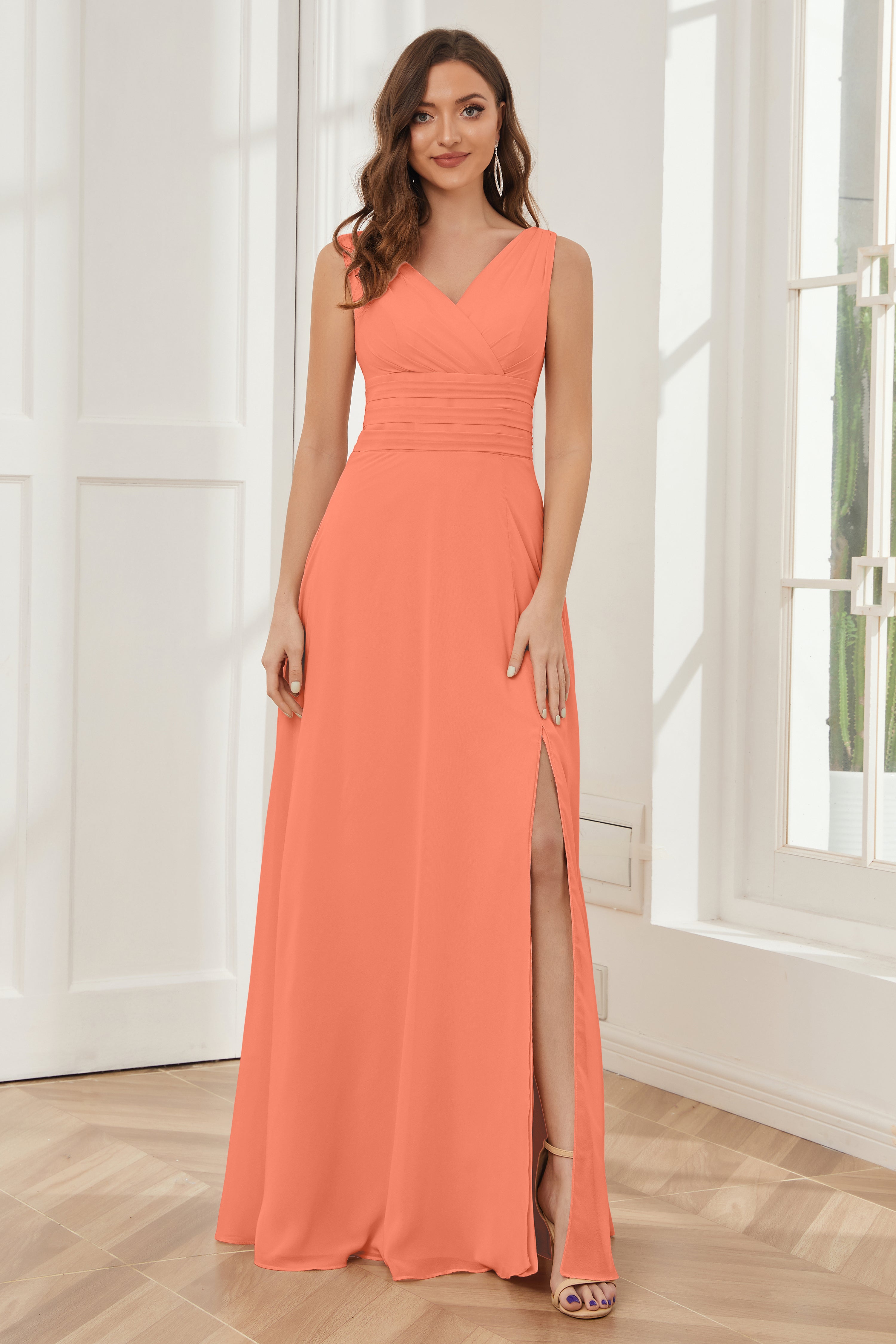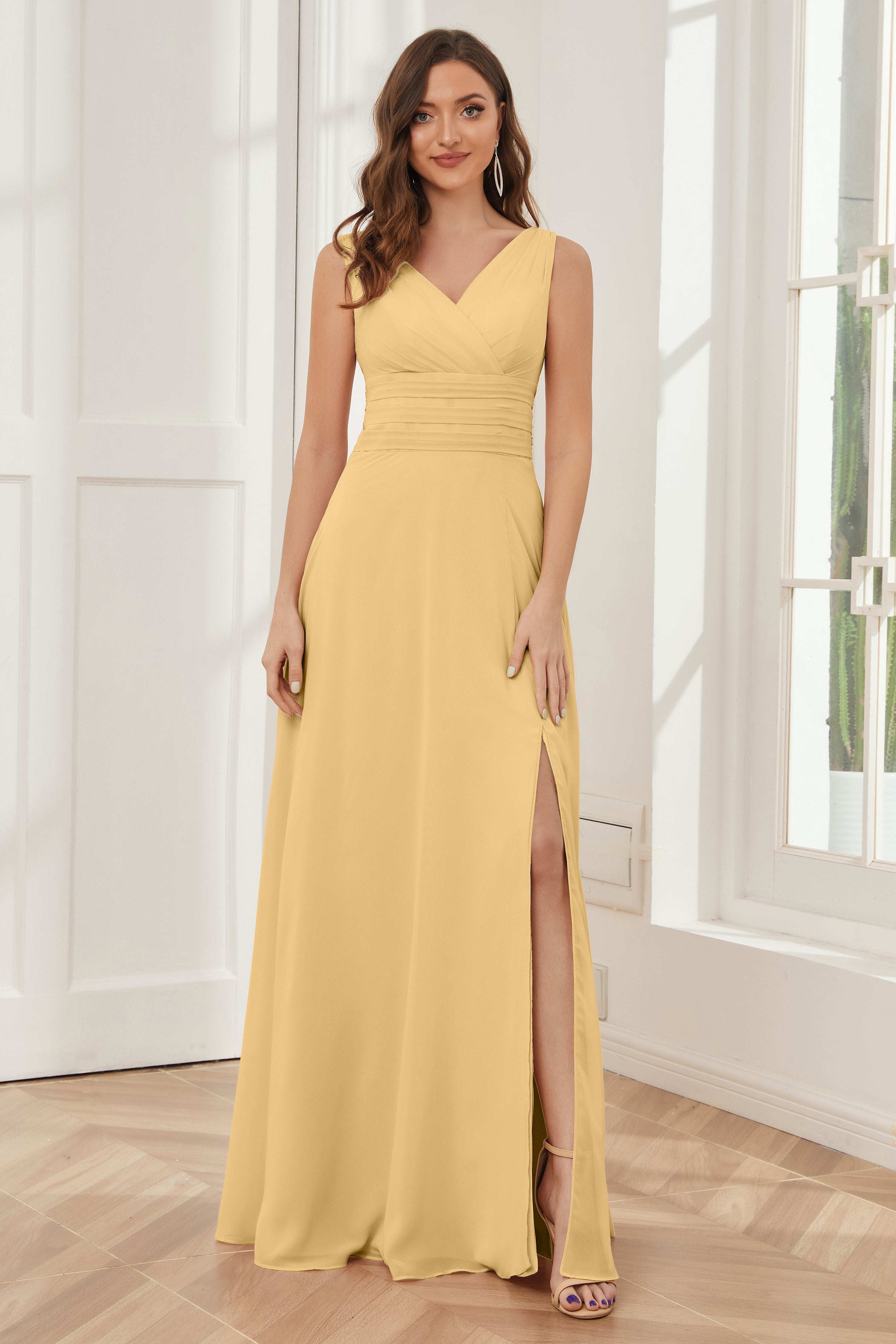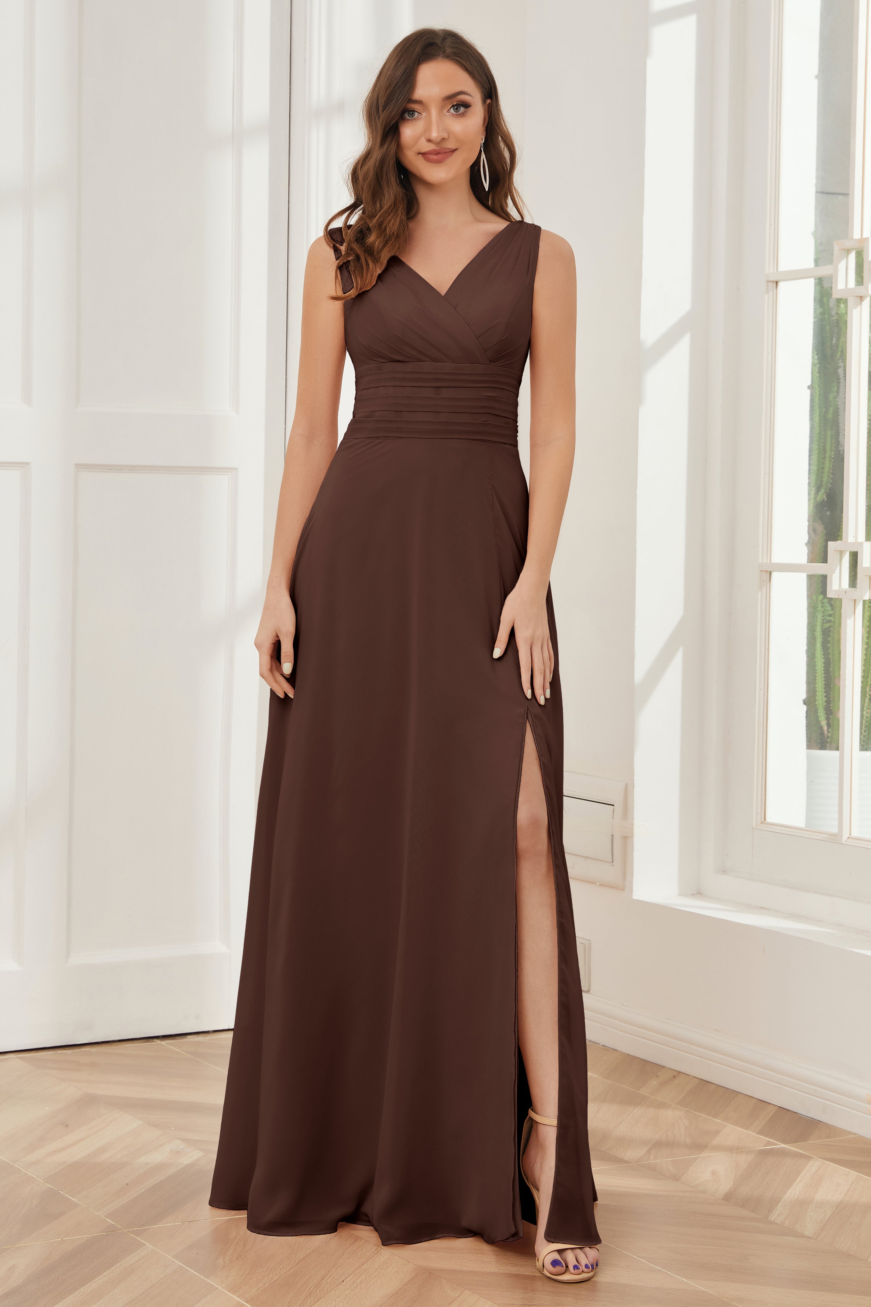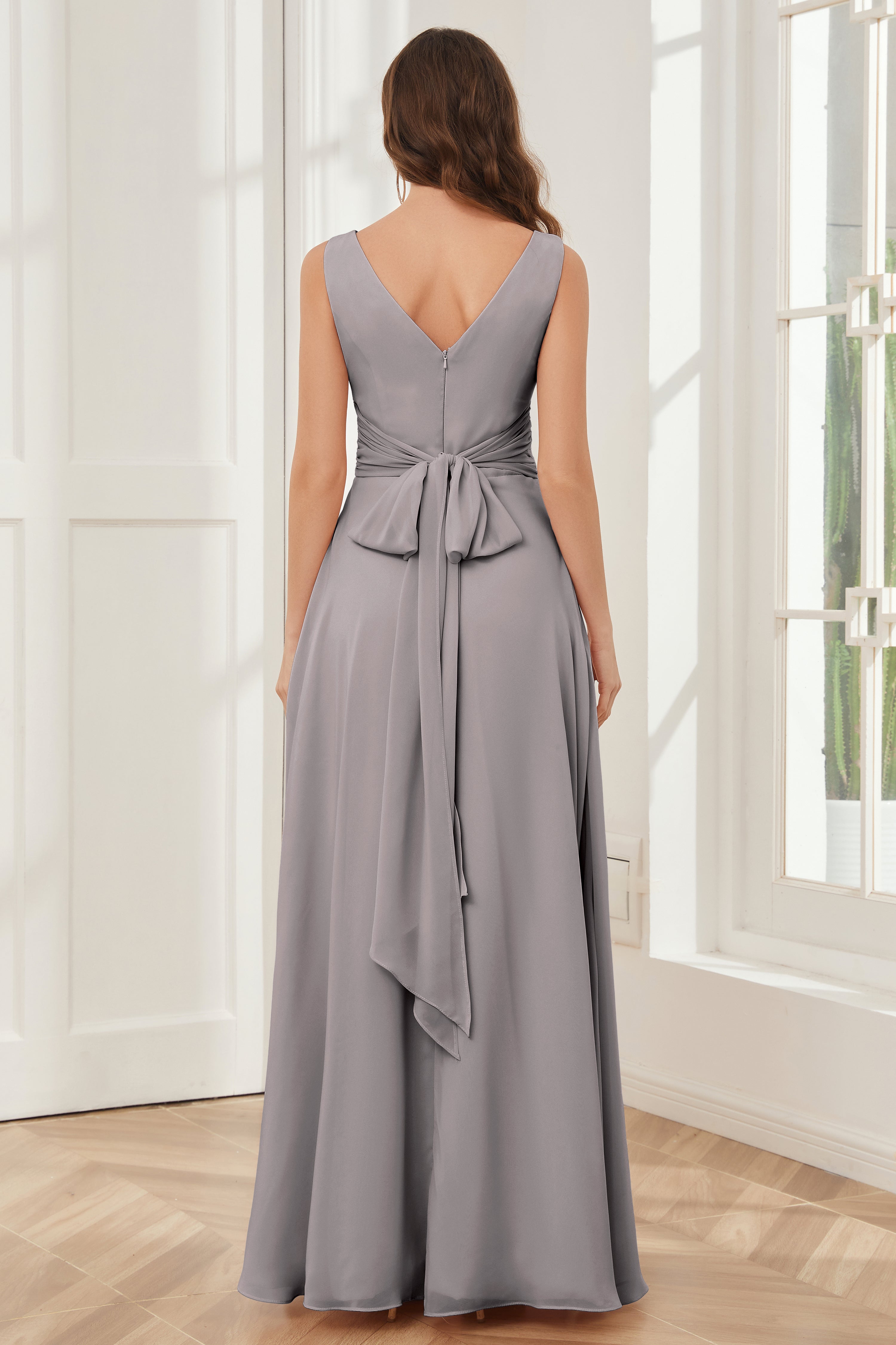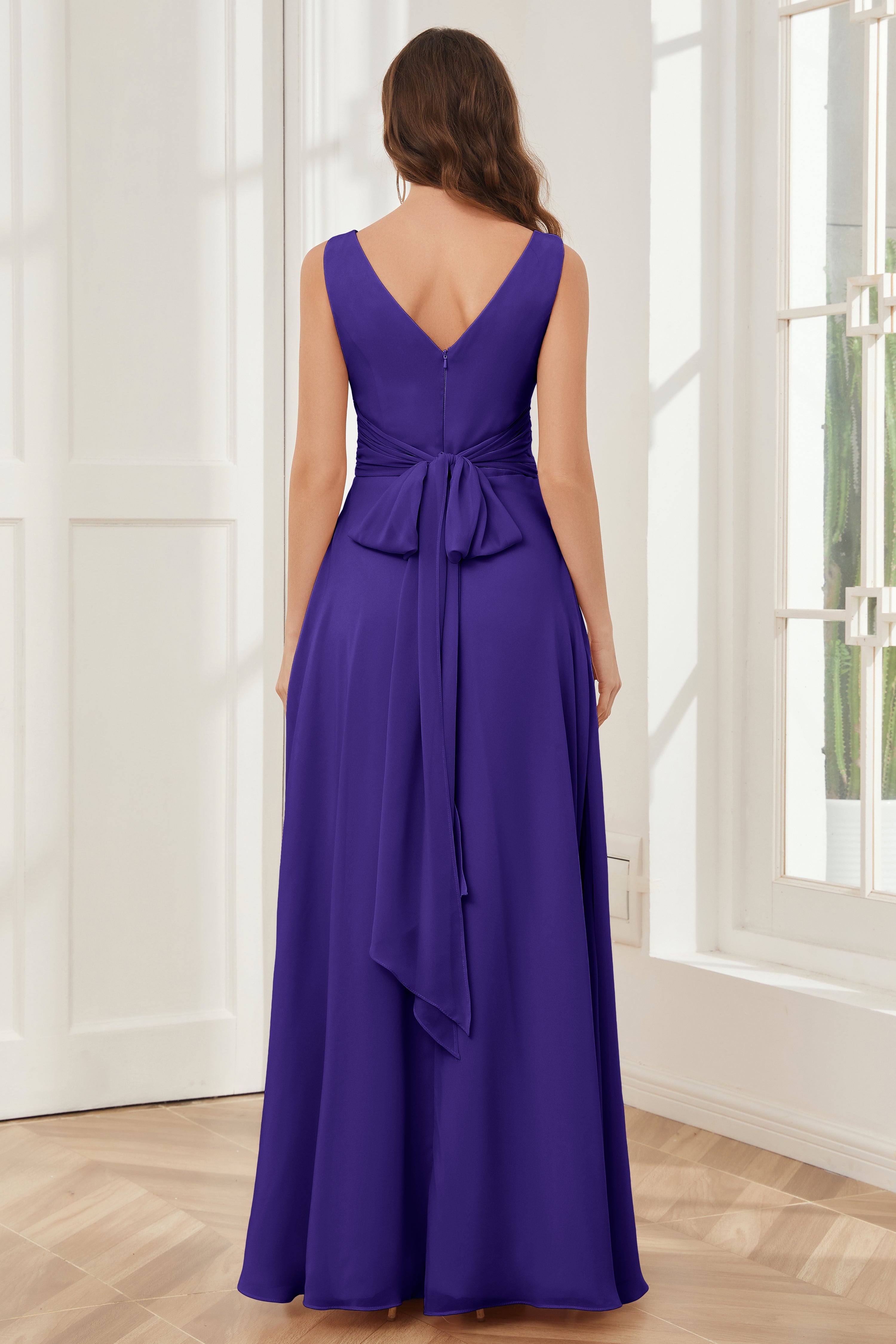 V-neck Sleeveless Chiffon Bridesmaid Dresses with Pockets