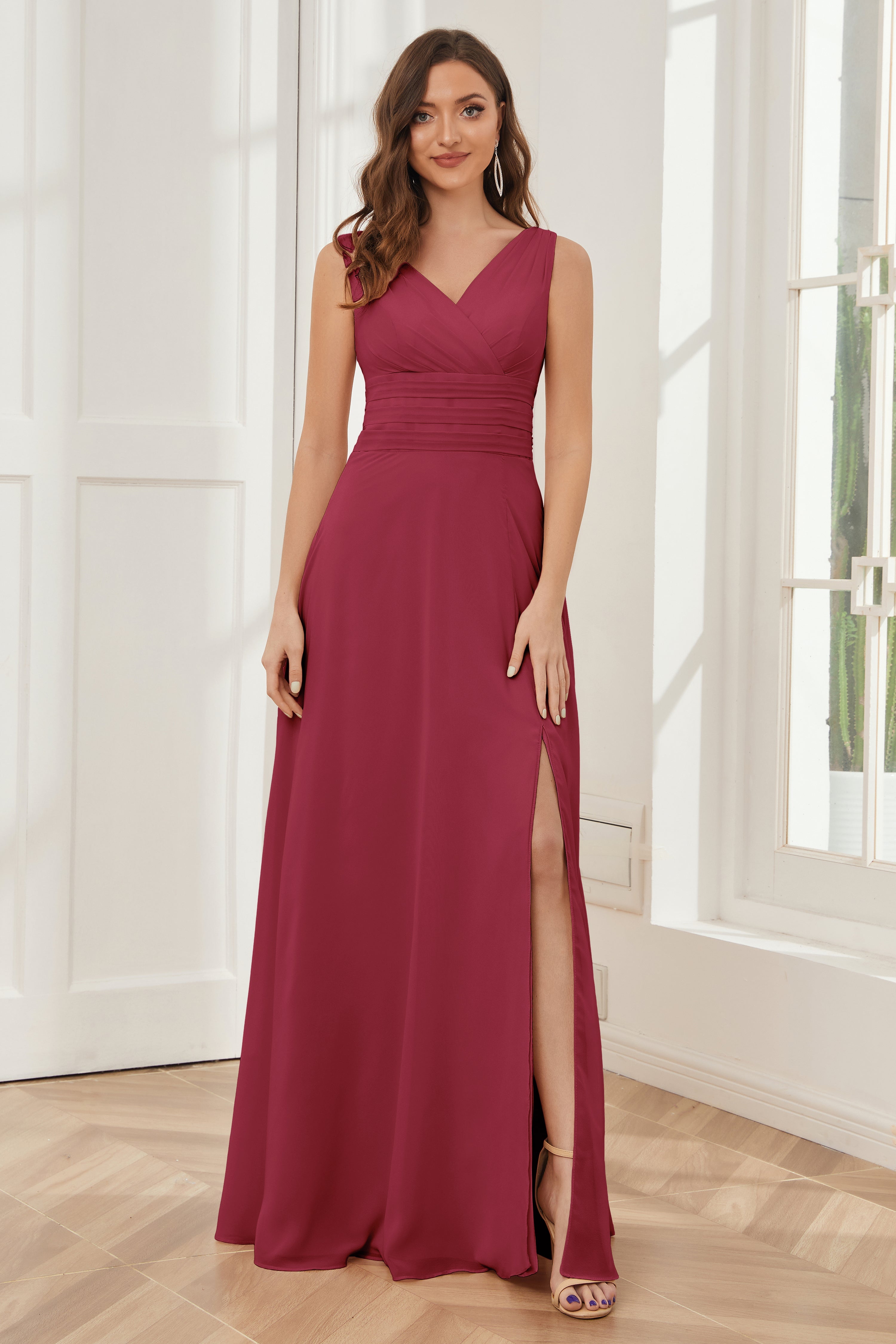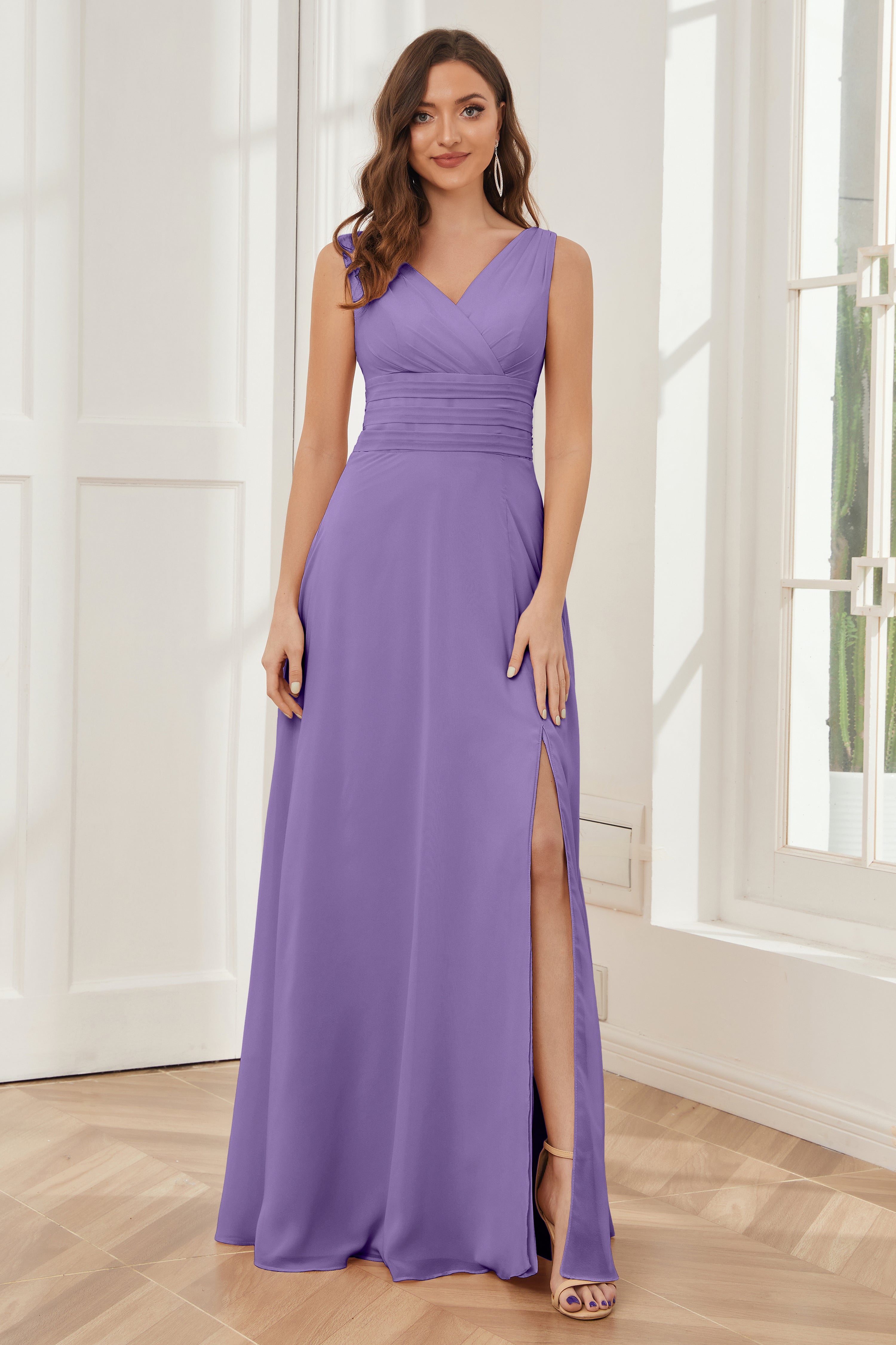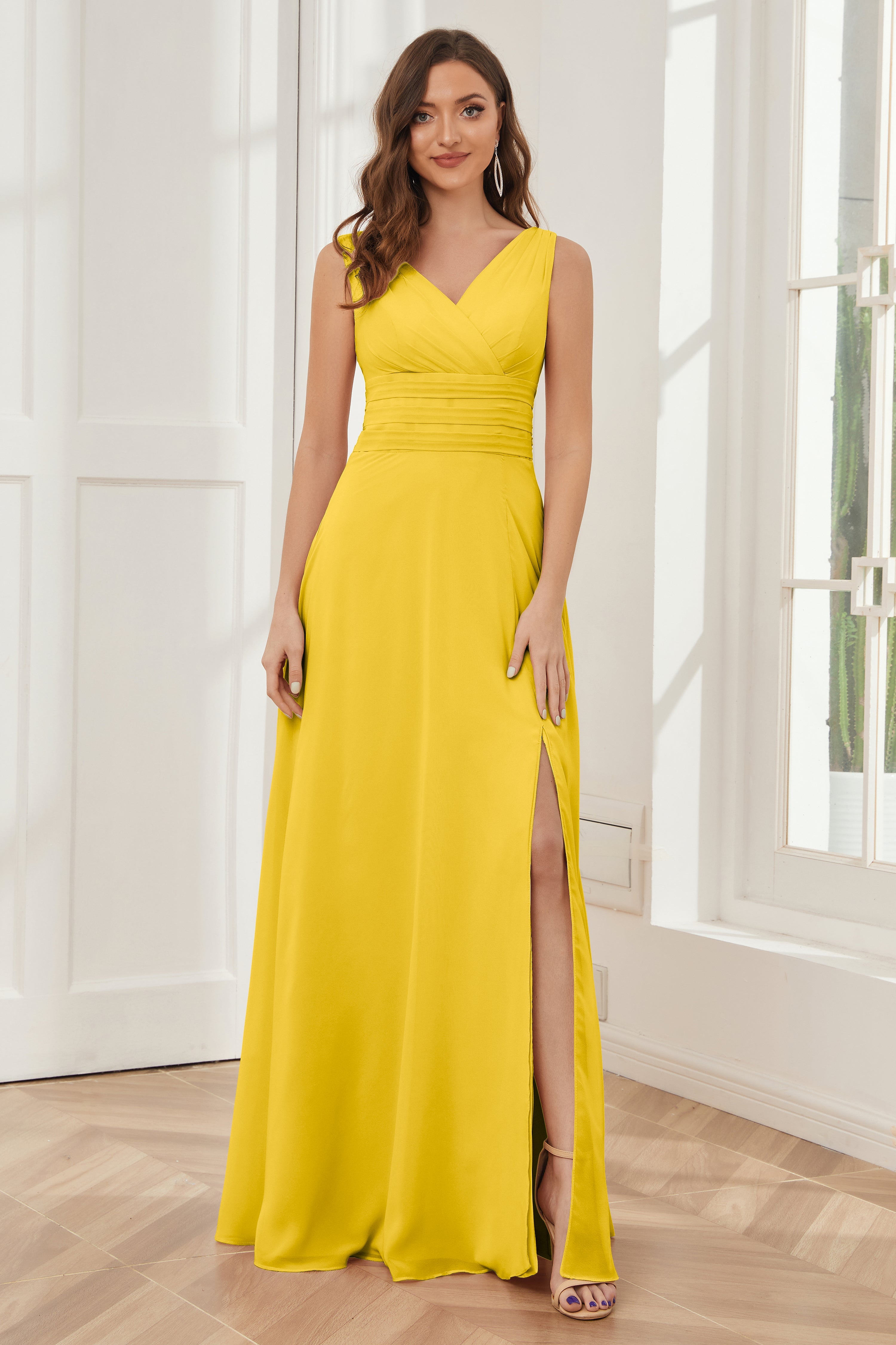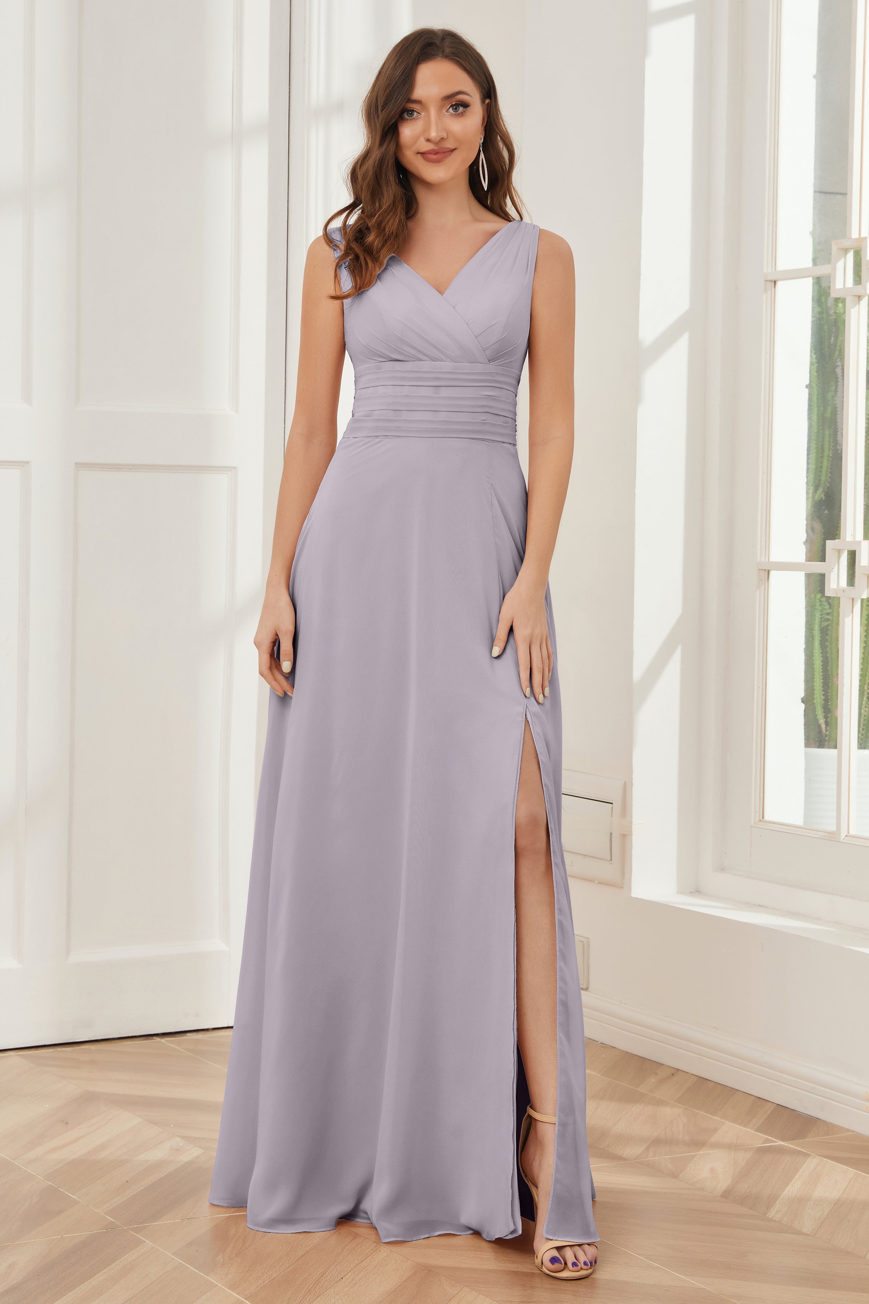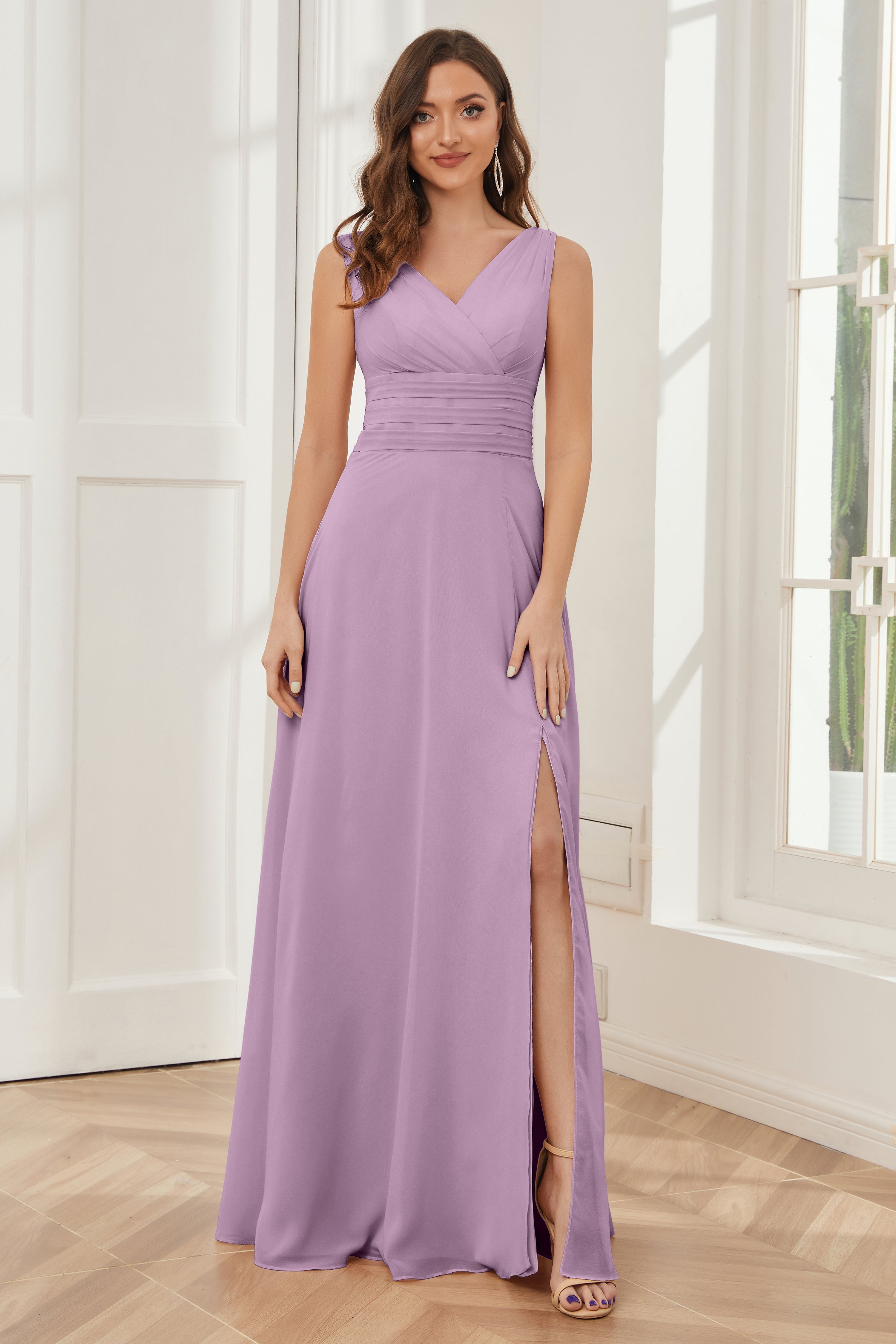 V-neck Sleeveless Chiffon Bridesmaid Dresses with Pockets